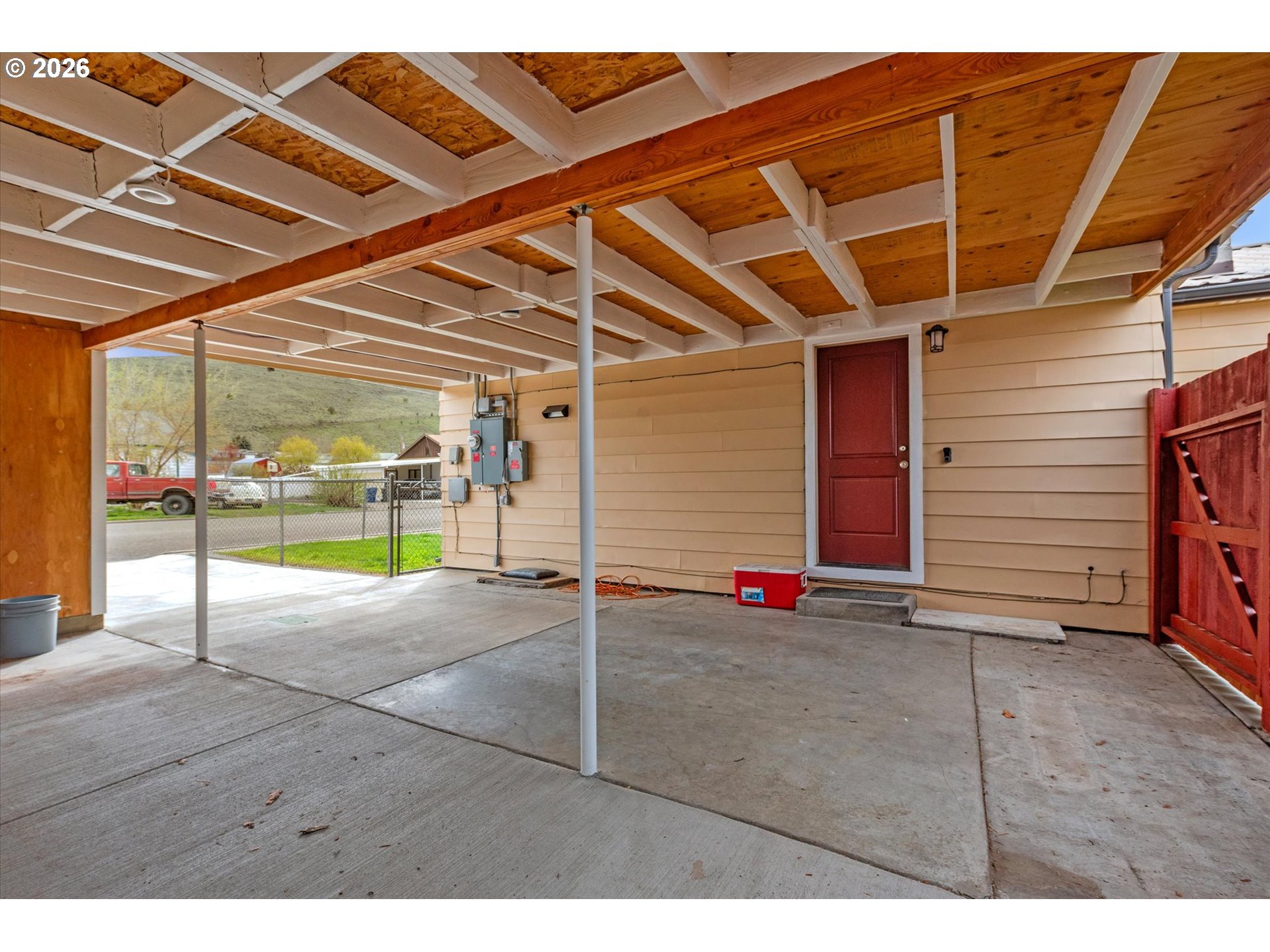 Fully remodeled and move-in ready, this thoughtfully updated home in Baker City offers space, function, and versatility on a rare in-town lot nearing half an acre. Every detail has been carefully considered, creating a comfortable, turnkey property with quality upgrades throughout.The home features a bright, efficient layout with mesquite click-lock flooring through the main living areas and primary bedroom, with carpet in the additional bedrooms. The primary suite includes a lighted closet. A renovated fireplace anchors the living room, while a Blaze King Princess wood stove (updated to code) and new gas furnace provide efficient heating. Interior upgrades include all new textured sheetrock, recessed lighting throughout, and a ceiling fan in the den.The fully updated kitchen includes new cabinetry, backsplash, a one-piece granite countertop set on a 45-degree layout, and a pantry off the carport entry. A new sunroom off the den adds flexible living space with access to both the carport and shop areas.Improvements continue outside with a new 6' x 12.5' deck, walkway to the street, newly painted fenced yard, and a renovated one-car carport with new driveway.The property shines with exceptional shop space: a 1,085 sq ft three-bay machine shop with a 6-inch reinforced concrete floor, plus an 864 sq ft one-bay woodshop with a Fisher stove and new stovepipe—both with overhead doors.Additional upgrades include new solar power, updated electrical panels, and modernized systems throughout.A rare opportunity to own a fully improved property with shop space, land, and modern updates—all within Baker City.