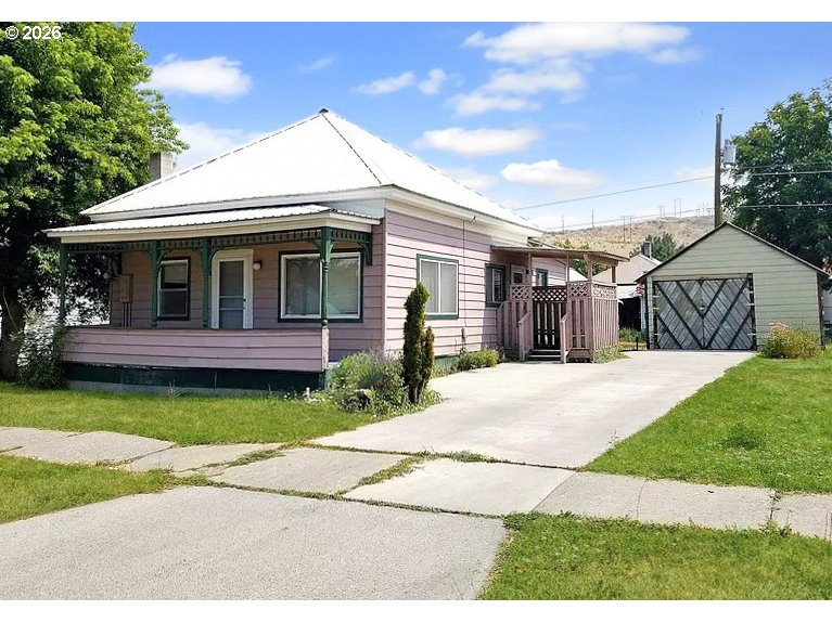 Full of character and ready for its next chapter, this 4 BR, 2 BA Baker City classic has modern upgrades plus original details you just can’t replicate. From the beautiful entry and original French doors to the den, to the staircase and many original windows, it’s brimming with historic charm and lots of natural light. The main level offers a large living room, a formal dining room perfect for gatherings, and an updated kitchen that blends modern convenience with the home’s vintage feel. Stainless steel appliances, generous counter space, and plenty of storage make it a functional space for everyday life. The main-level primary bedroom has easy access to a continental bath, giving you a touch of convenience. Upstairs, you’ll find a comfortable family room, three additional bedrooms (including one with built-in counters and cabinetry), and another full bathroom. Bonus--the 120 sq. ft. cellar offers extra storage space for the practical side of life.Outside, the fully fenced corner lot gives you room to spread out. The charming covered front porch is perfect for morning coffee, while the sun porch out back invites you to relax in the afternoon. Raised garden beds are ready for your favorite flowers or veggies, and the detached garage plus off-street parking add to the appeal. This is a home with great bones, plenty of space, and the kind of charm that never goes out of style. The history, character, and potential are here—just waiting for someone to make it their own. All in a convenient location close to local amenities, shops, and dining in the heart of Baker City. Come check it out!