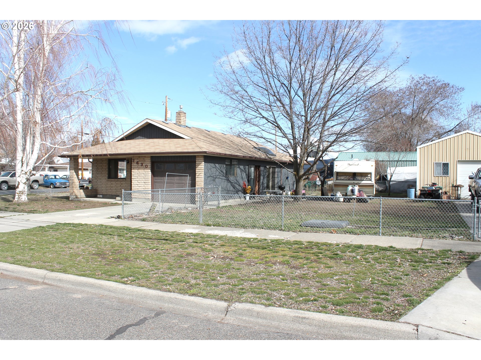 Charming and practical, this 2-bedroom, 1-bath home offers comfortable living with plenty of space for vehicles, hobbies, and storage. Inside, you’ll find a cozy layout with two bedrooms and a full bathroom, perfect for a small family, first-time buyer, or investment opportunity. The home also features an attached single-car garage for convenience and protection from the elements. One of the standout features of this property is the 20' x 30' m/l shop, providing ample room for projects, equipment, or additional storage. Whether you’re a hobbyist, mechanic, or just need extra space, this shop adds tremendous value. Situated on a fully fenced corner lot measuring approximately 103' x 93.5' m/l, the property offers privacy, security, and plenty of outdoor space for pets, gardening, or entertaining. This property combines practicality with space to work and play, all in a convenient Baker City location.