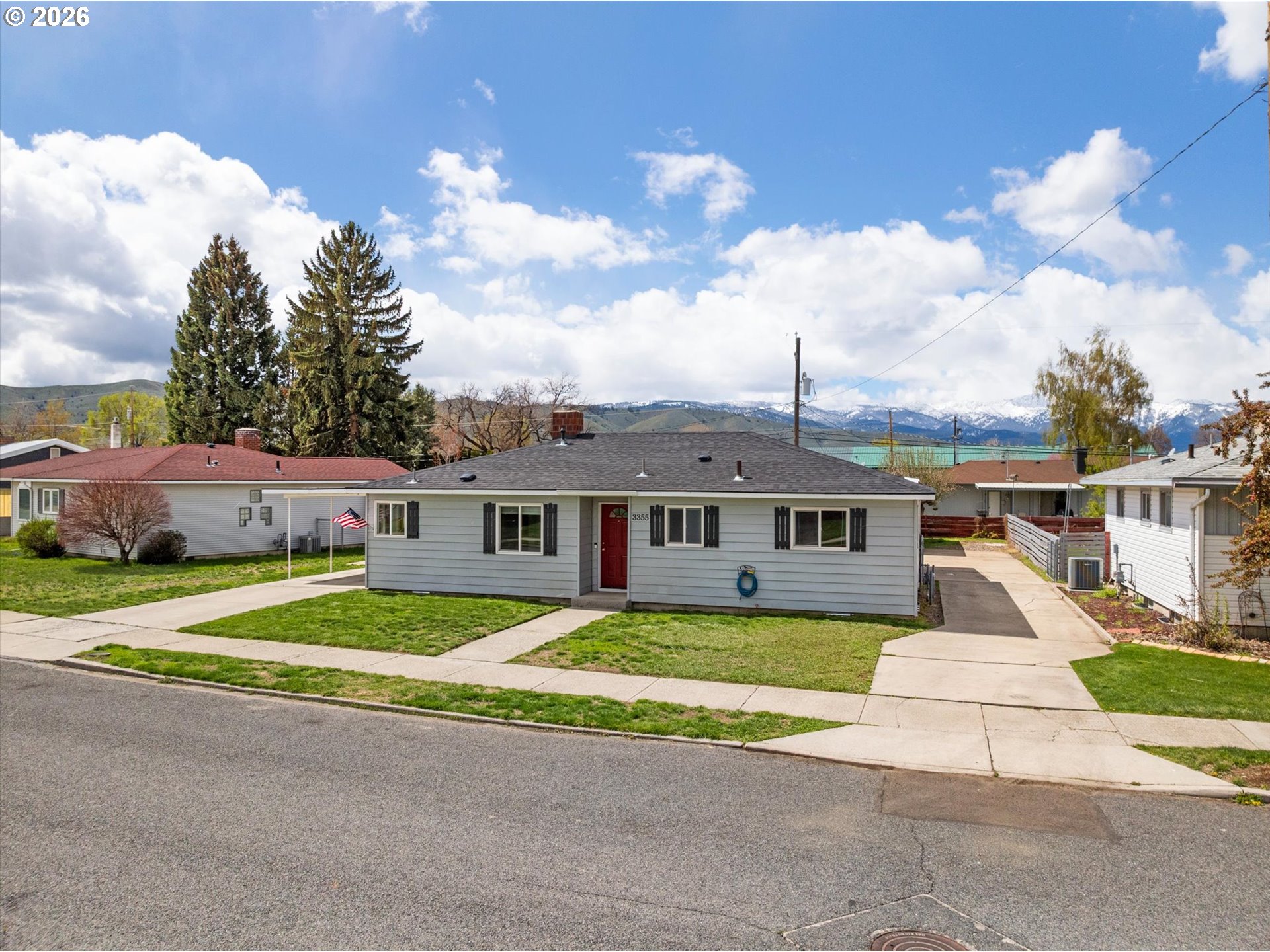 Mid-century modern 2 bed, 2 bath home with a functional open kitchen/dining layout. Features original hardwood floors, fresh interior paint, and a cozy gas fireplace. One bath offers a walk-in shower, the other a tub. Updates include furnace, A/C, and on-demand hot water. Exterior highlights include a covered deck for seasonal use, RV parking, greenhouse, attached carport, and detached oversized garage.