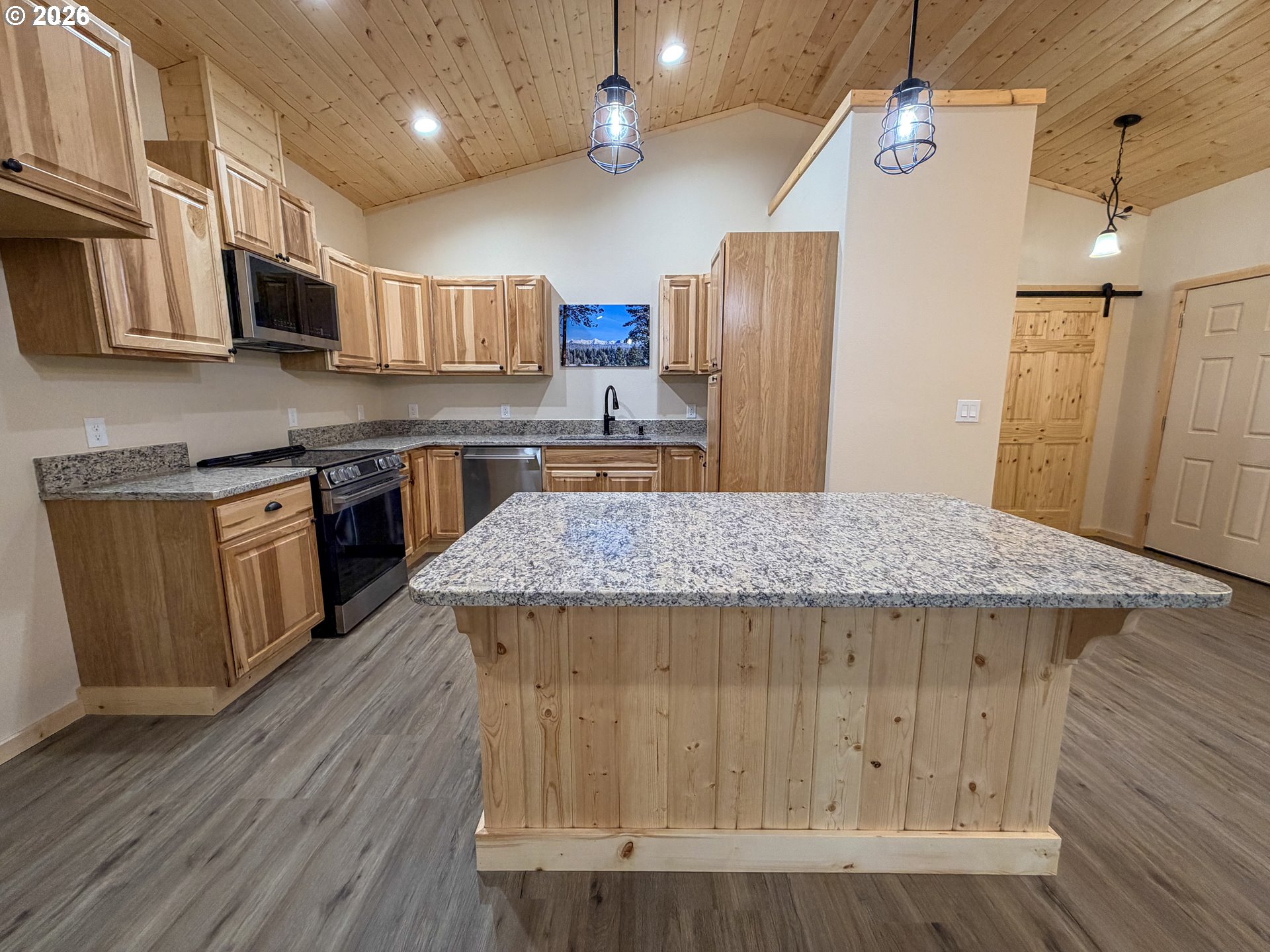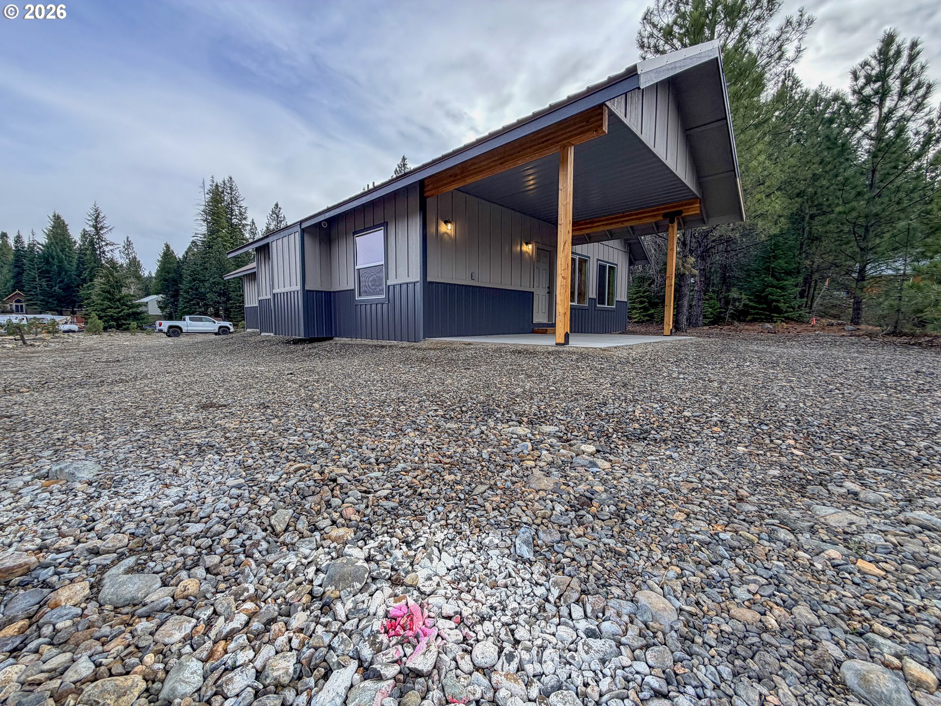 Move-In Ready Custom Cabin in Historic SumpterExperience the charm of small-town living with modern comfort in this newly built custom cabin-style home. Located on a quiet street in historic Sumpter, this thoughtfully designed property is ideal as a full-time residence, vacation getaway, or investment retreat.This 1,130 sq ft home offers an open-concept layout filled with natural light, featuring pine ceilings, natural wood doors, and quality craftsmanship throughout. The spacious kitchen is equipped with hickory cabinetry, granite countertops and backsplash, a large center island, and pantry—perfect for entertaining or everyday living.The home includes 2 bedrooms and 1 bathroom with a walk-in shower, plus a dedicated laundry room with additional storage. Waterproof wood-looking flooring runs throughout for durability and easy maintenance.Step outside to enjoy a covered entry and concrete patio, along with an oversized double-car garage and space for RV or recreational parking.Situated on an approximate 6,000 sq ft city lot, this property offers low-maintenance living with close access to outdoor recreation, trails, and all that history Sumpter has to offer.Turn-key, low-maintenance, and ready for immediate enjoyment.