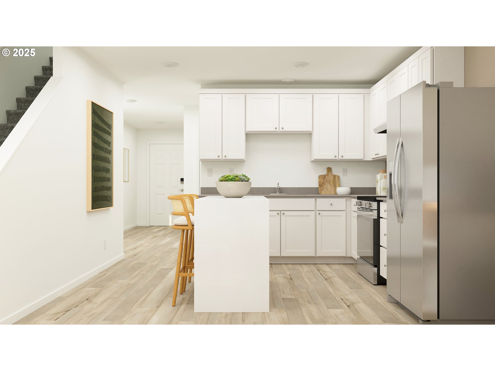 Dishwasher, Disposal, FreeStandingRange, FreeStandingRefrigerator, Pantry, PlumbedForIceMaker, Quartz, Stai