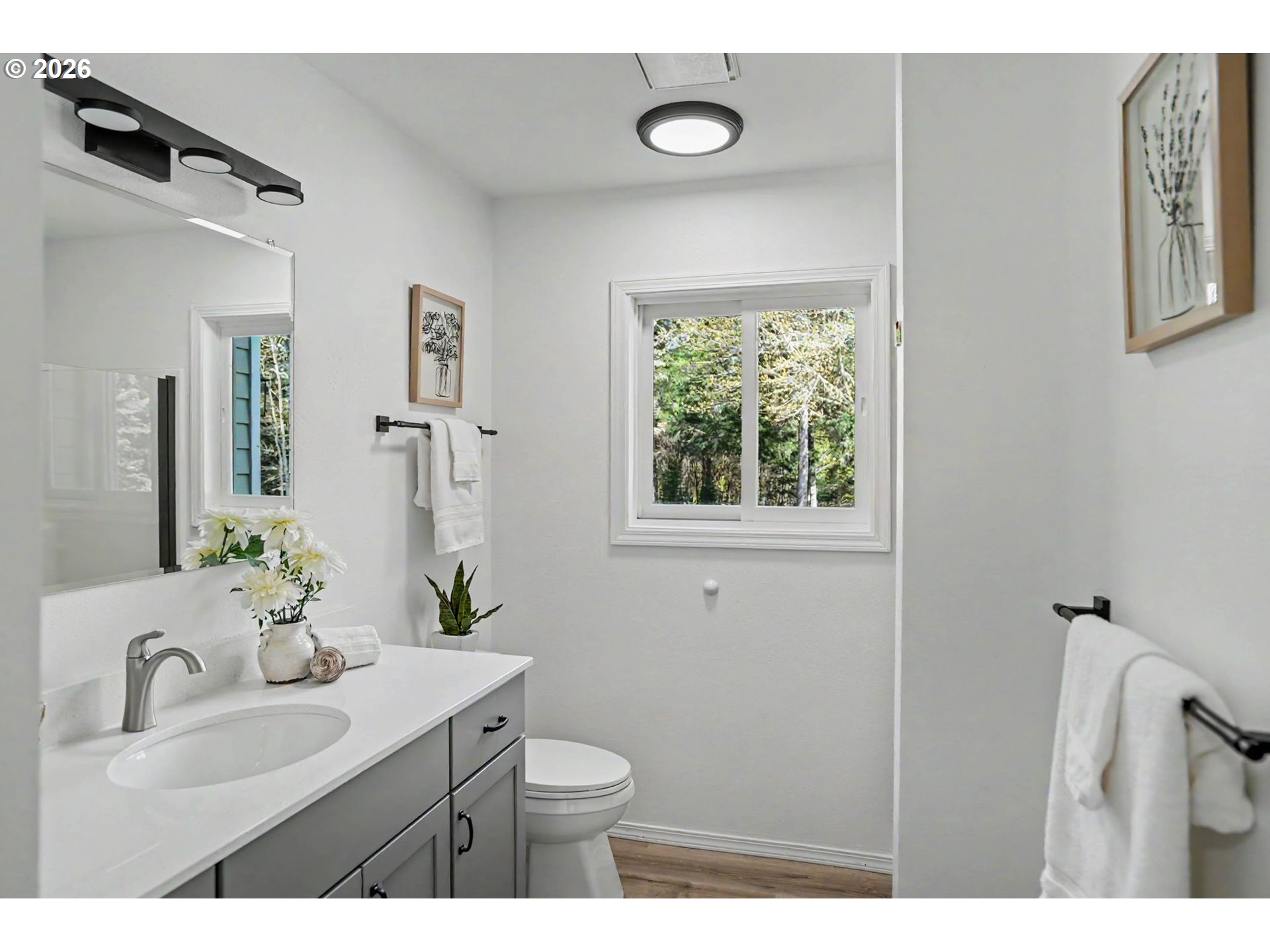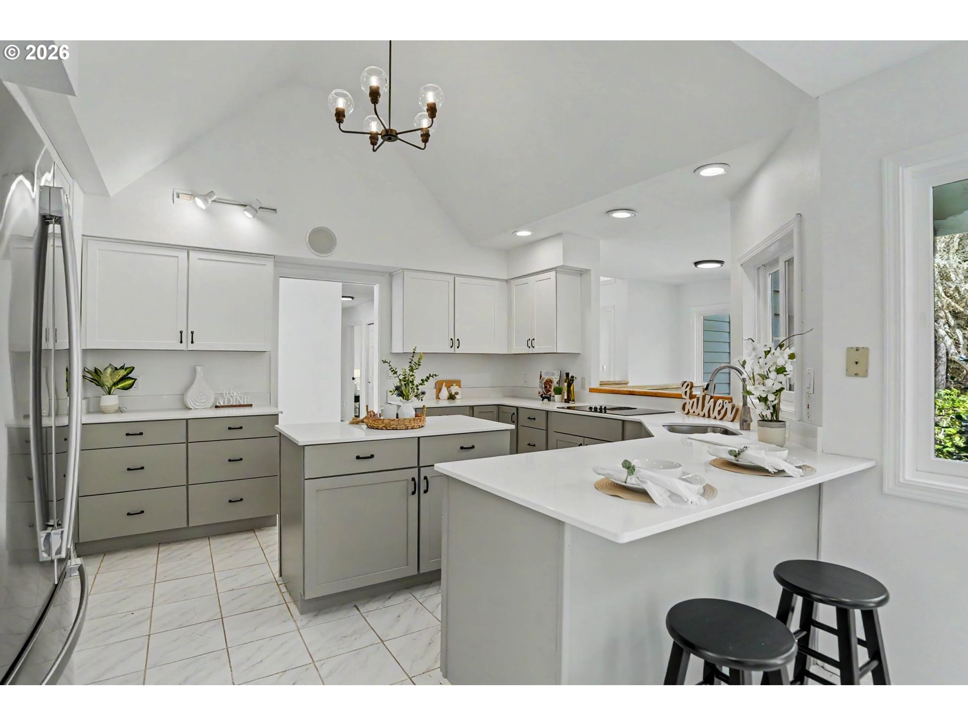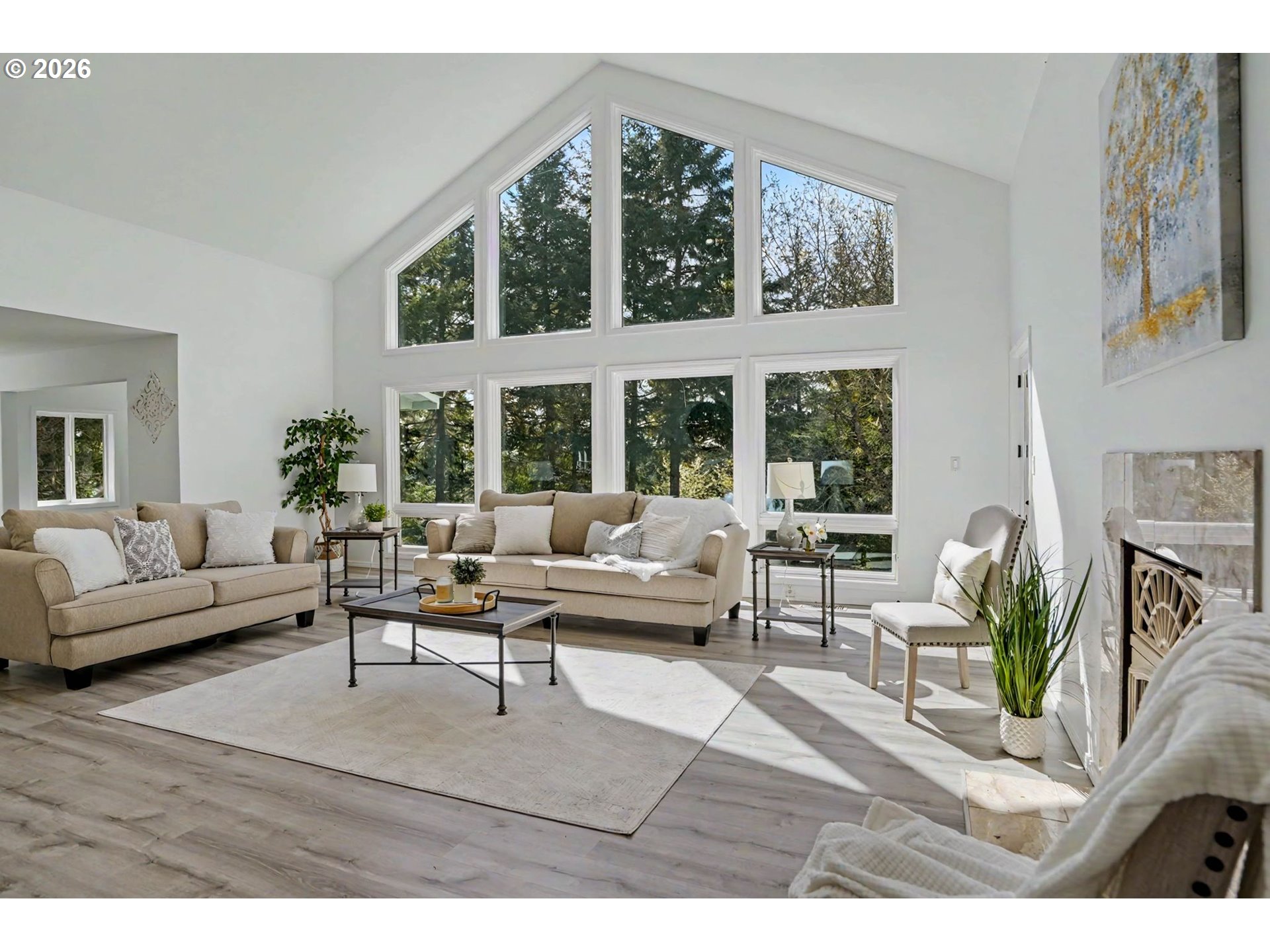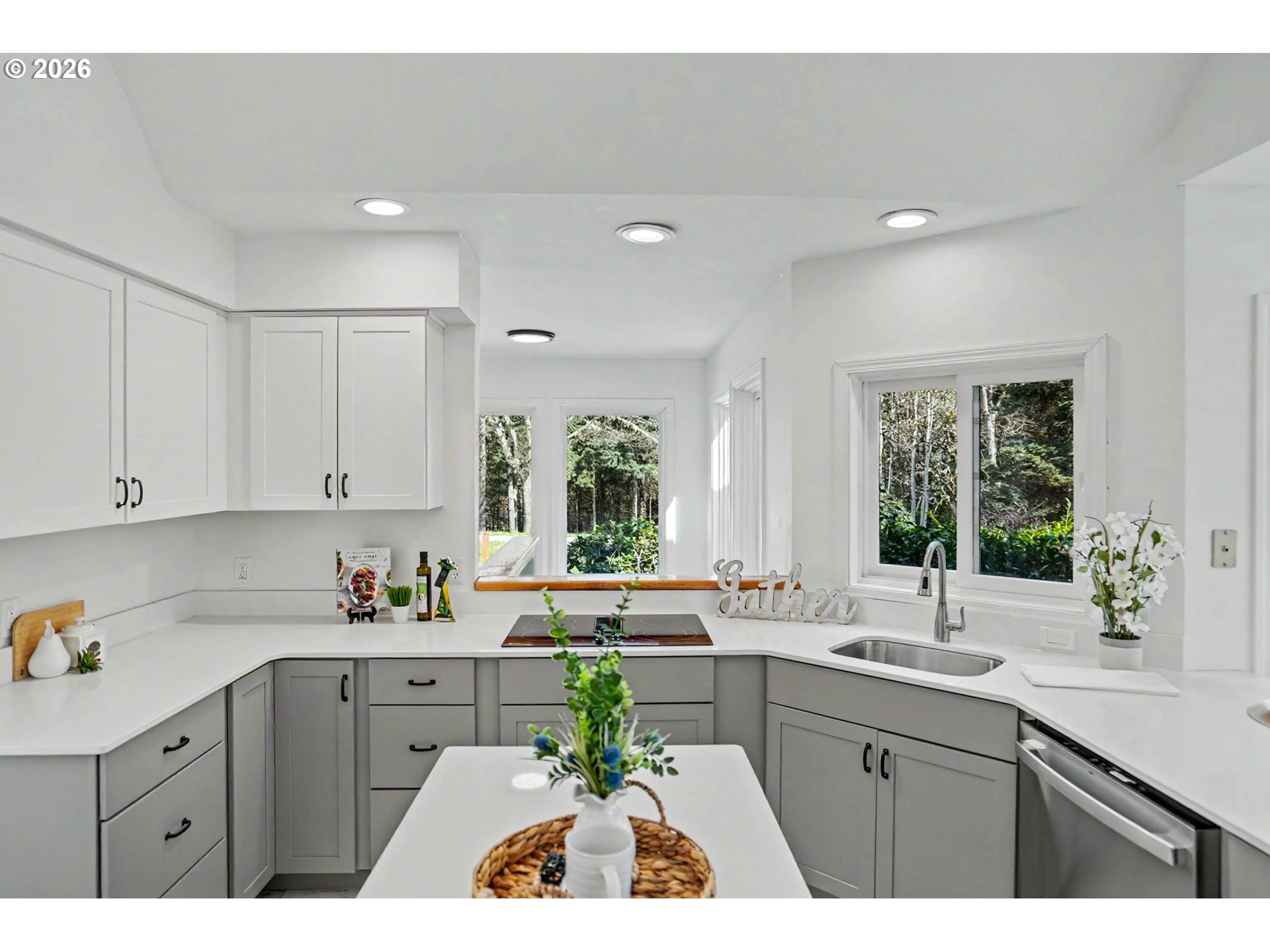 Lovingly renovated, this home is truly move-in ready. Both kitchens, all 4 bathrooms, flooring, lighting, paint, and furnace updated in 2025. The main floors feature LR with soaring cathedral ceilings and dramatic windows, kitchen, DR, office, 3 beds, & 3 baths. Downstairs, a private 2-bed suite with LR and full kitchen offers multigenerational flexibility. Oversized 3-car garage, pre-inspected well, raised beds, and greenhouses. Contiguous 146 acre FC parcel also available.