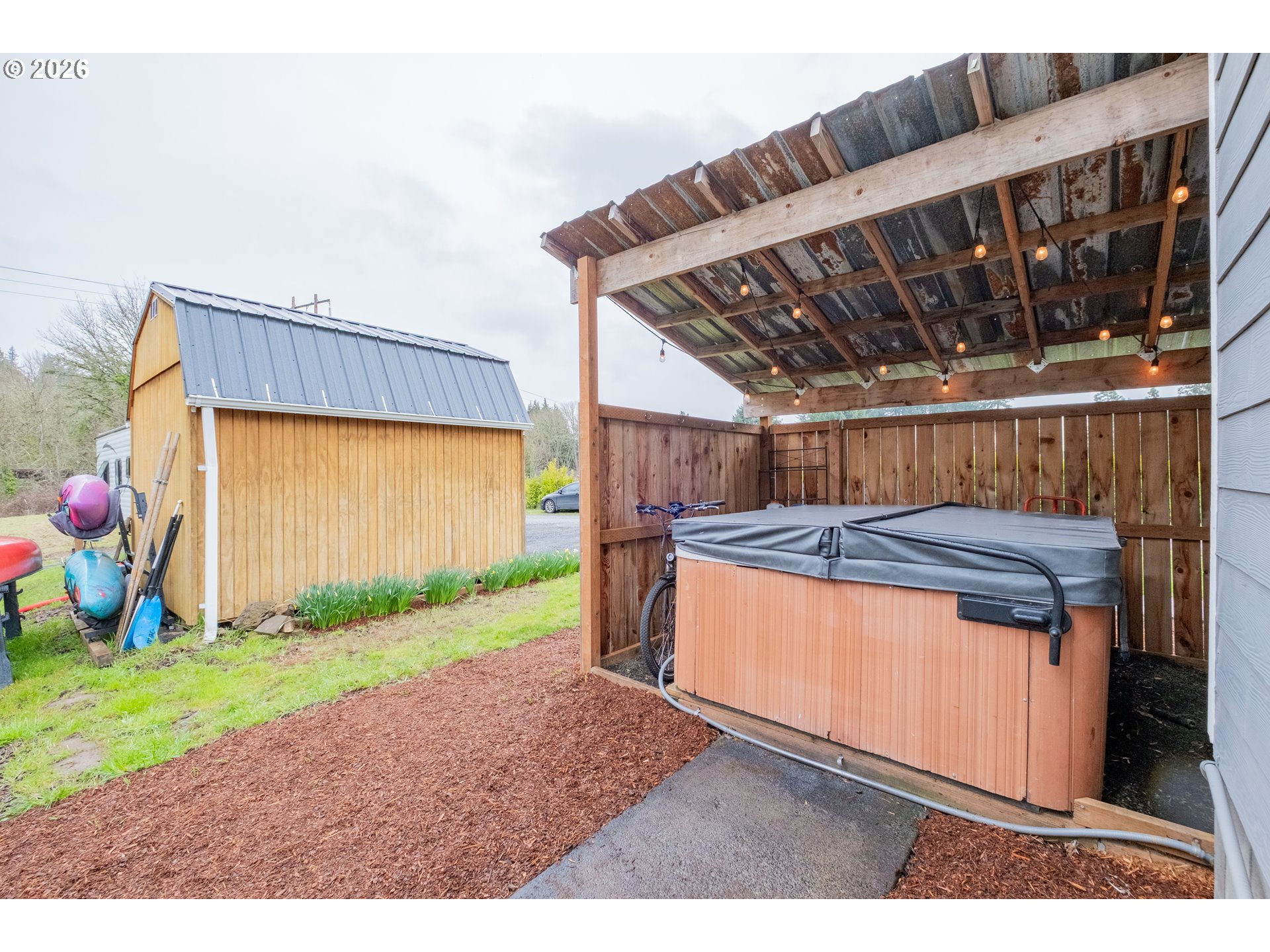 CoveredDeck, Fenced, FirePit, FreeStandingHotTub, Garden, Outbuilding, PoultryCoop, PublicRoad, RaisedBeds, R