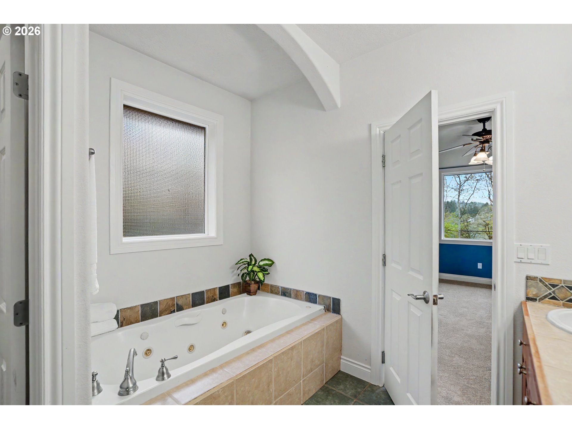 Classic Tudor home in great Timberhill location with 2 primary suites (one on each floor). Additional 2 large bedrooms plus bonus area upstairs. New carpet just installed plus refinished maple hardwood and new insulation. Beautiful views of the surrounding area from the large back deck. Low maintenance backyard with turf and a 3-car garage. This is a wonderful area near school, athletic club, and shopping. No HOA.