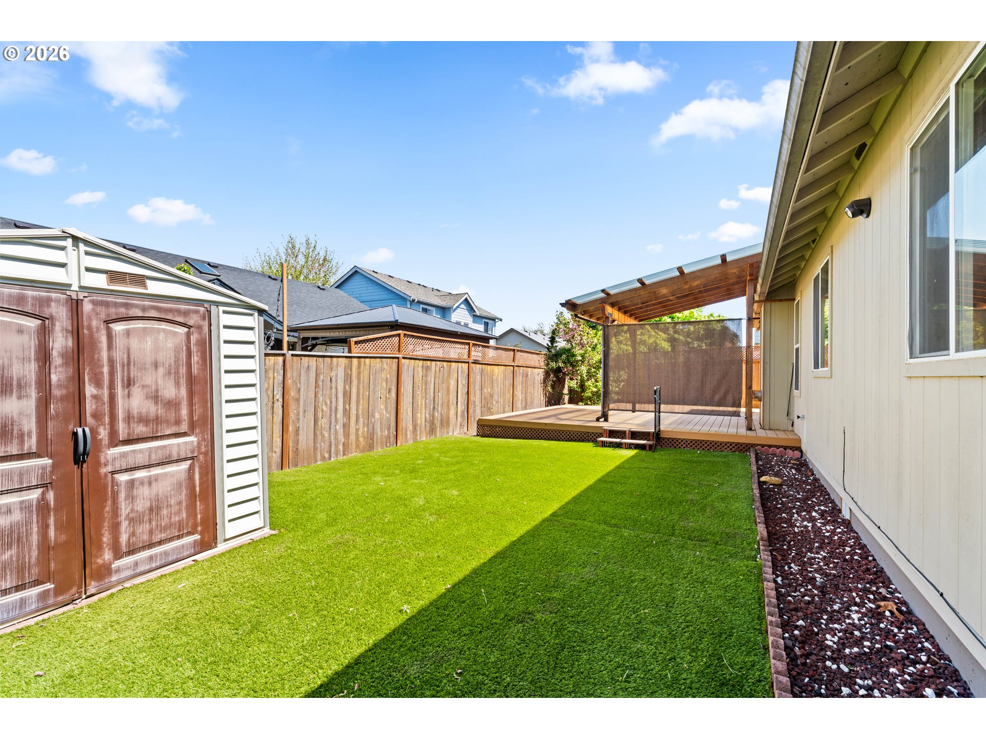 Corner lot charm meets Corvallis convenience! Nestled in the sought-after Sunset Meadows neighborhood just minutes from local parks and OSU, this 3-bed, 2-bath home checks every box. The spacious primary suite offers a walk-in closet and private ensuite, while the living room's gas fireplace sets the perfect cozy tone. Stay comfortable year-round with forced air heating and cooling. Outside, enjoy a fully fenced backyard with turf lawn for effortless maintenance, plus a covered deck made for entertaining. Don't miss this gem!
