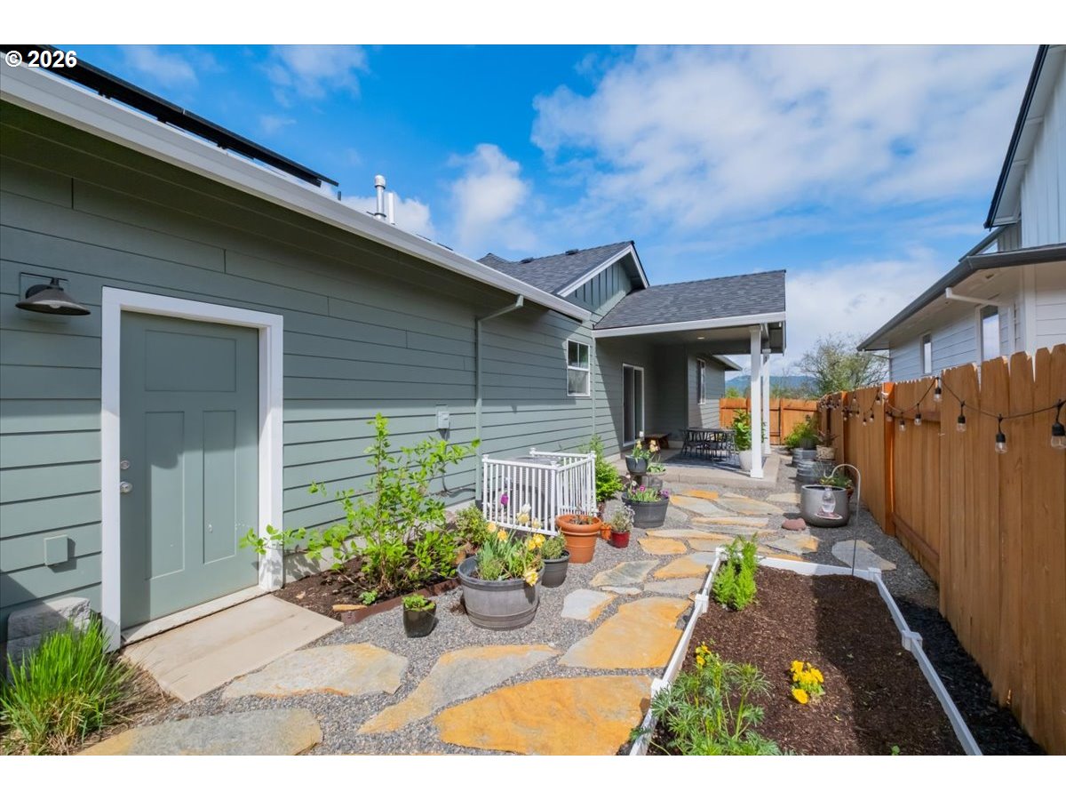 This beautiful 2022 built home is immaculately cared for and is in outstanding condition. The fenced outside area is designed to be easy to care for and a peaceful place to spend time and the large, covered patio extends its usefulness. Inside you'll find an open floorplan and gorgeous finishes sure to impress. The solar system is paid off and not only produces but stores power so you're never without. Enjoy a lower cost of living at $17/mth total for the system.