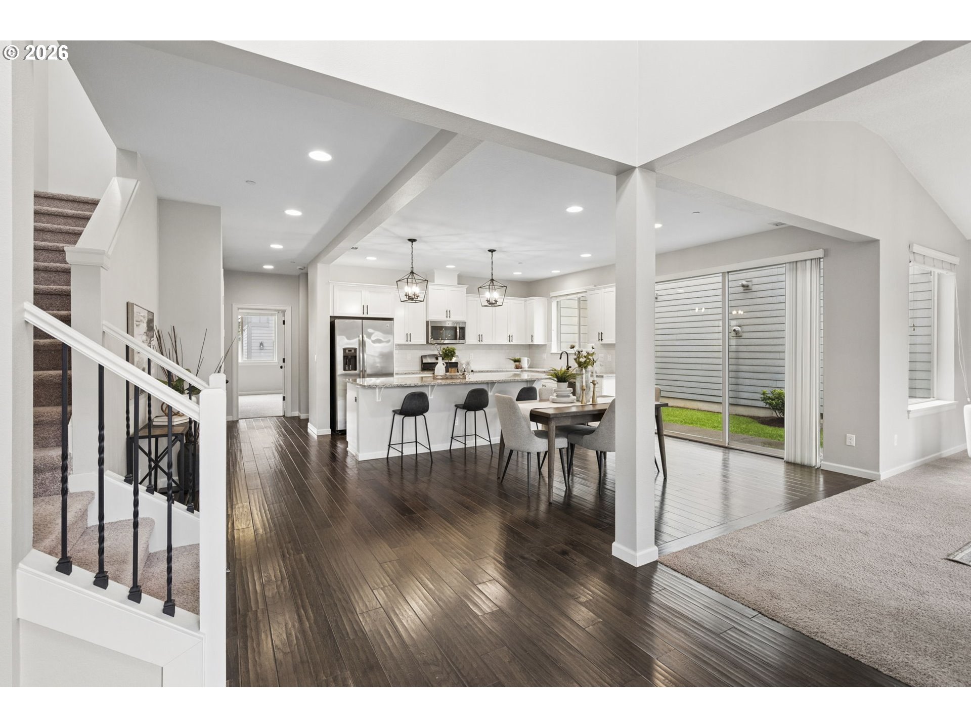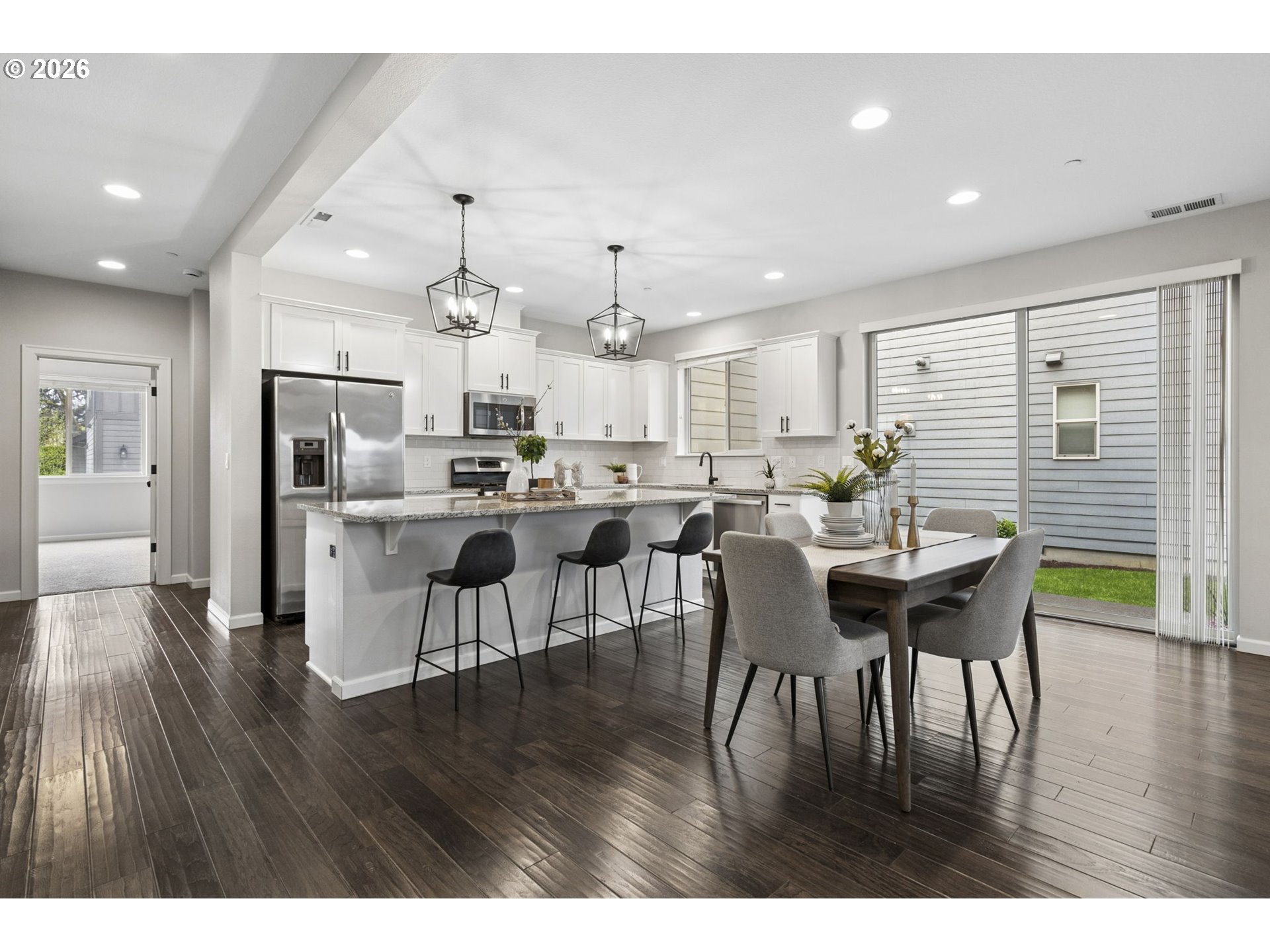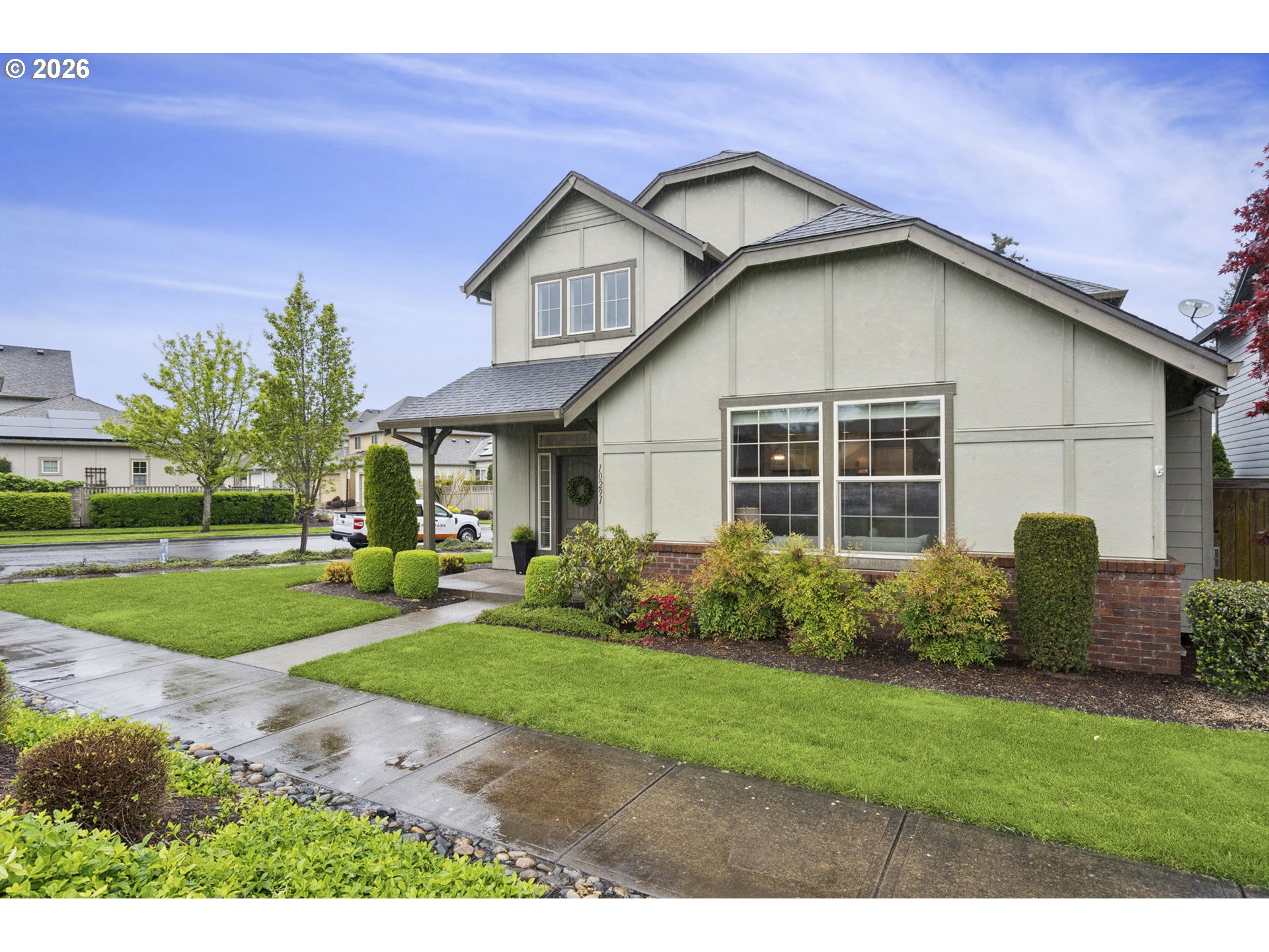Situated on a prime corner lot in highly sought-after Villebois, this beautifully refreshed home blends timeless style with everyday functionality. Offering 4 bedrooms and 3 full baths—including a main-level bedroom and full bath—the layout is designed for flexibility and ease.The light-filled, open-concept kitchen shines with a large island, spacious walk-in pantry, Breakfast bar, and seamless connection to the spacious living room anchored by a cozy gas fireplace—ideal for both entertaining and daily living. Upstairs, the primary suite offers a generous en-suite bathroom and large walk-in closet, complemented by two additional bedrooms on the upper level.Step outside to a private, fenced courtyard featuring a patio and mature landscaping—your own peaceful outdoor retreat. A rare find in Villebois, the home also includes a 2-car driveway for added convenience.Walk right out your front door to an expansive, beautifully maintained greenspace complete with a playground and plenty of room to relax, gather, and enjoy the outdoors.Thoughtful updates include professionally painted interiors and kitchen cabinetry (2021), updated modern light fixtures on the main level. (2021).Tankless water heater and low HOA.Enjoy all that the Villebois community has to offer, with scenic paths, parks, and vibrant neighborhood charm and events just moments away.A standout home in one of Wilsonville’s most beloved neighborhoods.