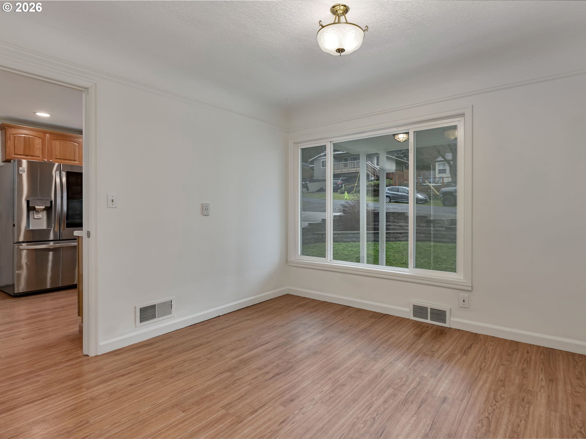 This thoughtfully updated 5-bedroom, 2-bath home sits on a spacious lot and offers the perfect blend of comfort, style, and flexibility. Inside, you’ll find all new interior paint throughout, creating a bright, fresh feel from the moment you step in. The main level features luxury plank wood flooring that flows through the living room, dining room and three bedrooms, adding warmth and durability. The inviting living room fireplace creates a cozy gathering space for relaxing evenings. The remodeled kitchen offers modern updates along with a comfortable a convenient eating nook, perfect for casual meals or morning coffee.Downstairs provides excellent flexible living options with two additional bedrooms and an oversized family room featuring an awesome woodstove to warm your toes on chilly nights. The lower level has brand new carpet throughout, including the staircase, and also includes its own exterior entrance, making it ideal for dual living, multigenerational living, or guests.Outside, the large lot provides room to spread out, garden, or enjoy outdoor activities. A detached two garage adds great storage or workshop potential, and the extended driveway offers plenty of extra parking for vehicles, guests, or recreational toys.With extensive updates, versatile living space, and a generous lot, this home offers comfort, functionality, and room to grow—ready for you to move in and enjoy. [Home Energy Score = 4. HES Report at https://rpt.greenbuildingregistry.com/hes/OR10245348]