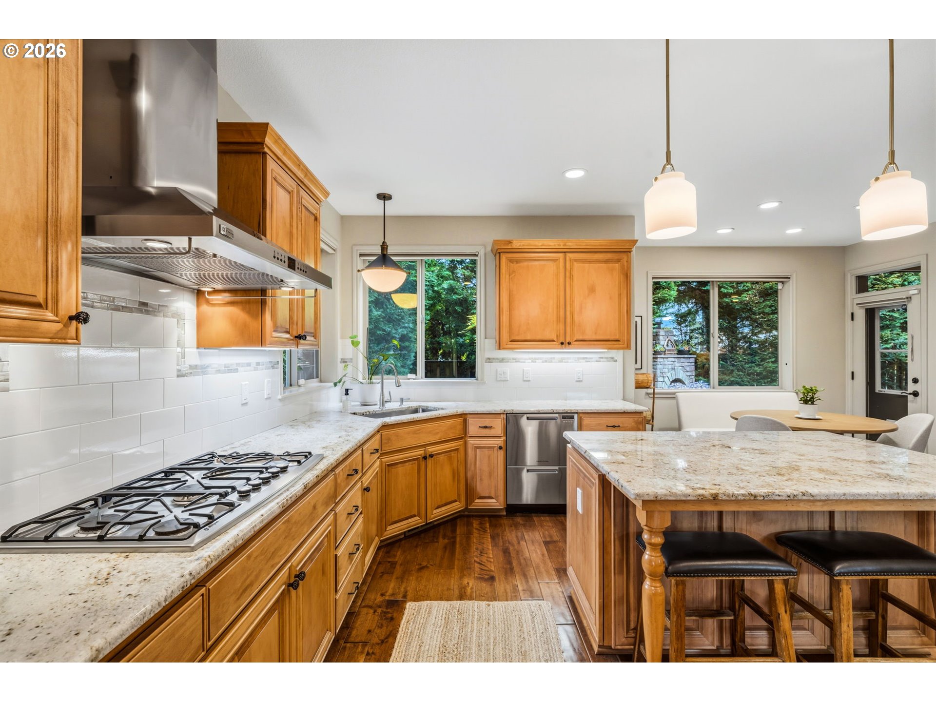 Beautifully maintained home with upgrades in the desirable Arbor Cove/Willamette neighborhood of West Linn. Features include hardwood floors throughout (no carpet), a bright interior, and a flexible layout with ample storage. The updated kitchen offers granite countertops, a large island, Fisher & Paykel drawer dishwasher, butler’s pantry, and nook. The primary suite includes a walk-in closet, soaking tub, and heated towel rack. Additional highlights include plantation shutters, Swisstrax garage flooring, wired speakers, and updated lighting. Upstairs bonus room could be 4th bedroom. Mature landscaping, a water feature and outdoor fireplace complete the backyard, making it perfect for entertaining. Conveniently located near schools, parks, shopping, and dining.