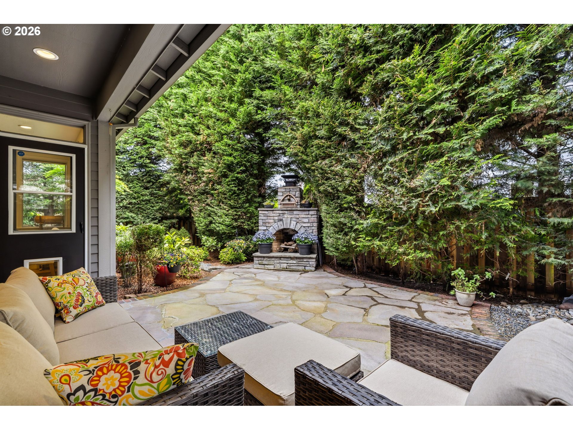 CoveredPatio, Fenced, OutdoorFireplace, Patio, Sprinkler, WaterFeature, Yard