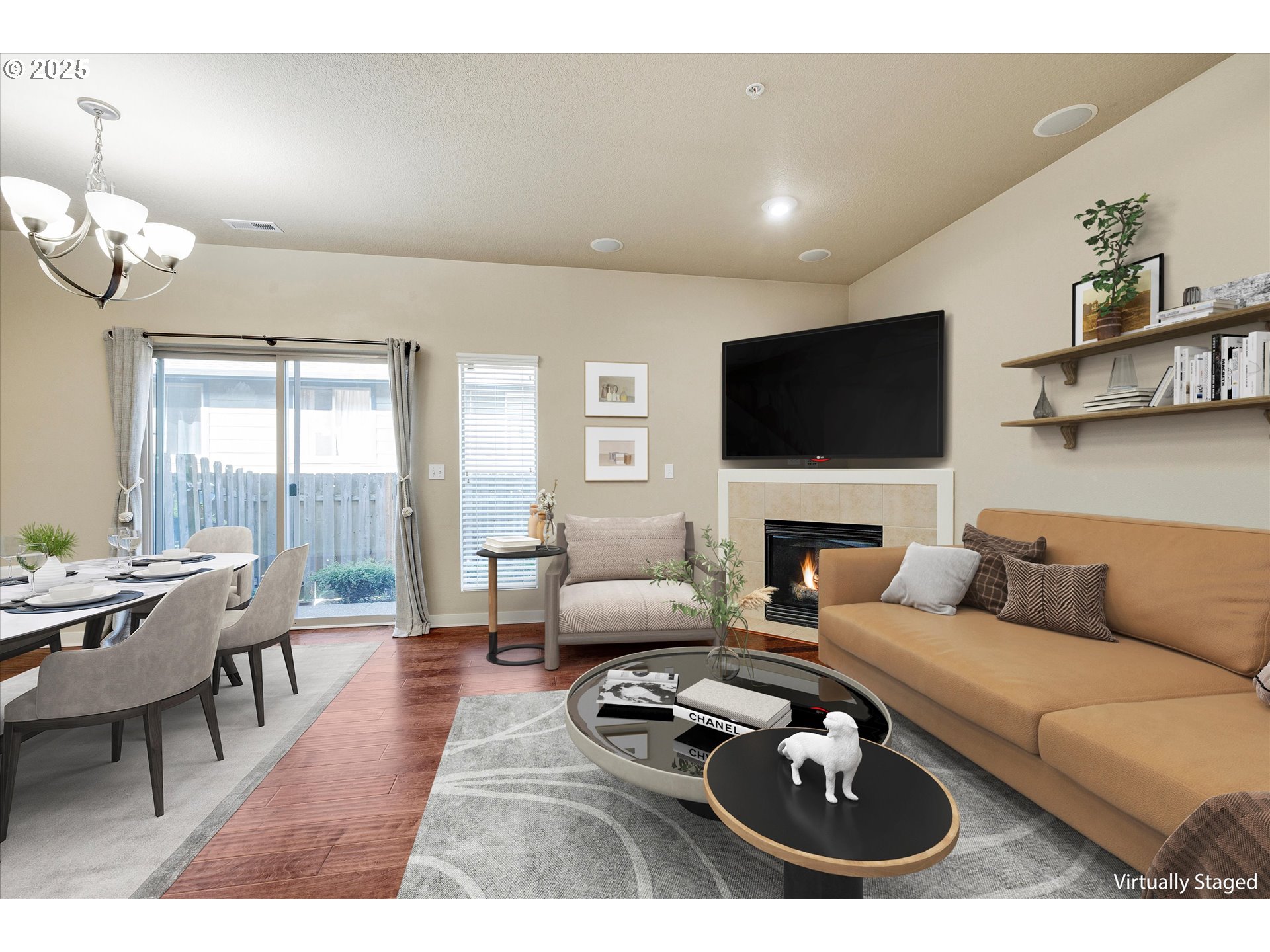 This beautifully designed 1,480 sq ft home offers the ideal blend of style, space, and location. Step into a functional and inviting floor plan featuring dark wide-plank engineered hardwood floors, a spacious living room with a cozy corner fireplace, and an open-concept layout perfect for everyday living and entertaining.The kitchen is a showstopper with granite countertops, stainless steel appliances, a breakfast bar, and ample cabinetry—all designed with both beauty and functionality in mind. Retreat to the serene primary suite complete with a walk-in shower for a spa-like experience.Beyond the home, enjoy access to top-tier recreational amenities including a golf course, fitness center, and exterior maintenance—all covered by the HOA. Located near award-winning schools and close to parks, trails, and shopping, this is the total package for lifestyle and value.Don’t miss your chance to own in one of Happy Valley’s most desirable communities!
