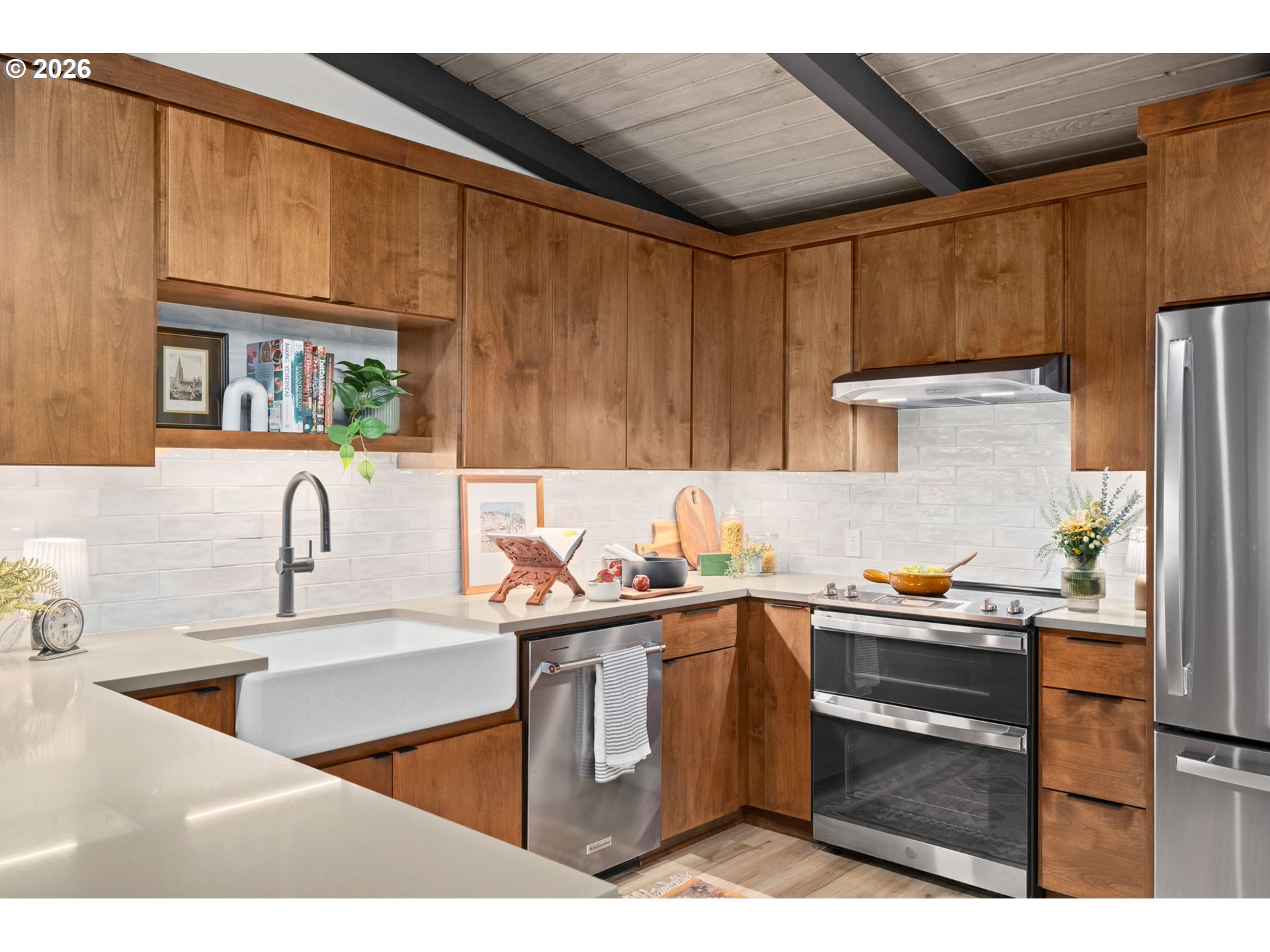 If cute as a button was a darling mid-century in Oregon City, you've found it. Remodeled while still flush with original features - that pink tub! A private cabin in the woods feel, but oh so close to downtown - bring the pups! A total win-win. Full kitchen remodel and all new plumbing from 2023, brand new windows in 2025, energy efficient mini-split for heating and cooling 2023, metal roof, solar panels, rain barrels, and so much more! This home is ready for it's next chapter and sure to please. Welcome to Oregon City, we think you'll like it here.