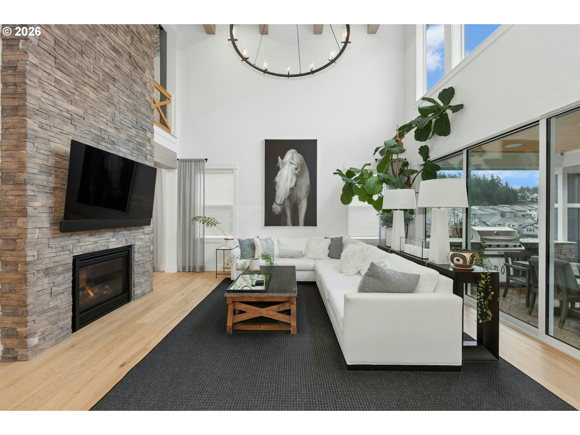 OPEN HOUSE SATURDAY: 12:00 - 2:00 Toll Brothers presents a thoughtfully designed contemporary home where elevated living meets refined style. Clean architectural lines and a striking exterior introduce a light-filled interior defined by soaring ceilings, expansive windows, and warm wood flooring throughout. The open-concept layout creates an effortless flow ideal for both everyday living and entertaining.A welcoming entry leads to the main living area, where the great room showcases dramatic volume, a statement fireplace, and seamless connection to the dining space and chef’s kitchen. The kitchen features sleek cabinetry, premium stainless appliances, a spacious island, and modern lighting that enhances both function and design.Indoor-outdoor living takes center stage with expansive sliding doors opening to a private outdoor setting—perfect for dining, relaxing, or entertaining year-round. This natural extension of the home enhances both comfort and versatility.The primary suite offers a peaceful retreat with a spa-inspired bath, dual vanities, and a beautifully finished walk-in shower. Additional bedrooms provide flexibility for guests, work, or hobbies. Multiple living areas, custom built-ins, and a refined neutral palette complete this sophisticated, move-in-ready home designed for modern living. BONUS: All furniture included with FULL PRICE OFFER!!! Excellent Deal!!! Just bring your clothes!!