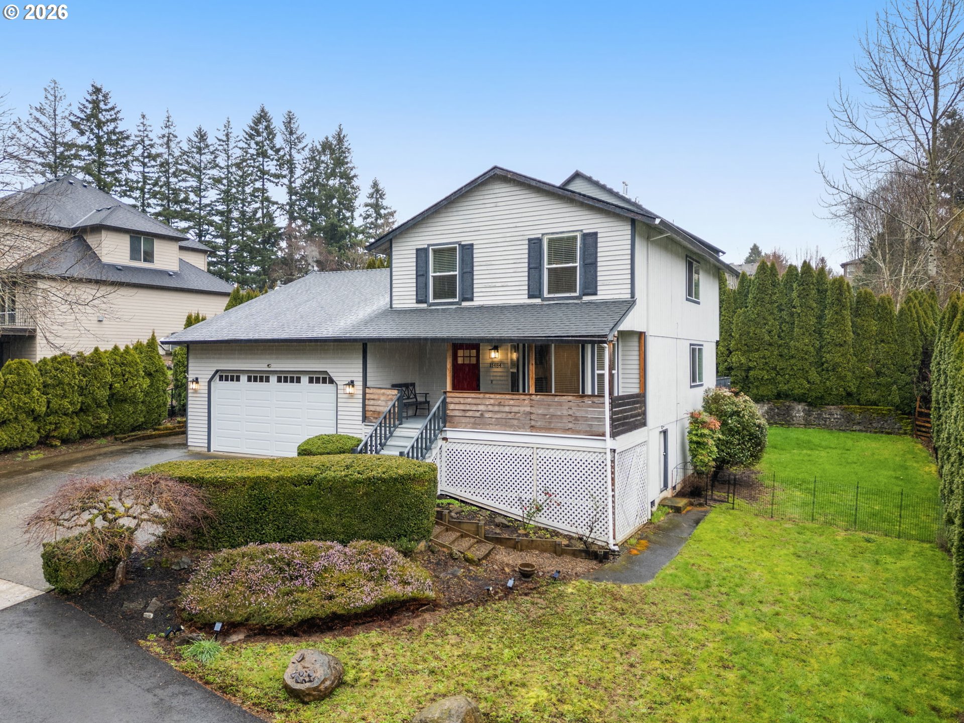 OPEN SAT 2/28 1-3 & SUN 3/1 1:30-3:30! Spacious and open 4-bedroom home on nearly a 1/4-acre lot! Perfect home for hosting with huge driveway fitting multiple vehicles including an RV or boat. Elevated and welcoming entryway with covered front porch, a nice space to enjoy morning coffee. Large living room and family room/dining area are all multifunctional. Kitchen features quartz counters, undermount sink, custom subway tile back-splash and stainless-steel appliances. 4th bedroom on the main great for in-laws or visitors along with laundry and half bath. Upstairs, generously sized bedrooms including the primary suite with walk-in closet and bathroom with double sinks and walk-in shower. Out back, relax and entertain on the spacious deck. Tons of privacy with arborvitae-lined retaining wall and plenty of yard space great for pets. Also, ample storage space including shelving in garage. Fantastic location minutes to Happy Valley Park, food carts, and plenty of dining and grocery options nearby. Easy access to I-205 and I-84 as well!