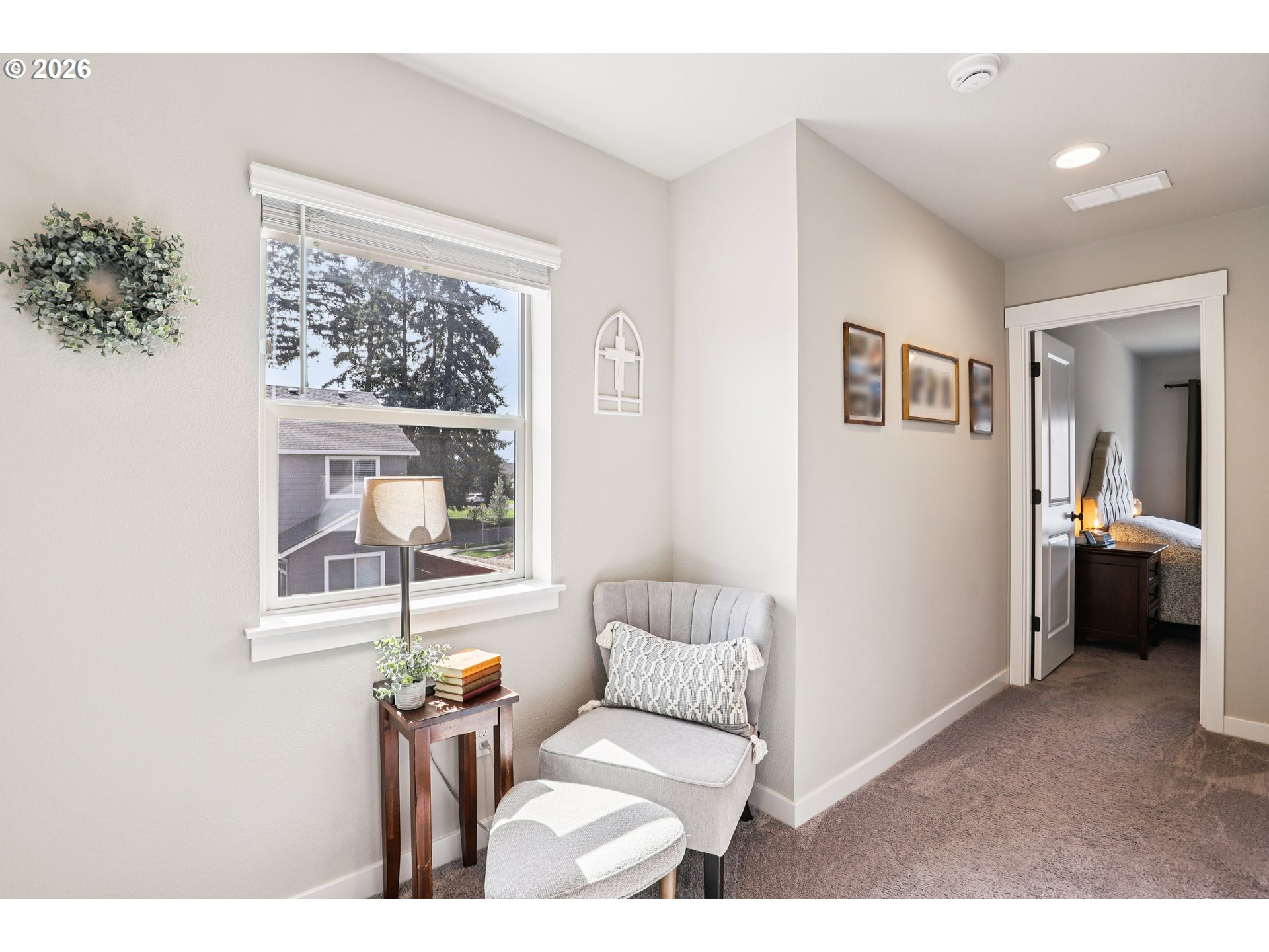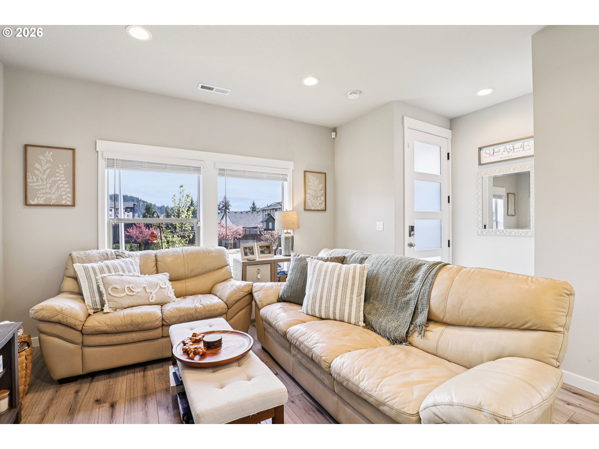 Former model home and still showing like it, this 3 bedroom, 2.5 bath townhome delivers the polished feel of newer construction without the wait. Built in 2022, the 1,608 sq ft layout pairs modern design with everyday function, featuring quartz countertops, a bright and open kitchen with upgraded white cabinetry, pantry storage, durable laminate flooring, and an electric fireplace that adds just the right amount of warmth to the main living space. Extra tall ceilings and doors on the main floor enhance the sense of space, while abundant natural light fills the home, highlighted by beautiful sunrise views through the east-facing living room windows.Upstairs, the owner’s suite offers a luxurious oversized, tiled walk-in shower, while both bathrooms feature quartz countertops and upgraded finishes. The second bedroom stands out with vaulted ceilings and an extra walk-in closet, adding both charm and functionality. As an end-unit duplex with only one shared wall, the home provides added privacy and a quieter living experience.The attached 2-car garage, tankless water heater, and well-planned layout make daily life easy, while the home’s model-home roots give it an extra edge in style and finish. Purchased just one year ago, it still feels fresh, clean, and move-in ready—a smart option for buyers who want low-maintenance living with a more elevated look and feel.Beyond the home itself, the community brings real lifestyle value with a pool, park, playgrounds, covered sports court, trails, community center, and yard maintenance through the HOA. Happy Valley Park, Scouters Mountain Nature Park, Happy Valley Town Center, and Happy Valley Station are all nearby, putting recreation, groceries, dining, and local conveniences close at hand. A great opportunity to step into a home that feels newer, sharper, and just a little more special than the standard resale. Mortgage savings may be available for buyers of this listing.