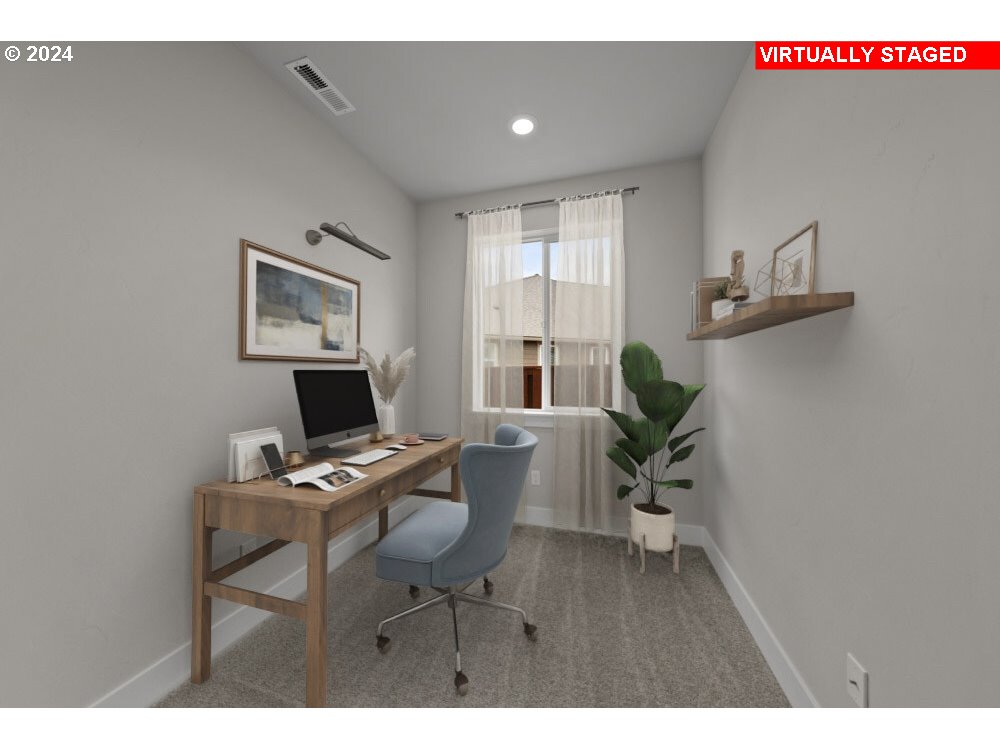 Beautiful single story 3 bedrooms plus a den, 2 bathroom offers a generous 1,906 sq. ft. of livable space. Step inside to find a bright and airy great room, boasting high ceilings and a cozy fireplace with custom built-in cabinetry. The modern kitchen is a chef's delight featuring high quality finishes, stainless steel appliances, and a roomy pantry. This home includes a den that can easily serve as a home office, fitted with a desk and chair. The primary bedroom is a true retreat offering tranquility and comfort, while the bathroom maintains a crisp aesthetic with a tile shower & dual sinks. The covered patio provide a perfect setting for outdoor enjoyment. With its blend of style and practicality, this home is an opportunity not to be missed. This areas beautiful and peaceful surroundings with future trails, community park & pickelball will carry over into the everyday way of living that continues into your home. Mark's Place master planned community borders the beautiful Molalla River, which is home to wildlife and waterfowl of all varieties. Residents have ample opportunities to hike, fish, swim, boat, or jet ski all within a couple miles of the city. Close to Canby's quality schools, parks, and local shopping. Concessions available, please contact agent.