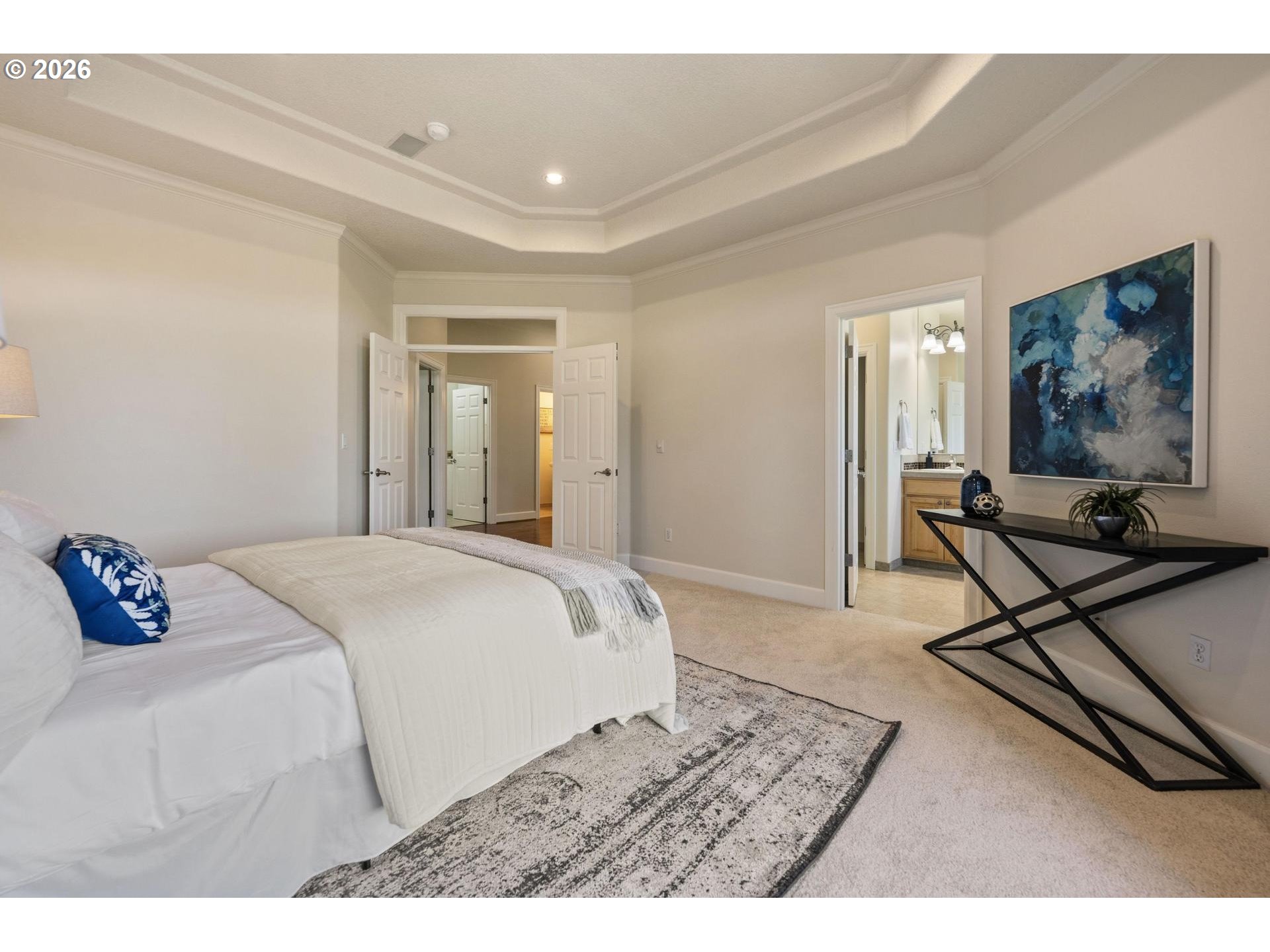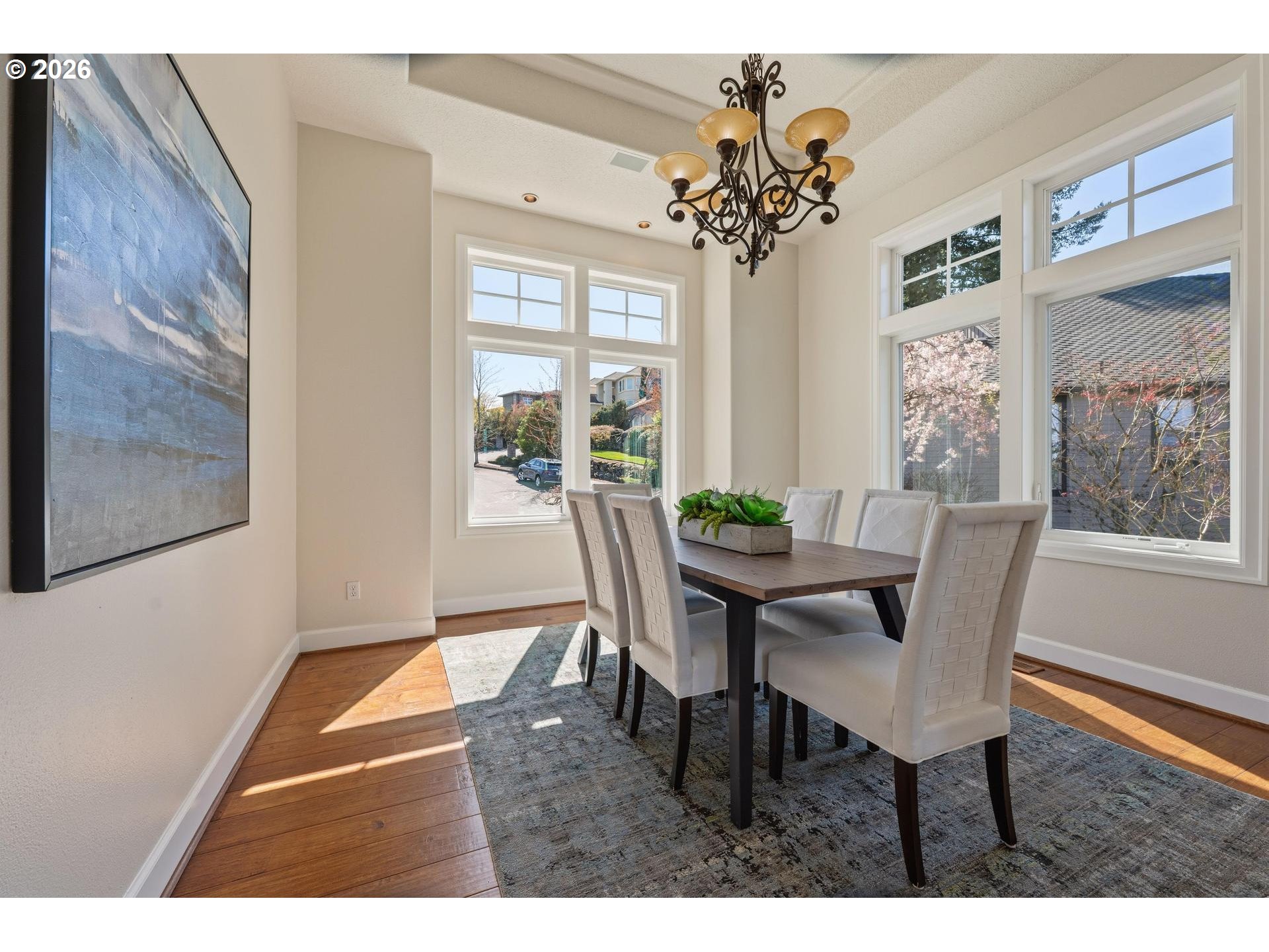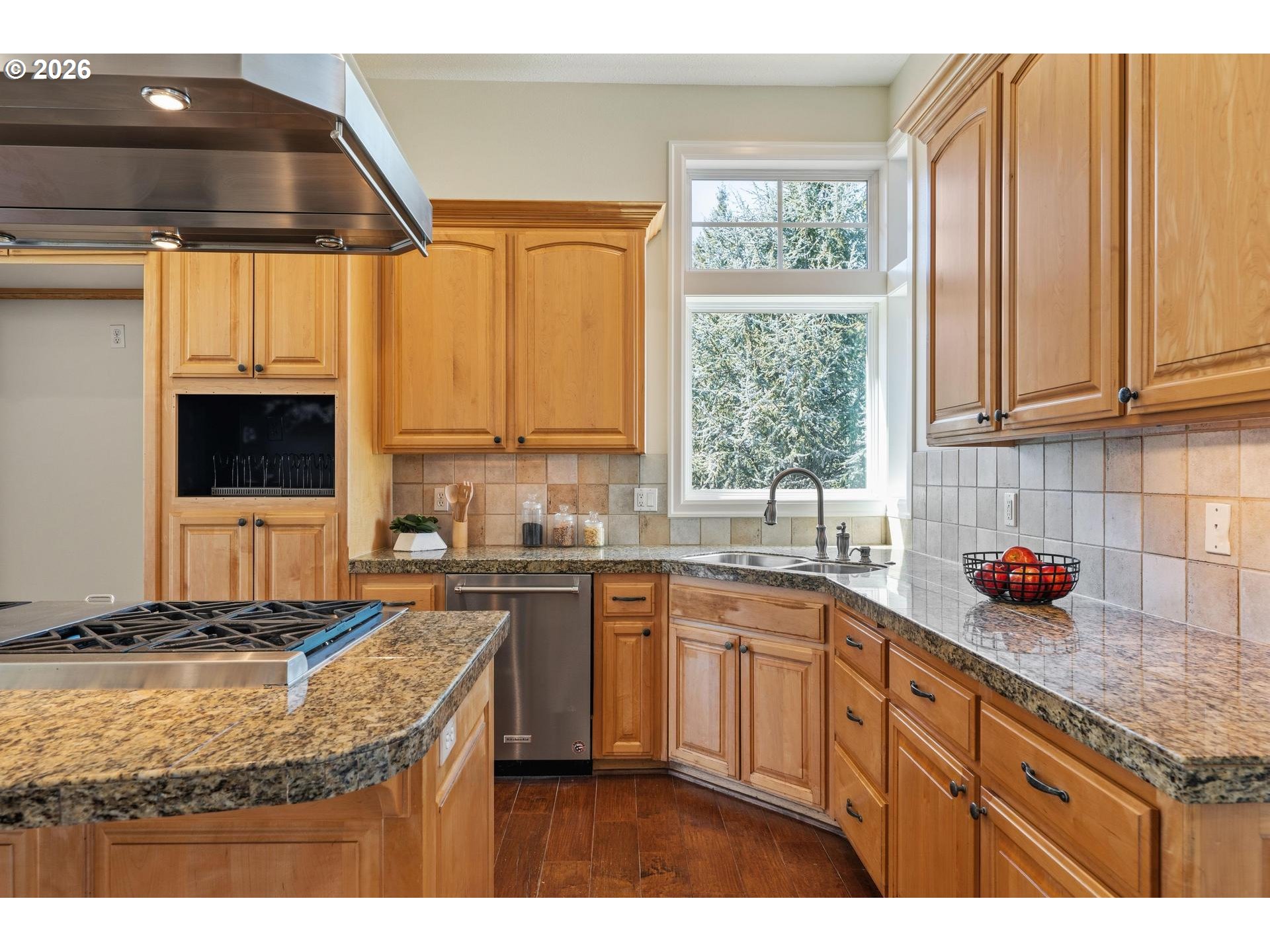 Custom built by RJ Menashe and ideally located on a quiet cul-de-sac in the Deerfield Park neighborhood, this 5 bedroom, 3.5 bath home offers 3,079 SF of well-designed living with sweeping territorial views and multiple outdoor spaces. Featuring a highly desirable primary bedroom on the main level, the main floor also includes formal dining and a spacious kitchen with island, pantry, wet bar, and double ovens, all positioned to take advantage of the home’s natural light and views. The lower level provides exceptional flexibility with a large family room, three additional bedrooms, and two full bathrooms including a Jack and Jill layout, making it ideal for multigenerational living, guests, or work-from-home needs. Situated on a .26 acre lot, the terraced backyard includes garden beds, mature landscaping, and three separate decks for true indoor-outdoor living. Major system updates include whole house PEX plumbing (2026), new furnace and AC to be installed prior to closing, water heater (2025), dishwasher (2023), sump pump (2026), and a composition roof certified for 5 years, offering peace of mind for the next owner. Additional features include a gas fireplace, oversized 3 car garage, main level laundry with sink, and over 900 SF of unfinished storage. Conveniently located near Happy Valley amenities, parks, and Sunnyside Rd shopping, this home offers the ideal combination of space, updates, and everyday livability in an established neighborhood setting. Located within the North Clackamas School District, including Clackamas High School, Rock Creek Middle School, and Spring Mountain Elementary.