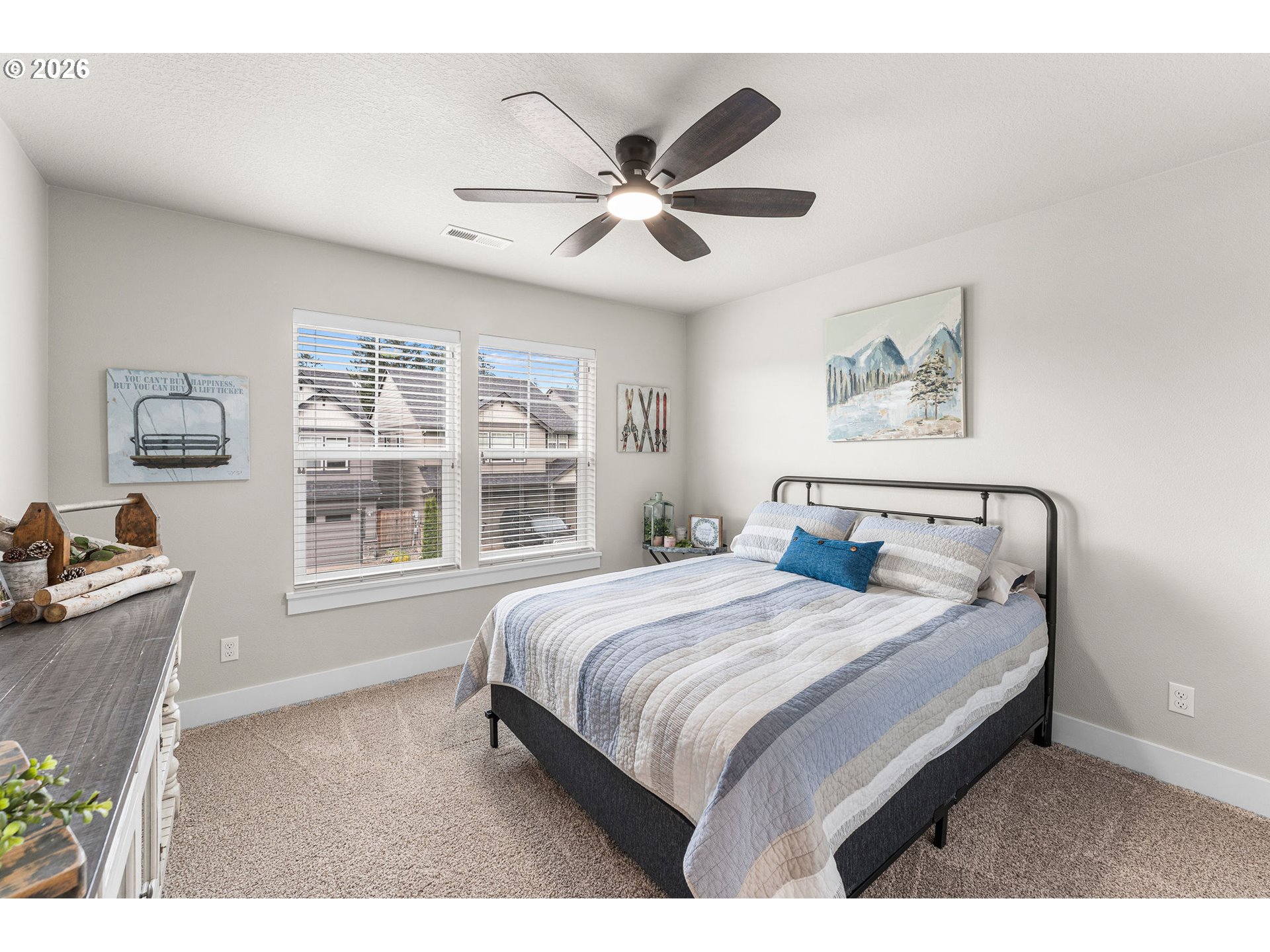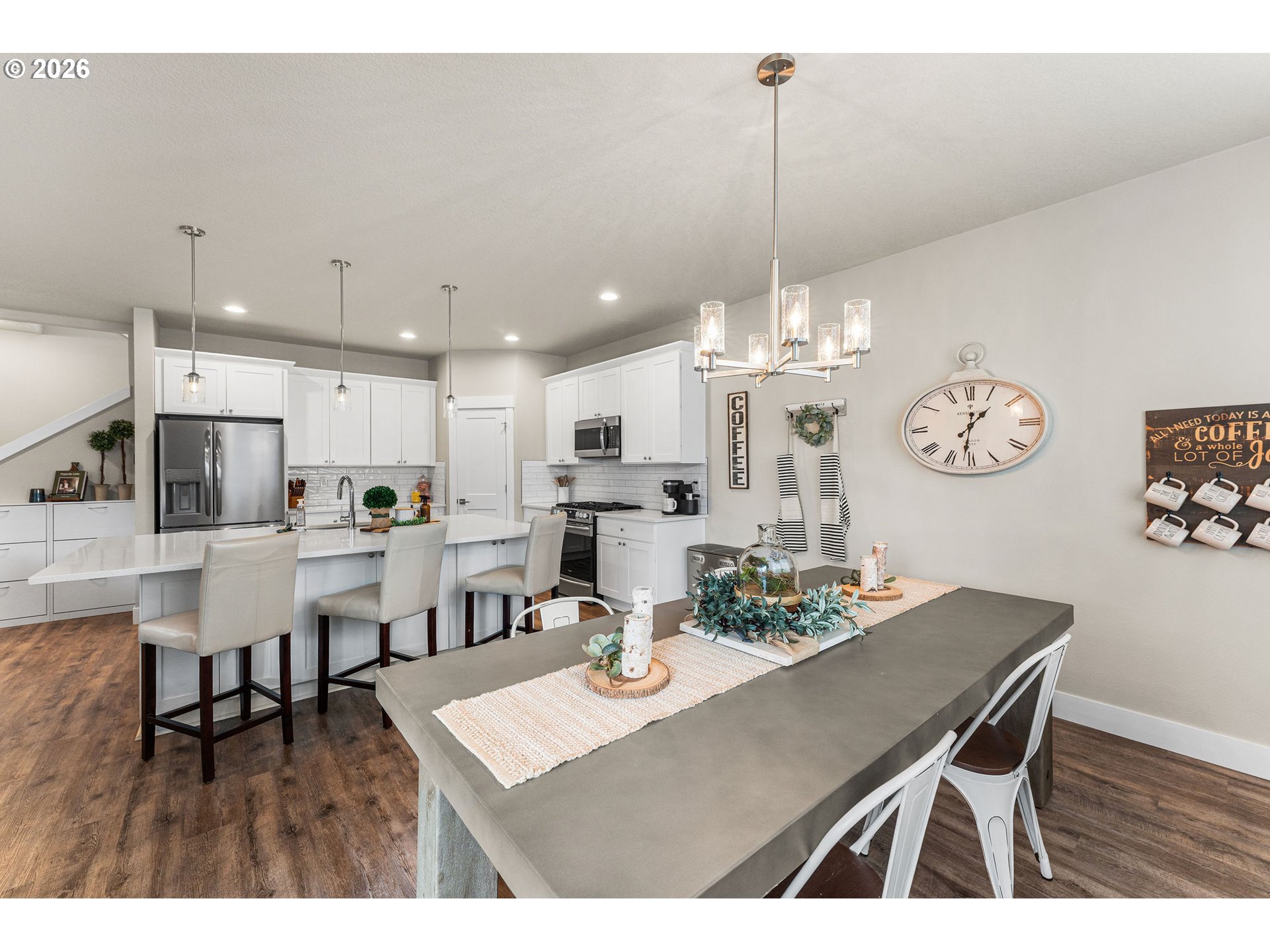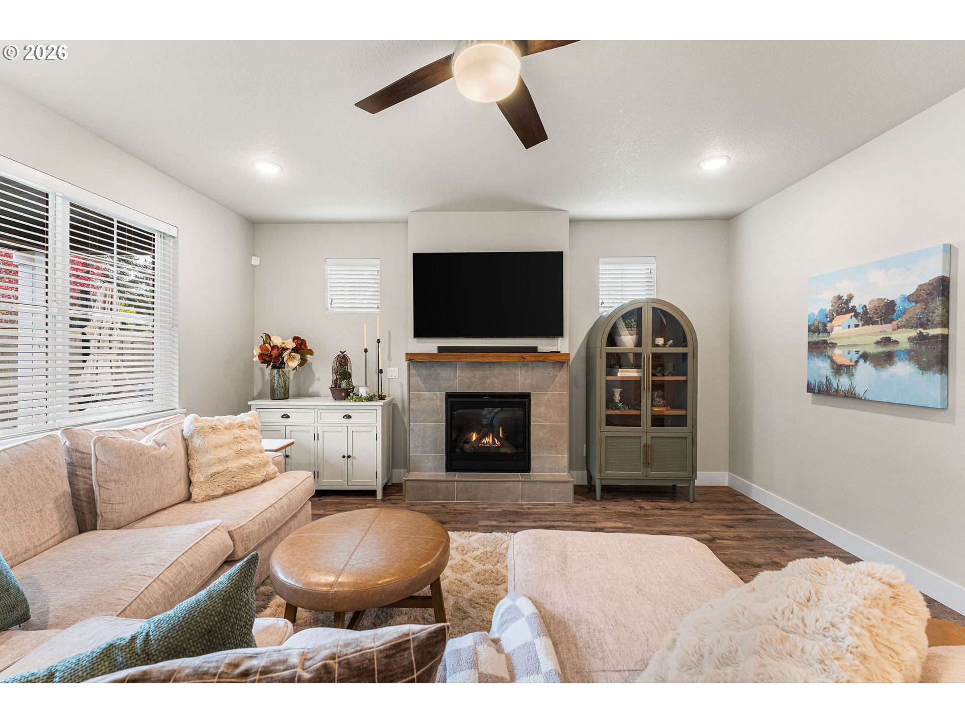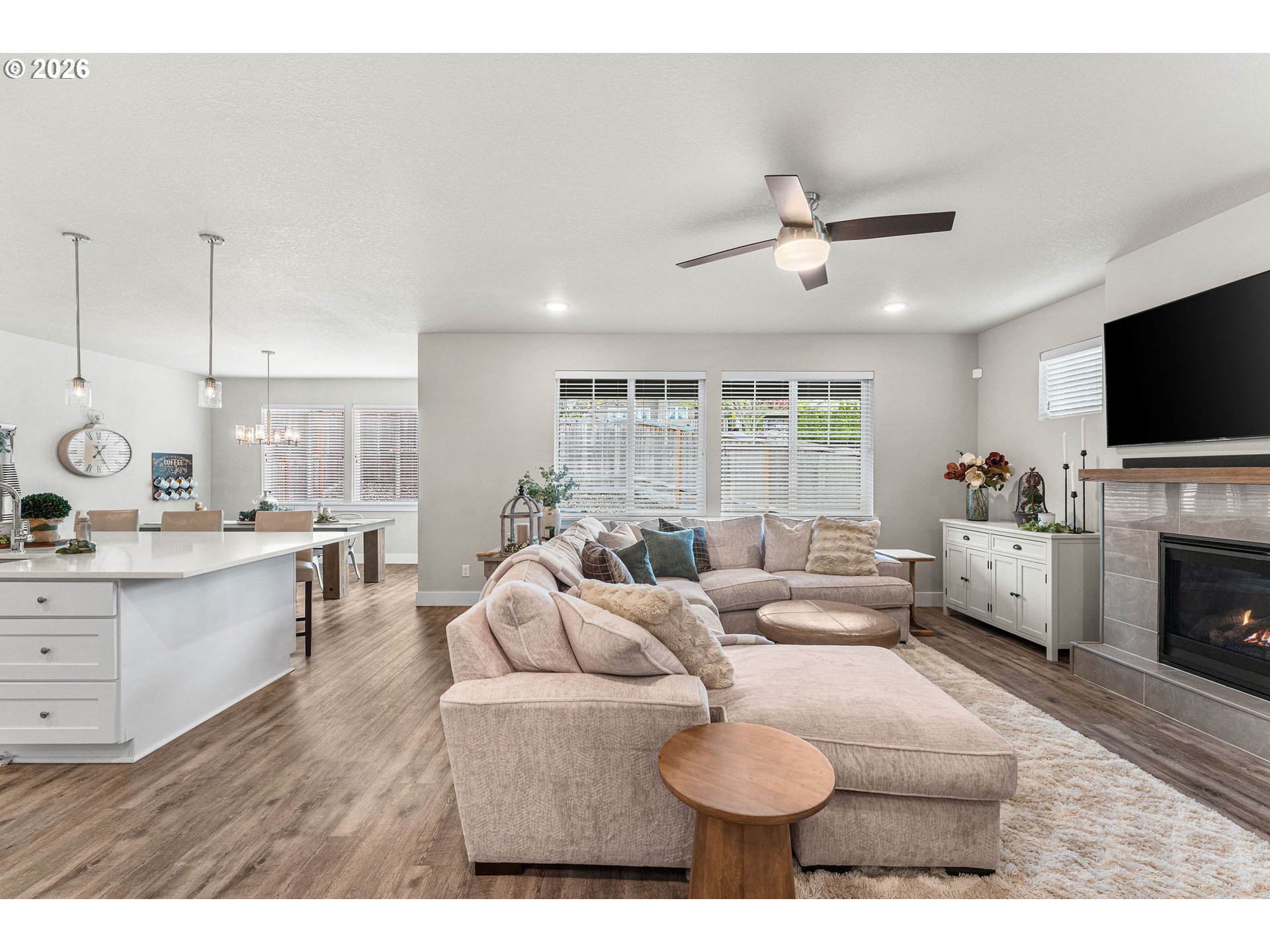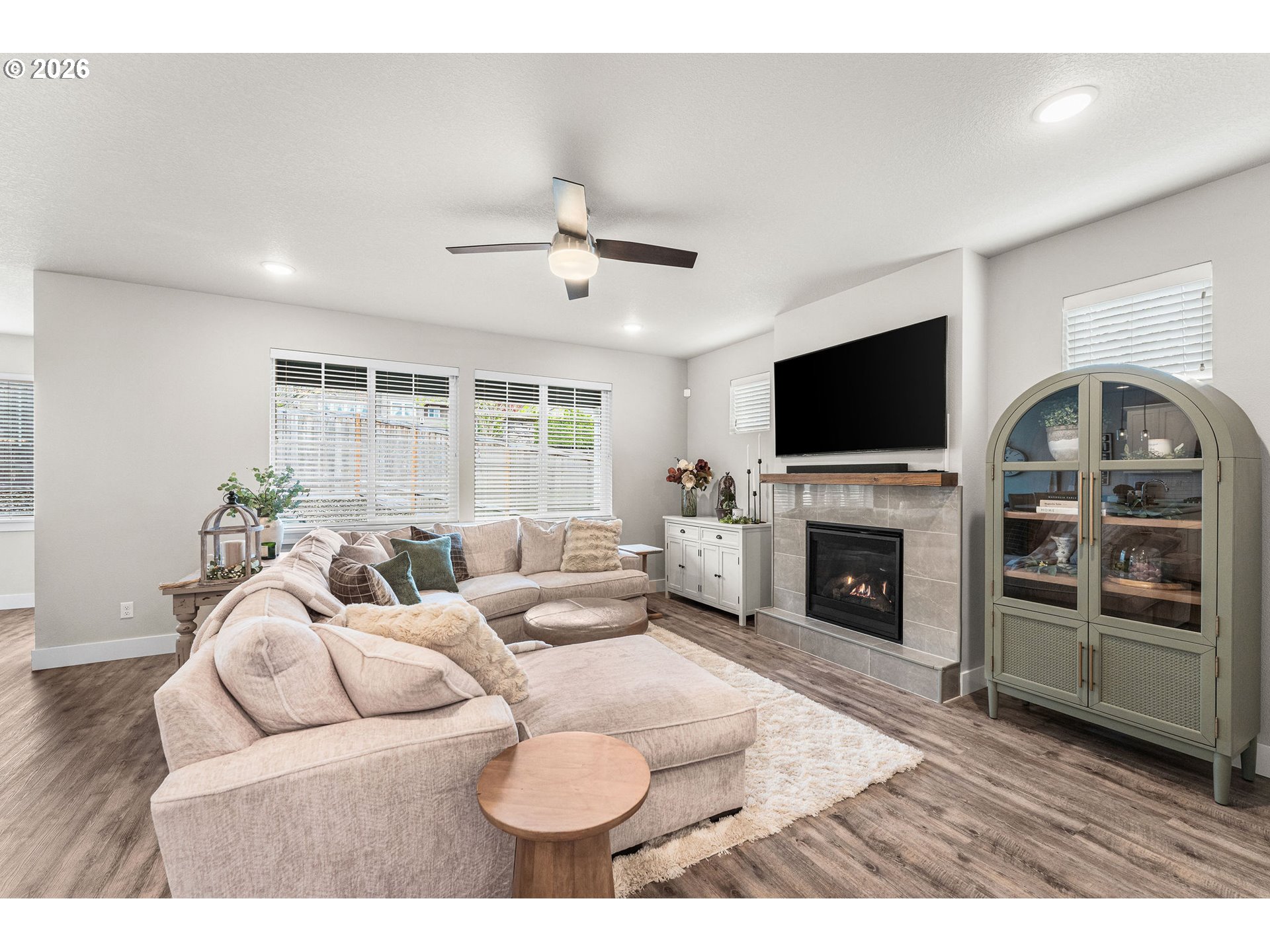 Welcome to this better than new 6-bed home featuring a highly desirable layout, including a bedroom and full bathroom on the main level, ideal for guests or multigenerational living. The spacious great room is designed for both comfort and entertaining, showcasing a cozy gas fireplace and seamless flow into the gourmet kitchen, complete with a large pantry, stunning 8’x5’ quartz island, and expansive dining area with direct access to the backyard. Upstairs, the luxurious primary suite offers a true retreat with a generously sized bedroom, spa-like bathroom featuring a soaking tub and walk-in shower, and an oversized closet with built-in organization.Step outside to a fully fenced backyard designed for relaxation and entertaining, featuring an extended covered patio, hot tub, gas hookup, and additional storage shed. Additional upgrades include smart home features such as a smart thermostat and smart garage, epoxy garage flooring, and an EV charger, combining modern convenience with thoughtful design. Located in a vibrant Happy Valley community near parks, dining, and top-rated schools, this home offers the perfect blend of lifestyle, comfort, and amenities. Exceptional opportunity to own in The Arie at Eagle Landing—a sought-after community offering complimentary access to golf, mini golf, and a fitness center, with nearby hiking and walking trails for year-round enjoyment.