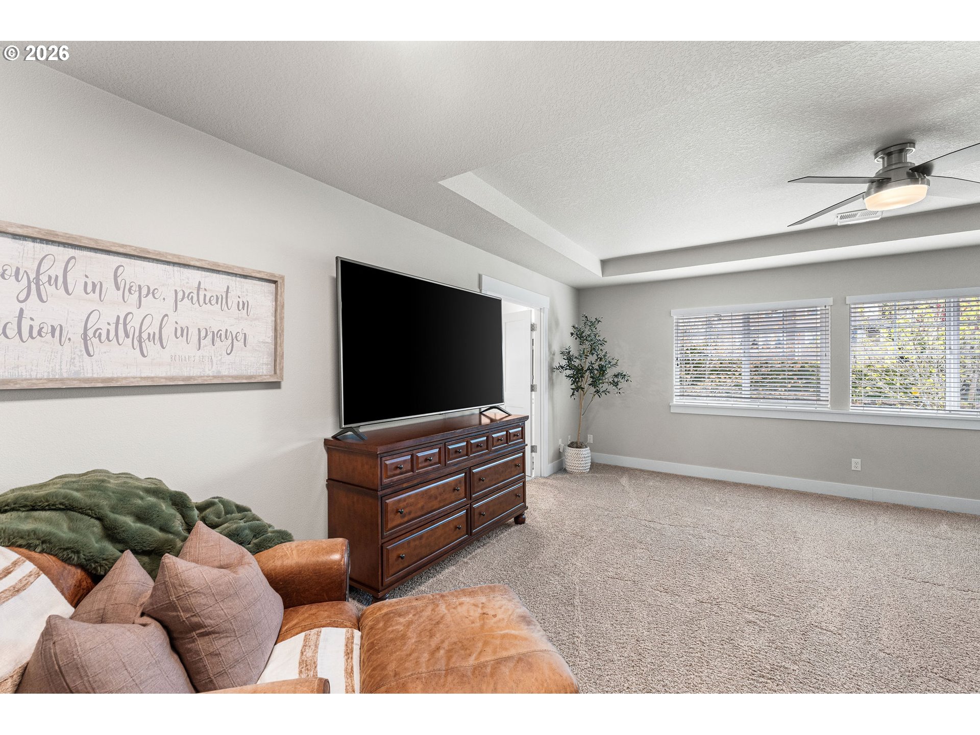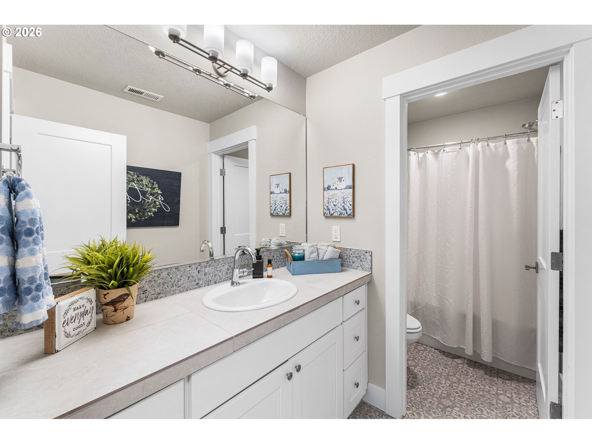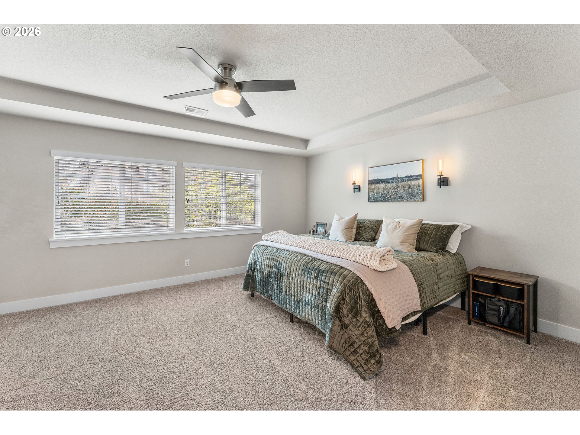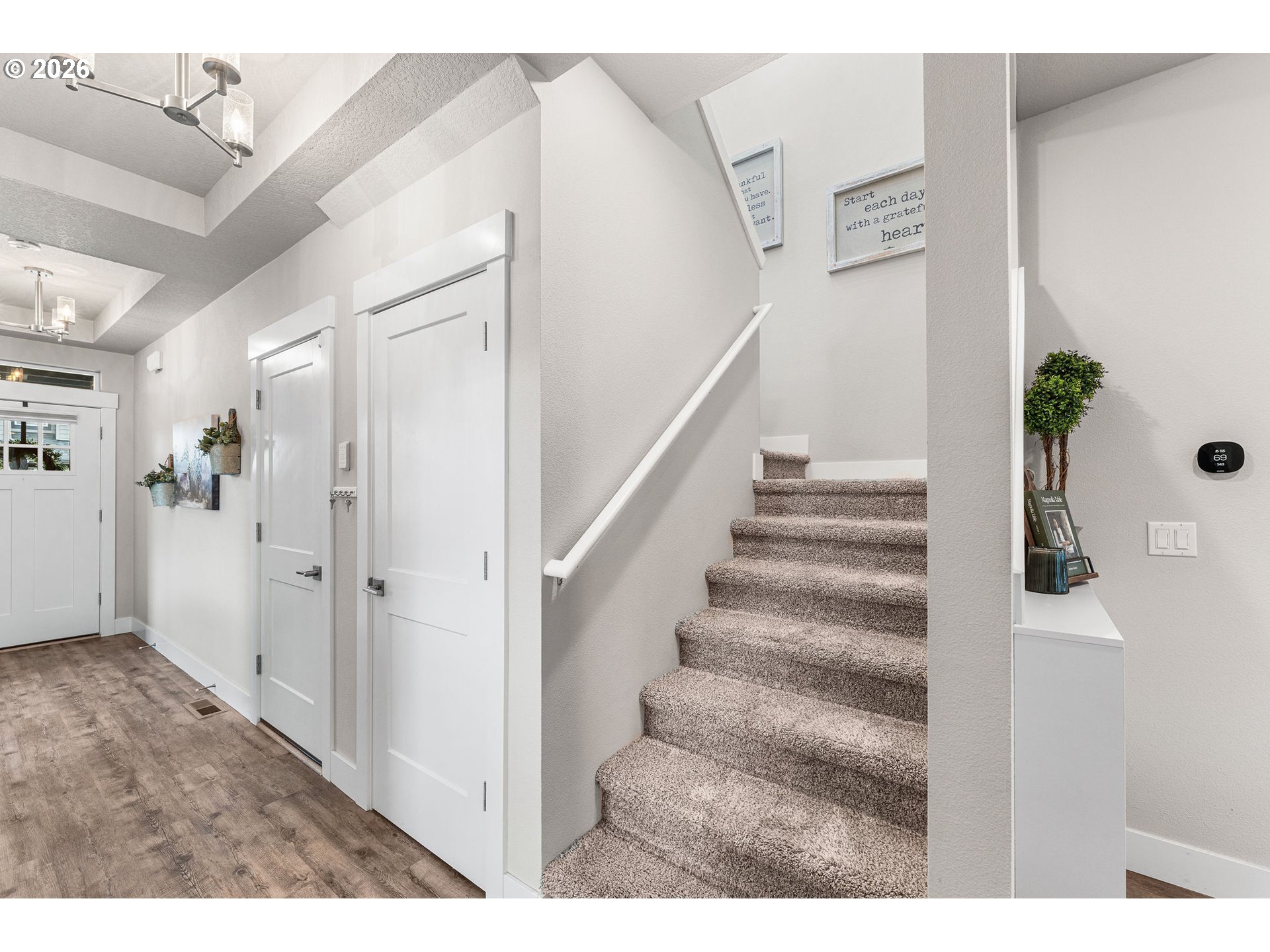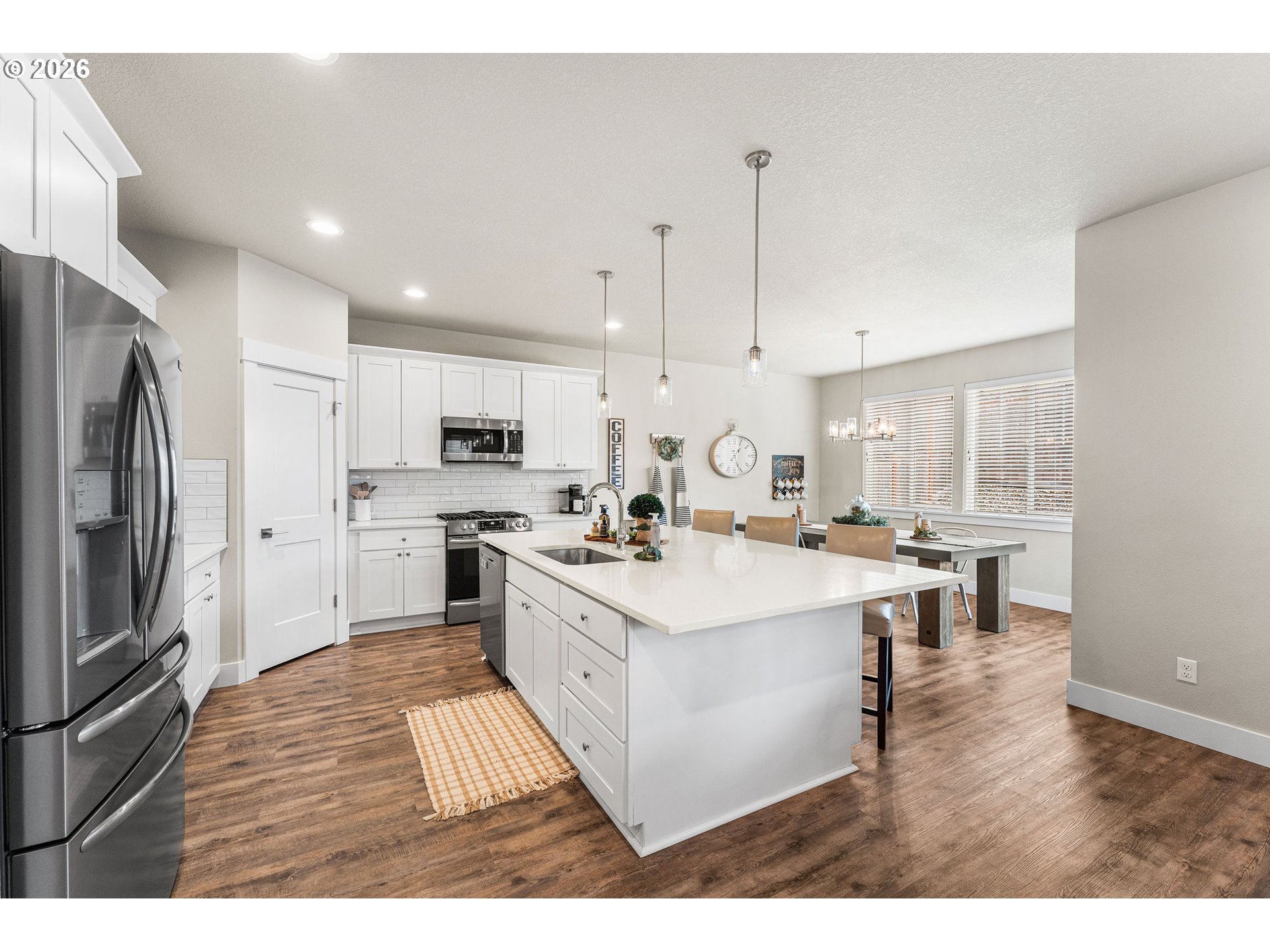 Welcome to this better than new 6-bed home featuring a highly desirable layout, including a bedroom and full bathroom on the main level, ideal for guests or multigenerational living. The spacious great room is designed for both comfort and entertaining, showcasing a cozy gas fireplace and seamless flow into the gourmet kitchen, complete with a large pantry, stunning 8’x5’ quartz island, and expansive dining area with direct access to the backyard. Upstairs, the luxurious primary suite offers a true retreat with a generously sized bedroom, spa-like bathroom featuring a soaking tub and walk-in shower, and an oversized closet with built-in organization.Step outside to a fully fenced backyard designed for relaxation and entertaining, featuring an extended covered patio, hot tub, gas hookup, and additional storage shed. Additional upgrades include smart home features such as a smart thermostat and smart garage, epoxy garage flooring, and an EV charger, combining modern convenience with thoughtful design. Located in a vibrant Happy Valley community near parks, dining, and top-rated schools, this home offers the perfect blend of lifestyle, comfort, and amenities. Exceptional opportunity to own in The Arie at Eagle Landing—a sought-after community offering complimentary access to golf, mini golf, and a fitness center, with nearby hiking and walking trails for year-round enjoyment.