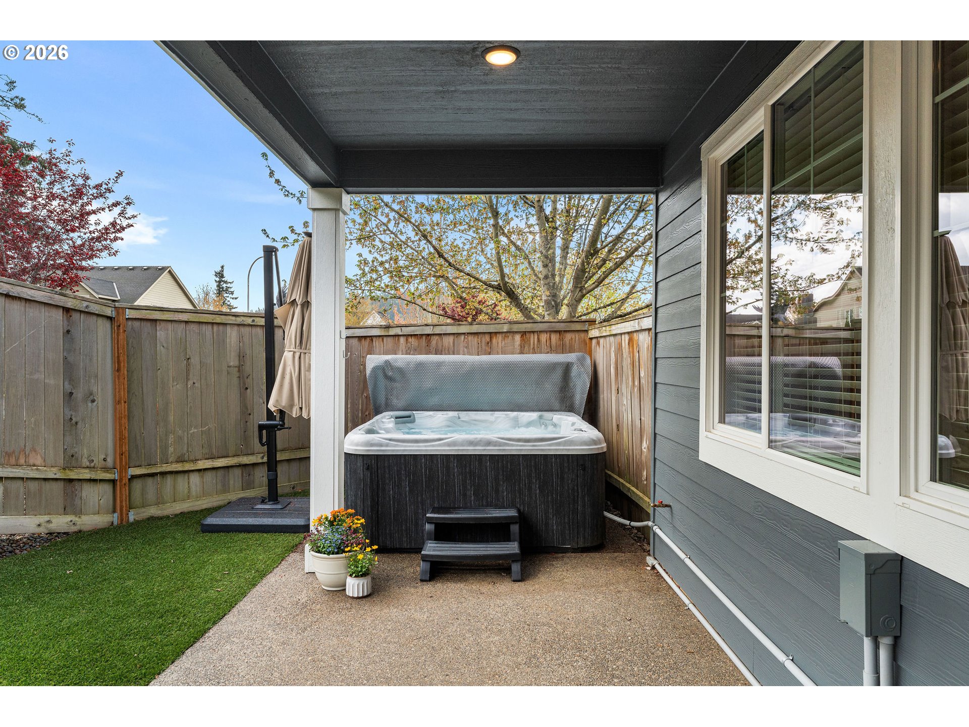 CoveredPatio, Fenced, FreeStandingHotTub, GasHookup, Patio, SecurityLights, Sprinkler, Yard