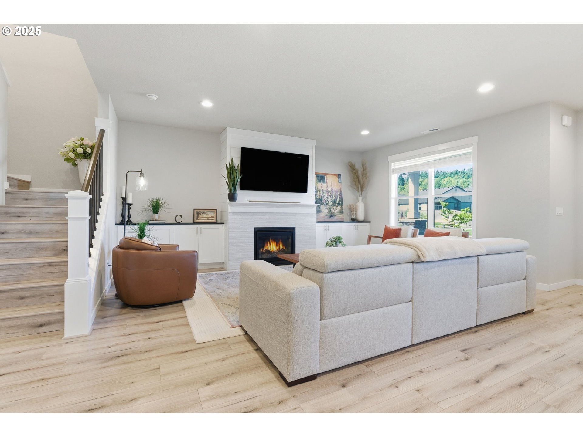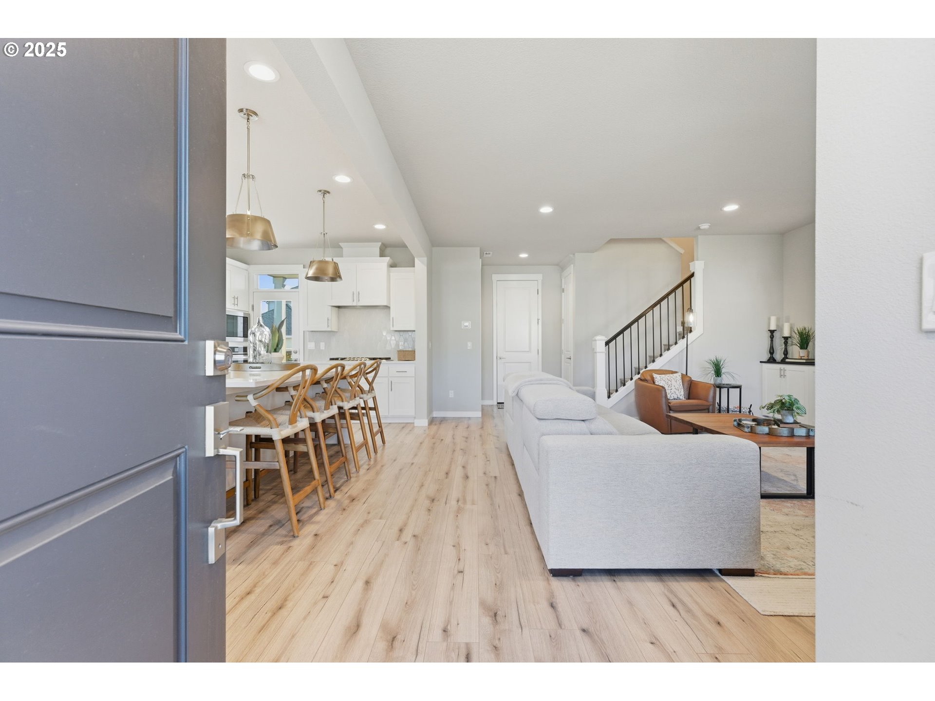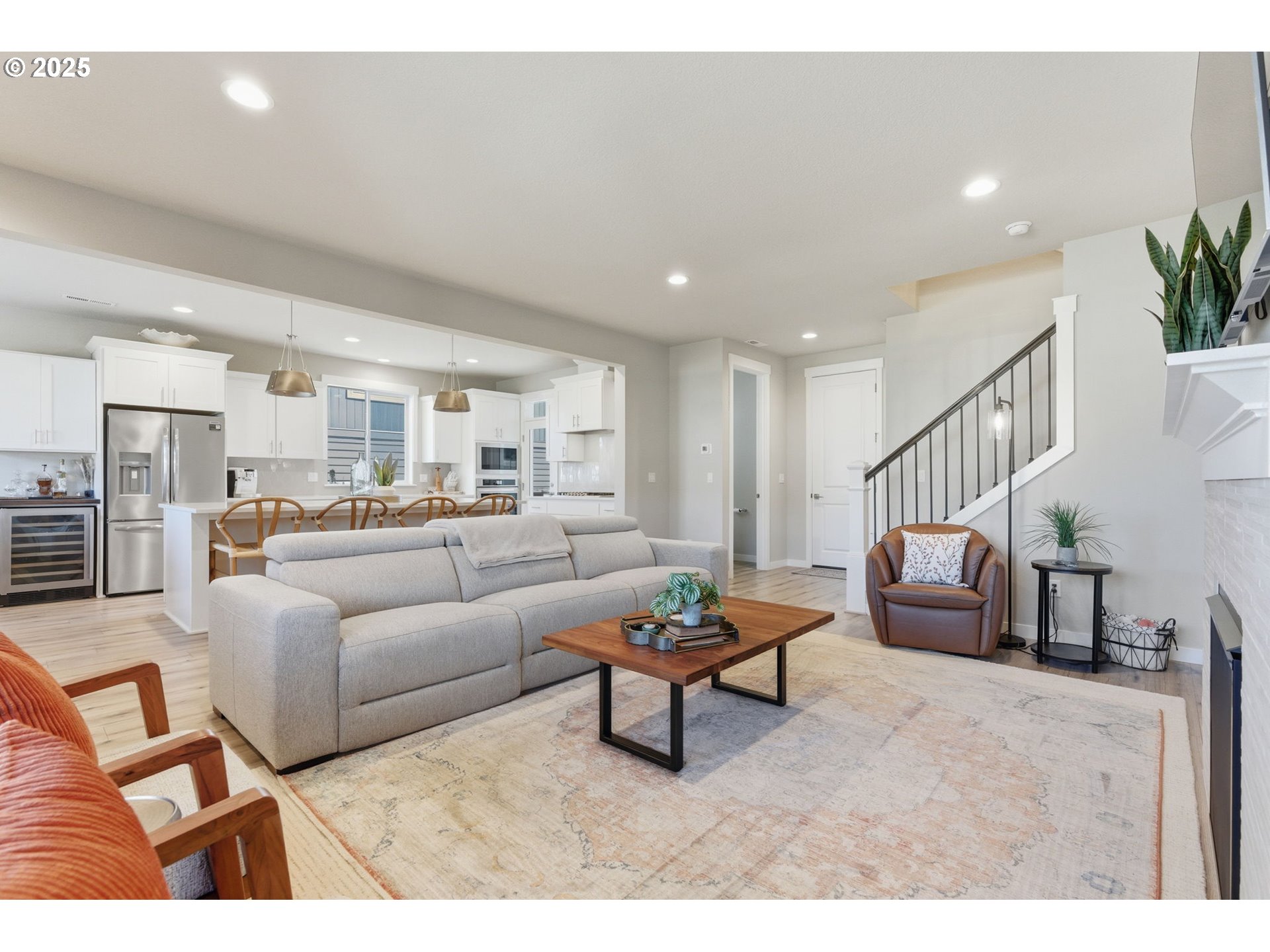 Built in 2022, this 4 bedroom, 2.5 bath Craftsman combines modern finishes with pristine condition. Lightly occupied and move-in ready, it shows like new. The open-concept chef’s kitchen offers abundant counter space, stainless steel gas appliances, a wine cooler, and a large quartz island with bar seating that's perfect for gatherings. The inviting living room centers around a cozy gas fireplace, while a separate dining area provides additional space for entertaining.Upgraded laminate flooring extends through the upper level and stairs. The spacious primary suite features high ceilings, a walk-in closet, and dual sinks in the ensuite bath.Enjoy outdoor living on the extended backyard patio that's ideal for grilling and relaxing, plus a fully fenced yard offering privacy and space for gardening.Located in one of Happy Valley’s sought-after newer neighborhoods, Pleasant Valley Villages offers exceptional amenities including a private community pool, playground, basketball court, trails, clubhouse, and more. Conveniently close to shopping, dining, and highway access.