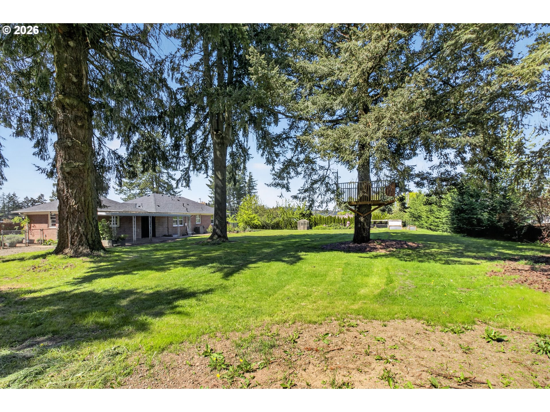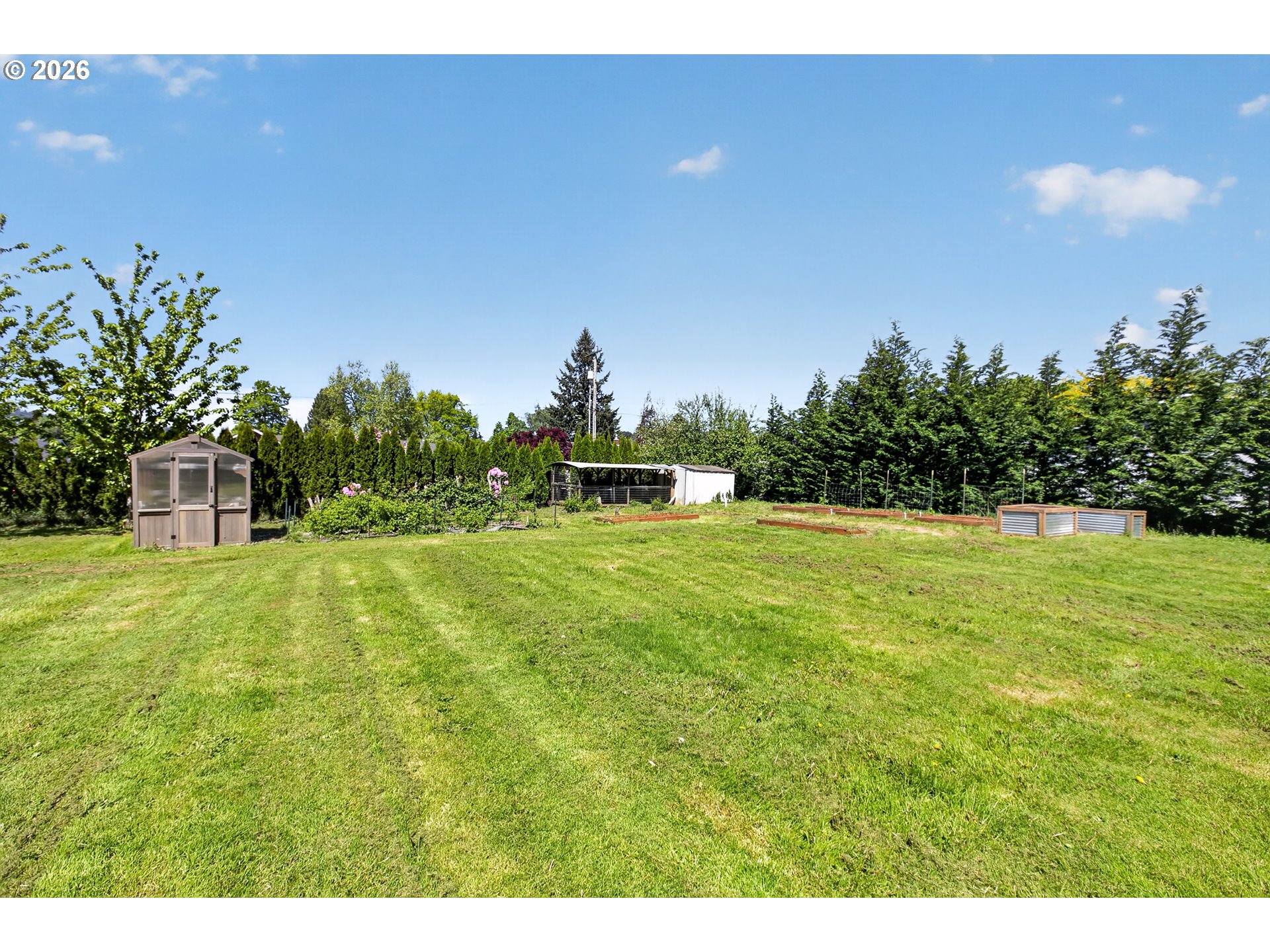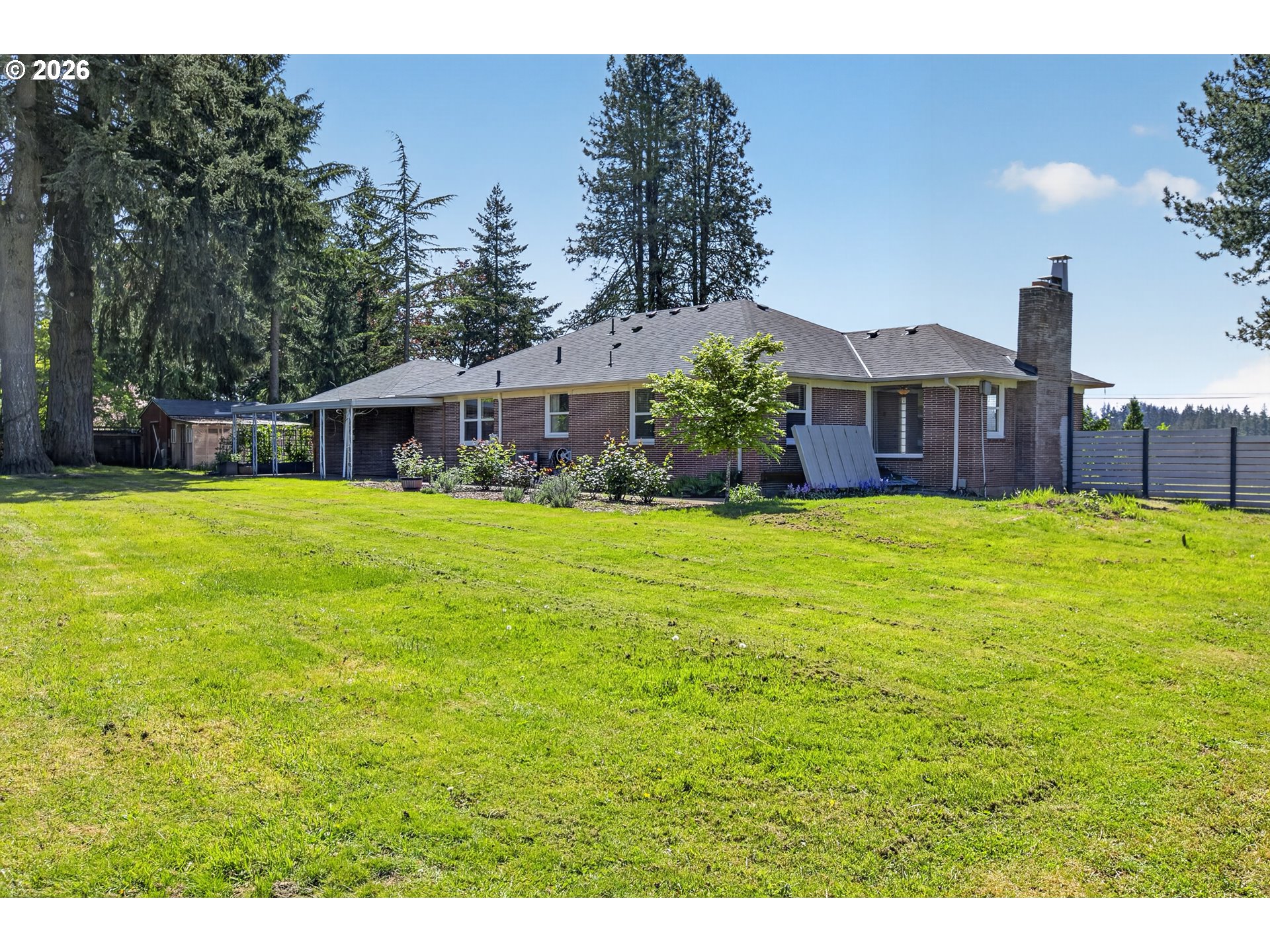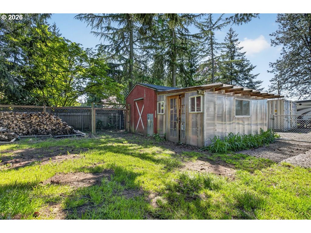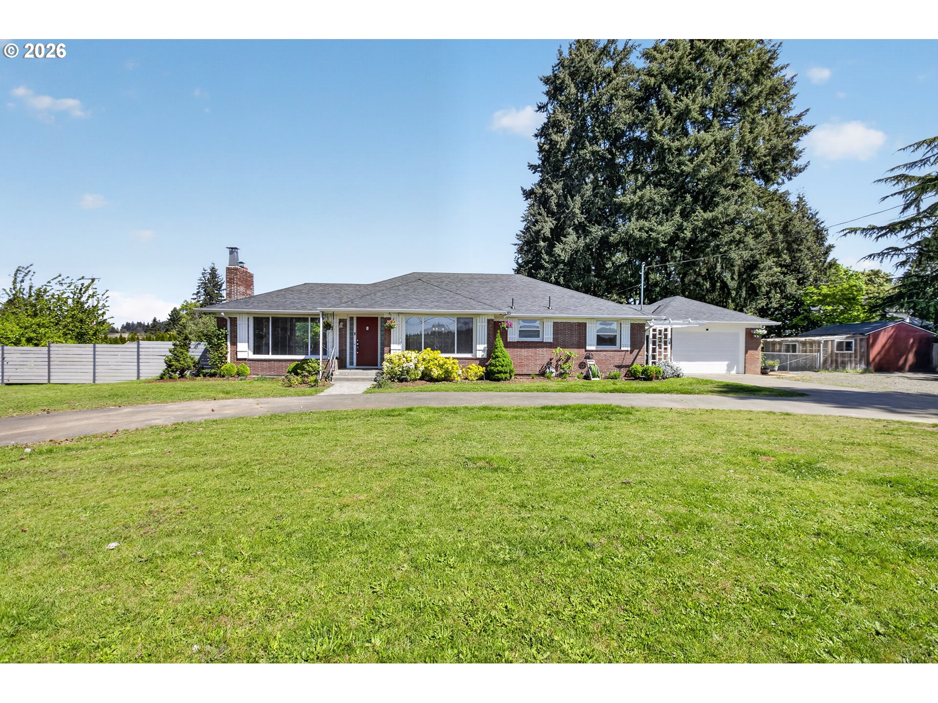 Situated on nearly one flat, fully usable acre, this charming 1949 home with original built-ins and recently refinished solid wood floors offers the lifestyle many are dreaming of. A brand-new roof was placed in March 2026 with a complete tear-off. Fenced in both the front and back, with two gated entry and exit points, the property offers privacy, and the circular driveway makes coming and going a breeze. Invite ALL the friends and family! RV parking and 30 amp hook-up, plenty of spacious areas for parking, and 3413 sq ft of interior living space. Two greenhouses, irrigated garden beds, numerous fruit trees, a chicken coop and run, various lavender, blueberry, and rose bushes, mature trees, and an amazing treehouse! Store tools in your 12X10 storage shed with a concrete pad and window. Gather on the covered back patio and enjoy meals made from the harvest of your own yard. Step inside and enjoy a spacious, updated kitchen with a welcoming nook and newer appliances, perfect for everyday living. Gatherings can be made special in the formal dining room and adjoining living room, which features built-ins, a cozy fireplace, and original wood floors. Four bedrooms (one non-conforming) PLUS two bonus rooms allow for plenty of options. The oversized laundry room includes the washer and dryer, and can also serve as a hobby room. The lower level offers a large family room with a fireplace and ample storage, enhanced by heated floors in the hallway, laundry room, and one bedroom. Central A/C provides comfort throughout the home during the warm months. Radon mitigation was installed in 2022. Terra Firma installed a French drain in 2022. Three sump pumps are located in the basement. Located in the desirable Gresham-Barlow School District.