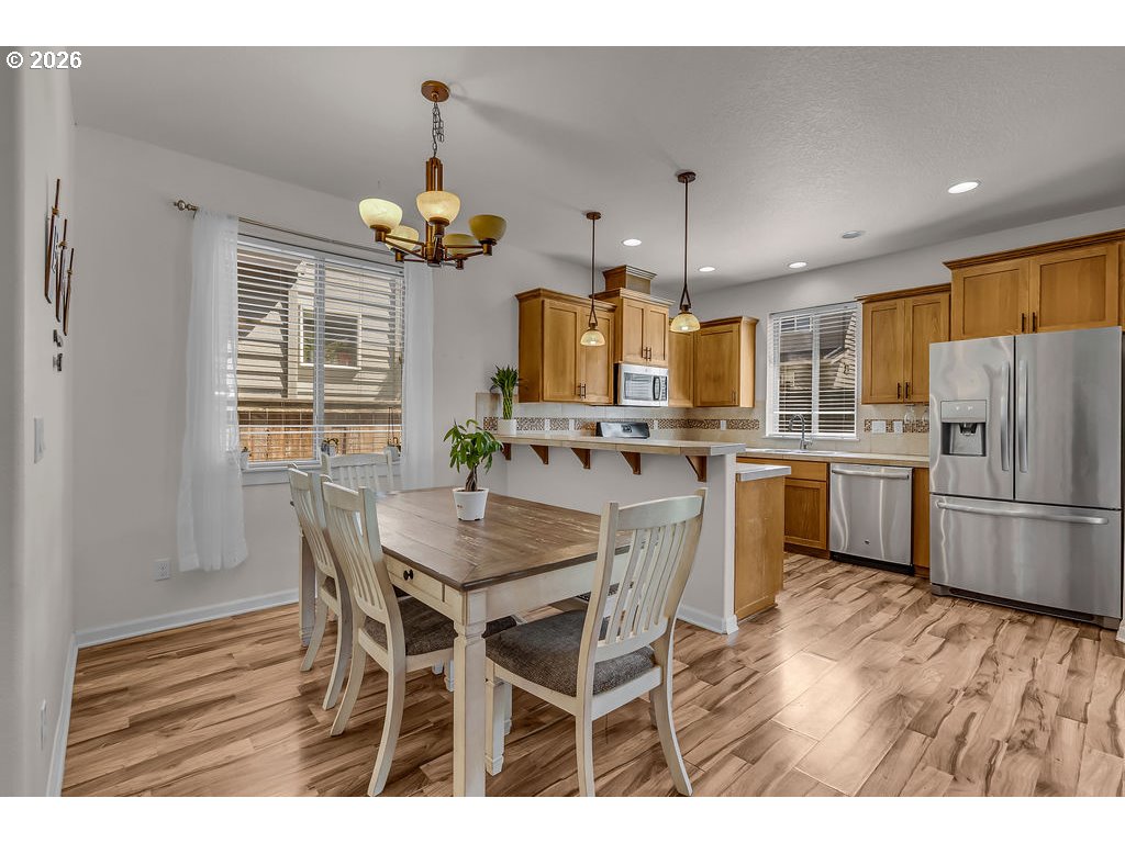 Discover this beautifully maintained 3 bedroom, 2.5 bath home built in 2010 offering 1,629sqft of thoughtfully designed living space in desirable Oregon City. The open concept layout is enhanced by stylish wood look flooring and abundant natural light, creating a warm and welcoming atmosphere throughout. The inviting living room features a cozy gas fireplace and flows seamlessly into a spacious dining area perfect for both everyday living and entertaining. The kitchen boasts stainless steel appliances, a gas range, and a generous pantry for ample storage. Upstairs, you’ll find all 3 bedrooms, including a comfortable primary suite complete with a private en suite bath, dual vanity, and a walk-in closet. Step outside to enjoy a fully fenced backyard with a covered patio, ideal for relaxing or hosting gatherings year-round. Home is close to schools, shopping & within close proximity to I-5.