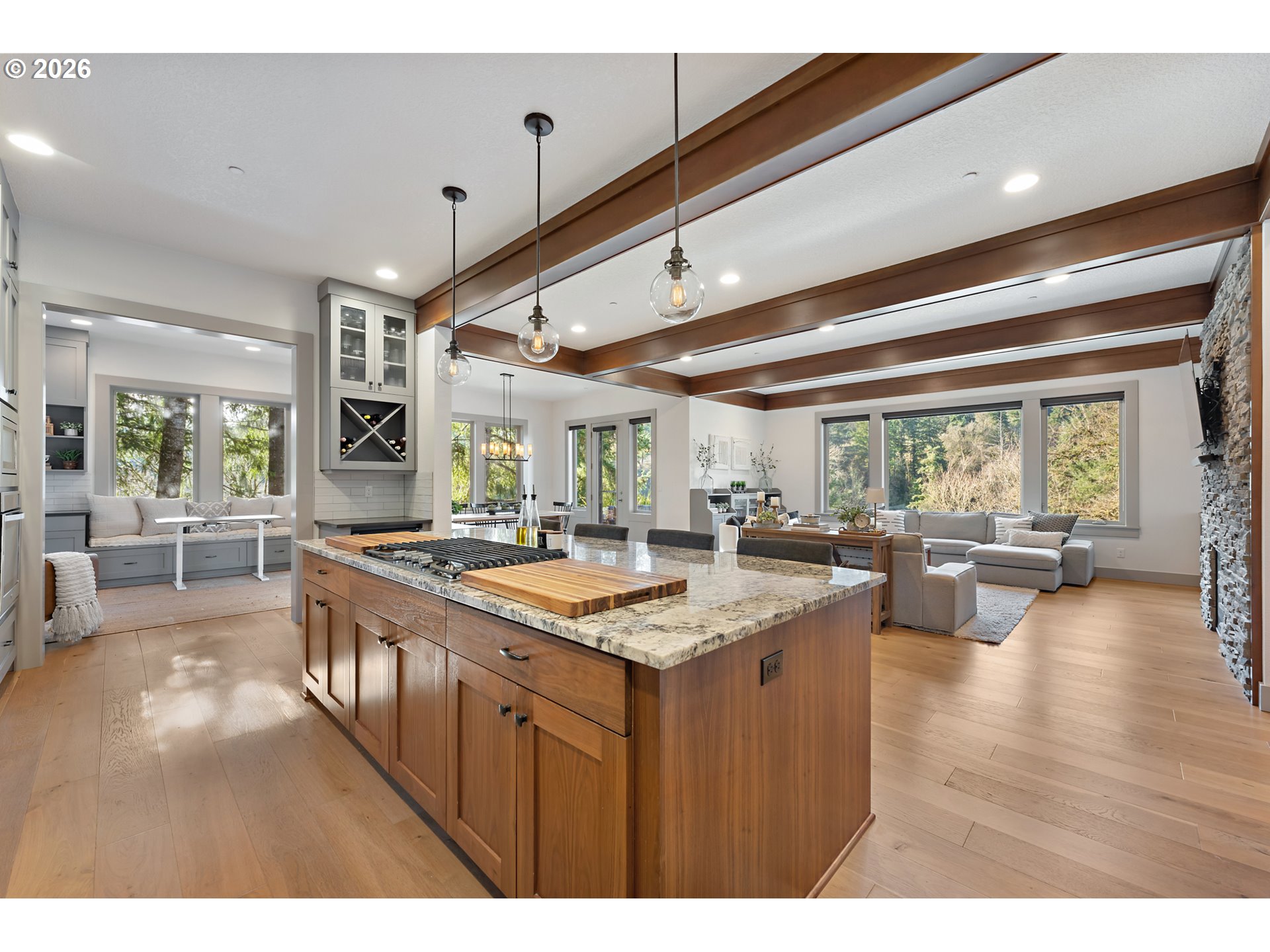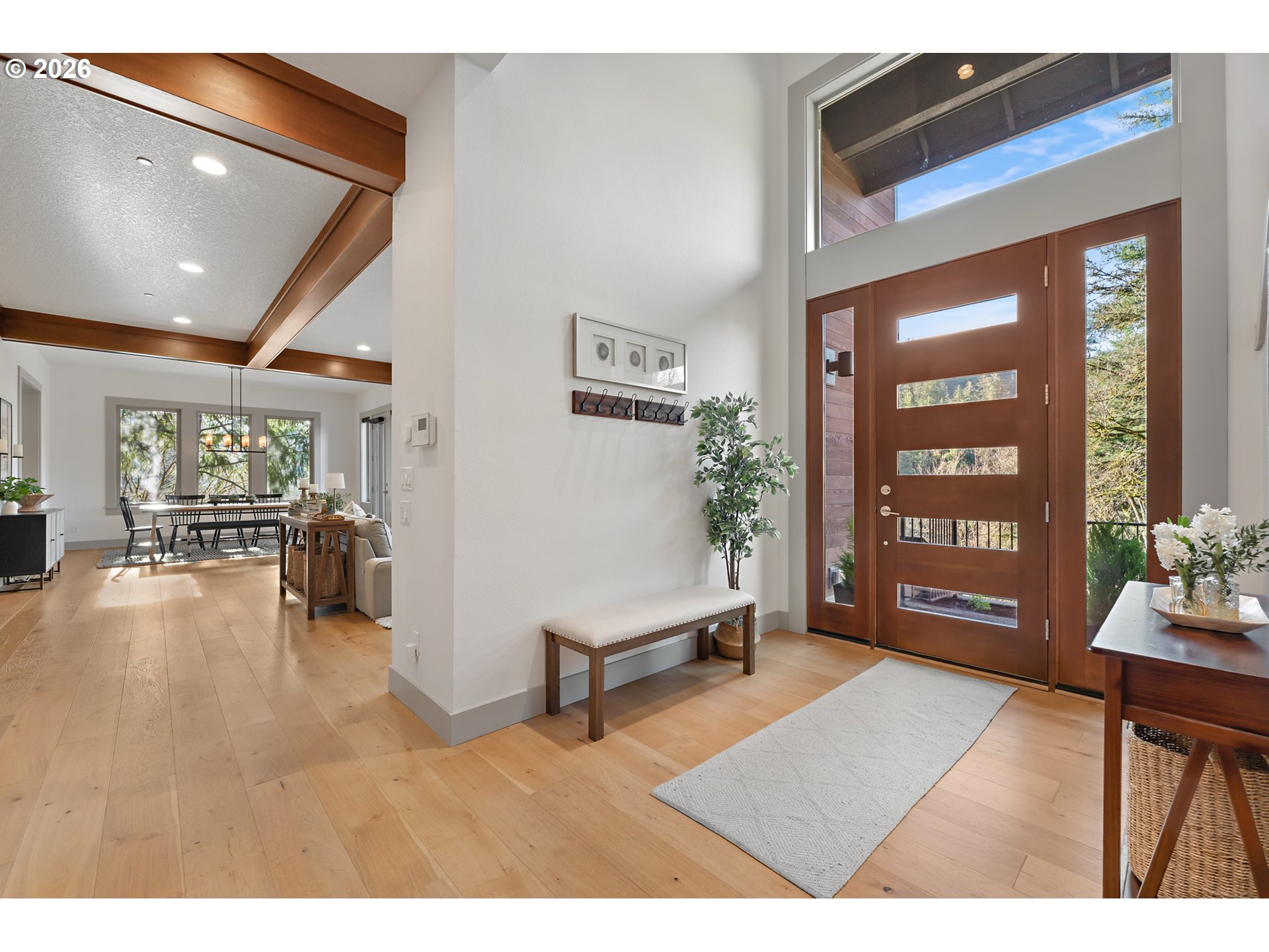 Situated in a picturesque neighborhood, this contemporary craftsman home is for all seasons and provides the perfect backdrop for creating wonderful memories.Stepping in you will immediately notice the soaring ceilings, clean architecture, thoughtfully designed spaces, luxurious materials, and impeccable finish work throughout. The heart of the home is the gourmet kitchen with walk-in pantry, anchored by a large island perfect for gathering with family and friends while being interconnected seamlessly to the living and dining room - ideal for entertaining! The open concept living spaces are bathed in natural light and anchored by expansive glass to blur the lines between indoors and out all while maintaining exceptional privacy. The upstairs primary suite offers a spa-like retreat. Wake up to soft natural light facing picturesque territorial views and then step into ensuite with soaking tub, oversized shower, walk-in closet, dual vanities, and total tranquility! Completing the upper level are three additional spacious bedrooms, dual access bathroom, utility room, and wide expansive landing/hallway. Every detail of the backyard has been planned with care from the landscaping, terraced planting areas, covered patio for outdoor living year-round, and a flat grass area for play and parties. Located just minutes from top-rated schools, scenic trails, local retail boutiques, and restaurants on Willamette Dr. road this home delivers exceptional and highly sought after contemporary West Linn living!