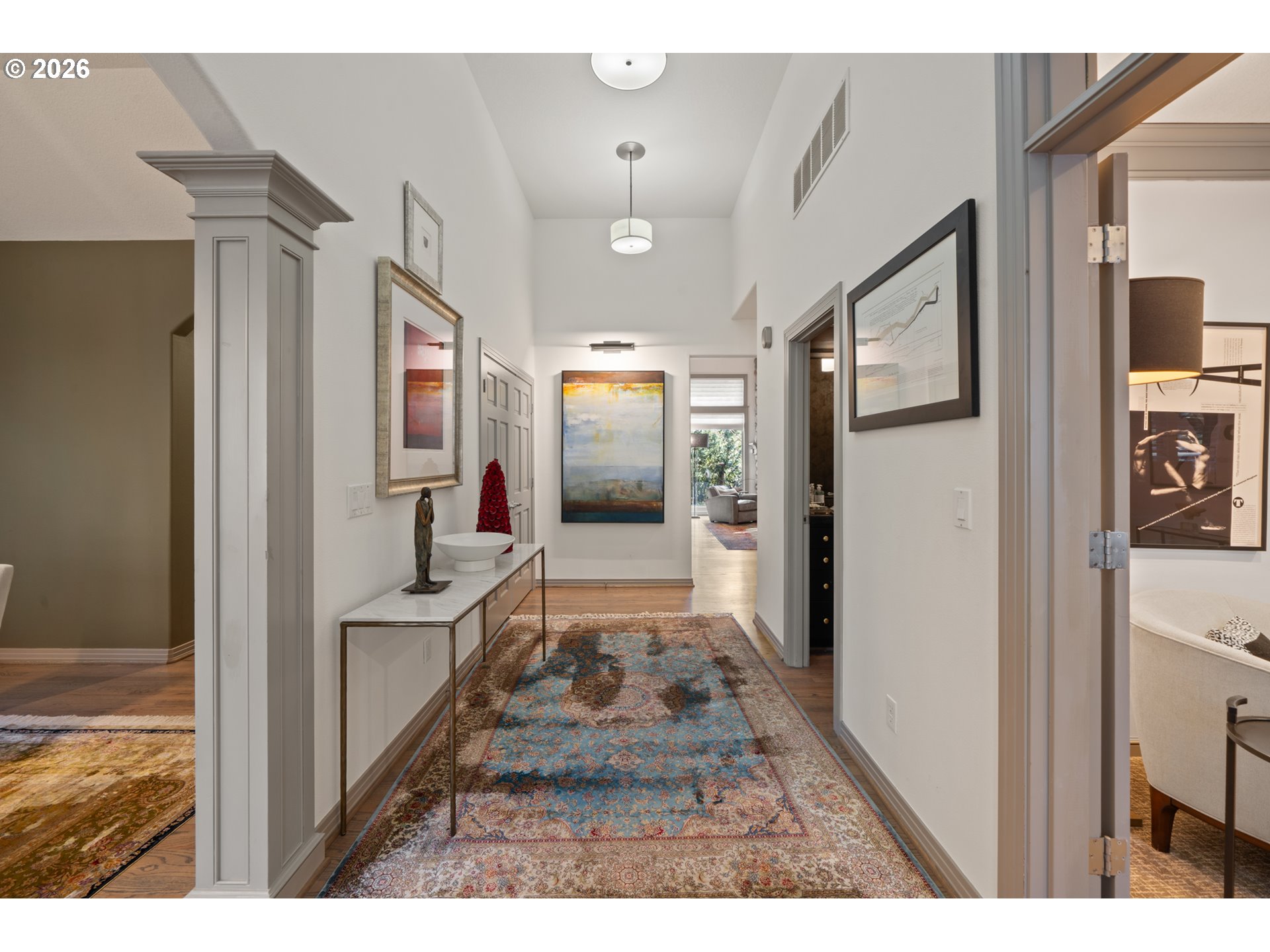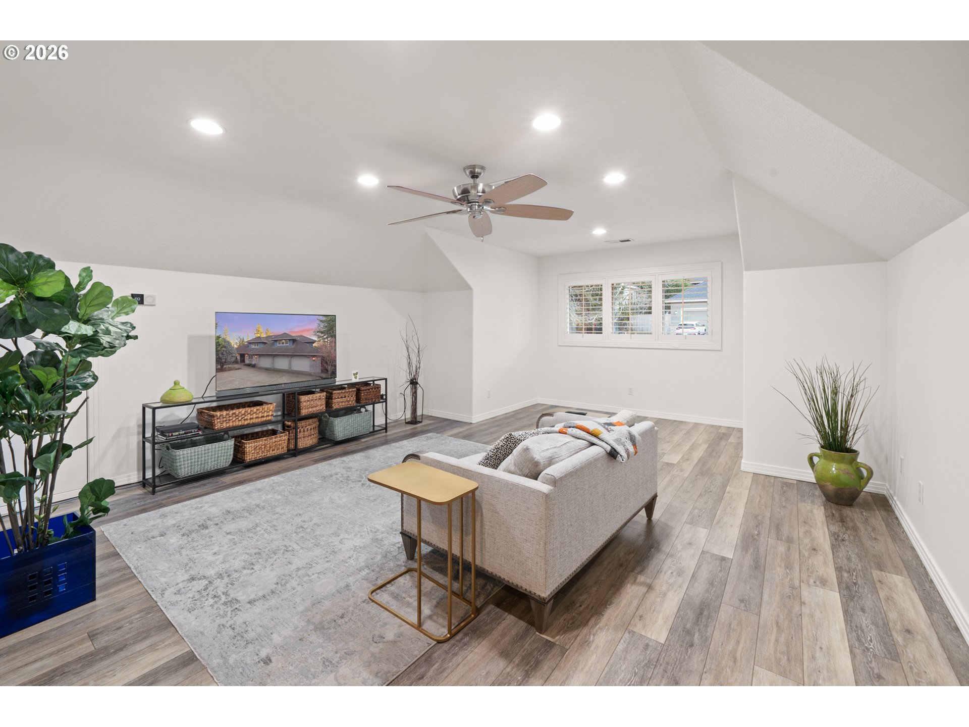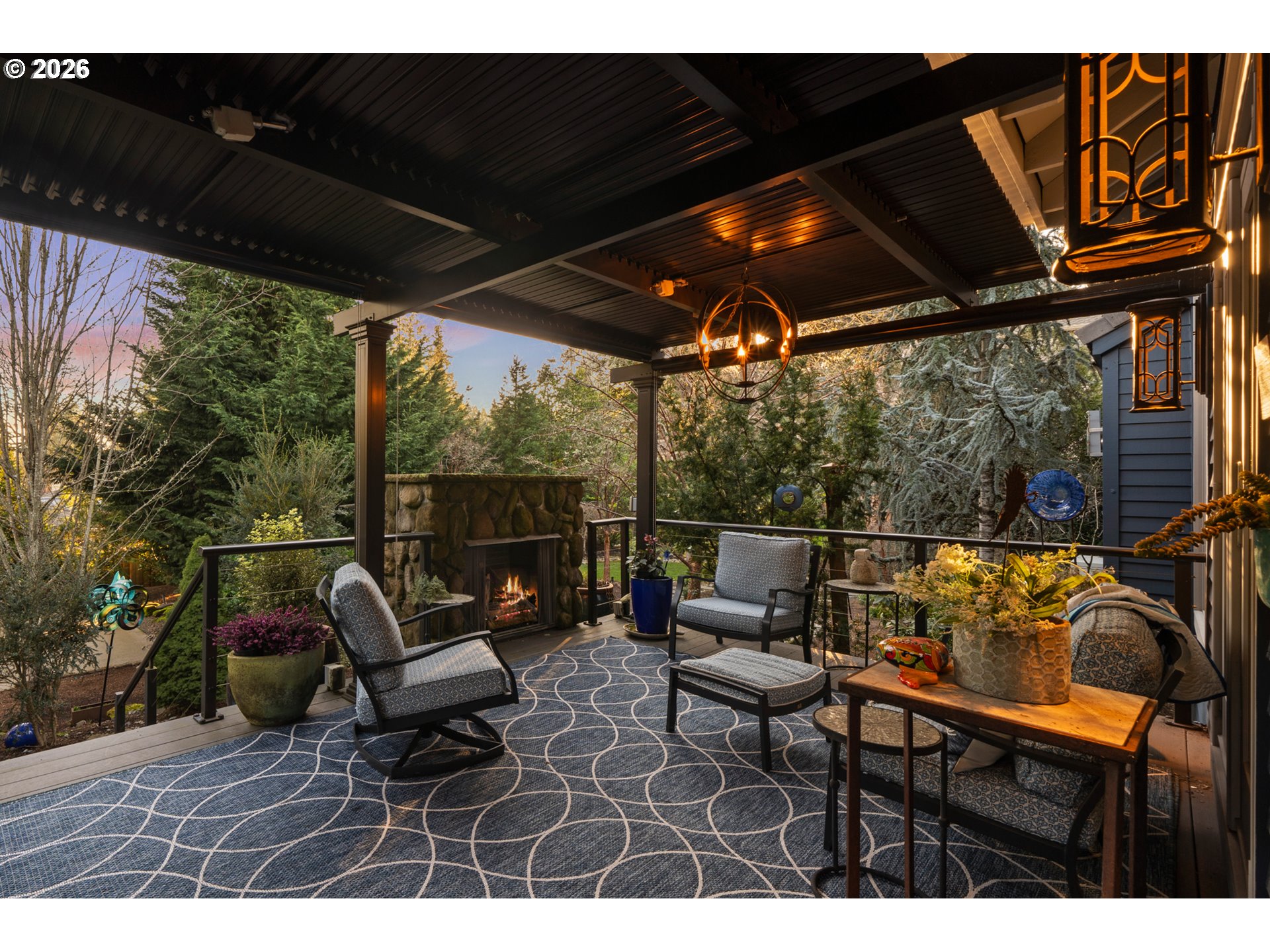Privately situated in Forest Highlands, this Lake Oswego retreat features a spacious and open floor plan ideal for both sophisticated entertaining and easy living. The gourmet chef's kitchen serves as the heart of the home, boasting quartz countertops, a double built-in fridge, dual Fisher & Paykel dishwashers, and an oversized island with Wolf appliances. On the main floor, enjoy a private primary suite with a soaking tub and walk-in shower, an executive office with built-in workspaces, and ample storage. Upstairs, retreat to the vaulted bonus room or three additional bedrooms. French doors lead to a resort-like outdoor experience featuring a covered deck with a stone gas fireplace, a gazebo, and an expansive sport court surface that doubles as RV parking. Modern essentials include a 3-car garage with an EV charger, a whole-home generator, an air purifier, and a tankless water heater. With its rare blend of high-tech efficiency and resort-style amenities, this home offers a private sanctuary that is as ready for grand entertaining as it is for a quiet evening by the outdoor fire.