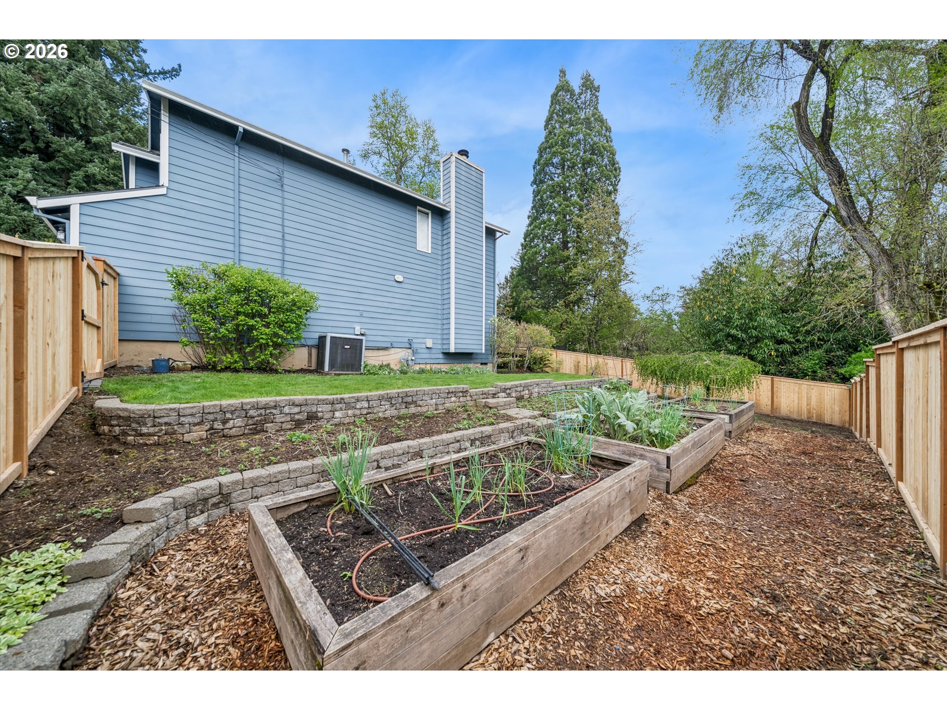 Deck, Fenced, Garden, Patio, RaisedBeds, Sprinkler, ToolShed, Yard
