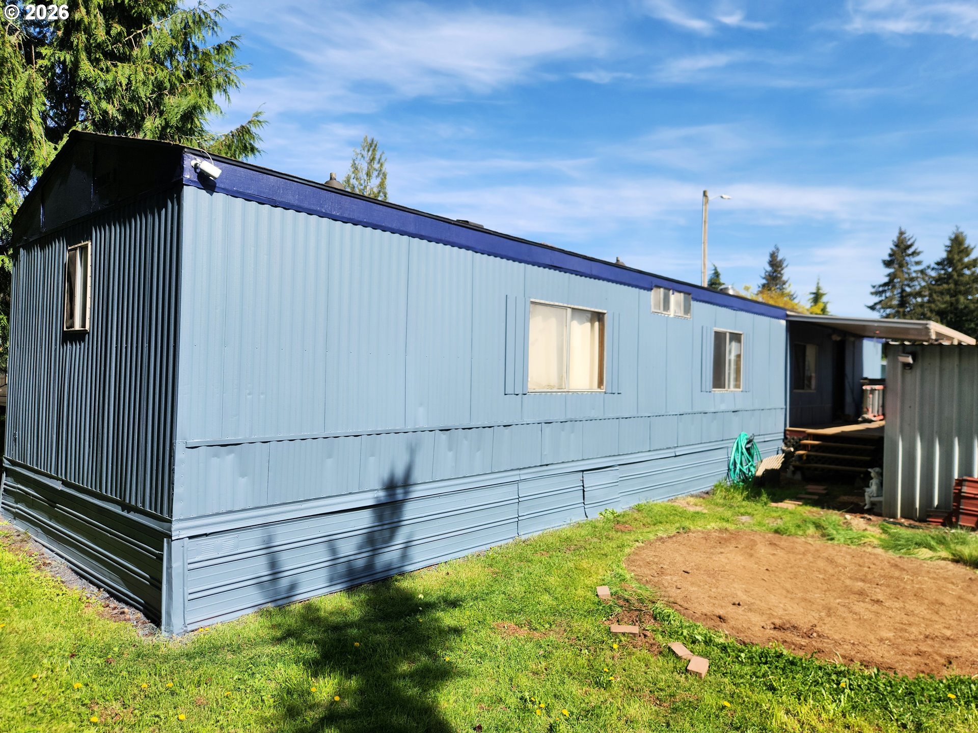 Solid 2-bed, 2-bath mobile home in a nice all-ages park in Oregon City. Quick access to shopping areas and Clackamas Community College. Located in the back side of the park, along the treeline. Shady most of the day! Fenced yard, pets OK. Carport and storage shed. Decking on south side. Sellers have replaced roofing, flooring, appliances and updated both showers. Washer and dryer included in sale. Home still needs some updates but is move-in ready, with fresh paint inside and out. Round spot in yard is from above-ground pool that was recently removed. Park rent is $950/m. Amenities include community outdoor pool, playground, clubhouse, and an event space with kitchen. NO PROPERTY TAX! Sellers need 1 hour notice to remove dogs for showings, please use Aligned Showings to schedule.