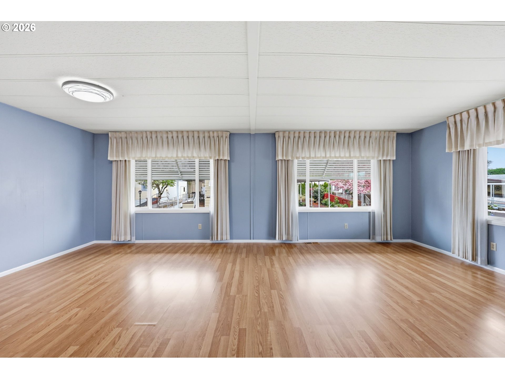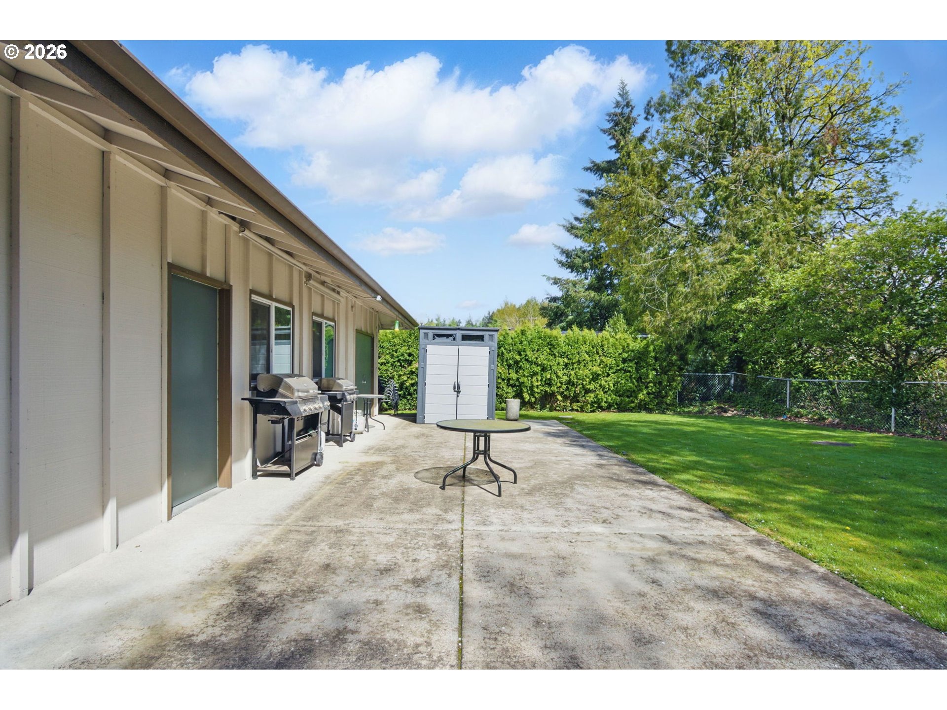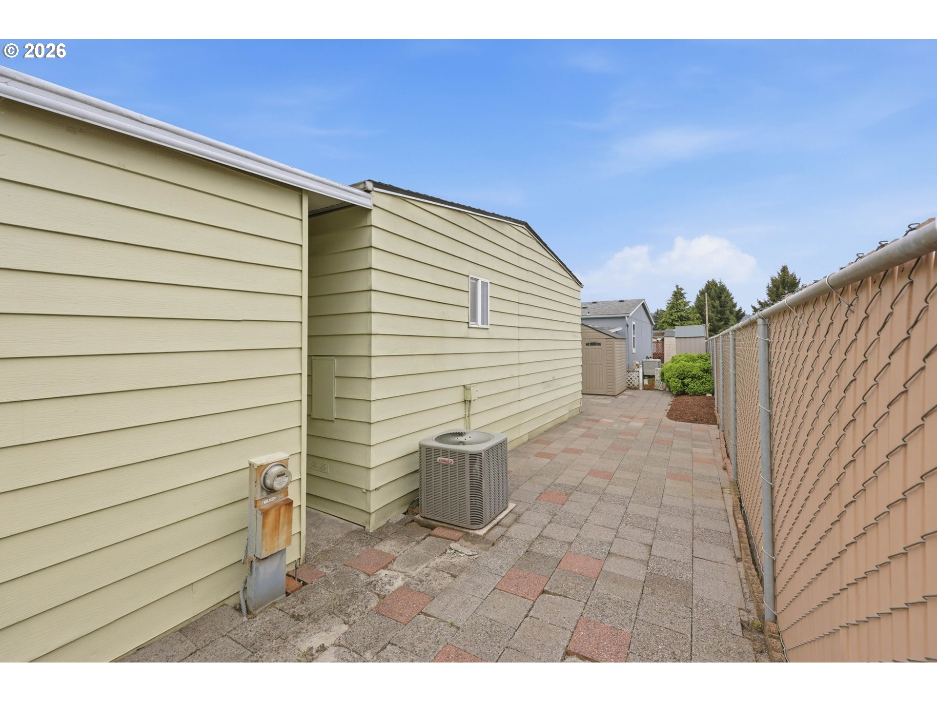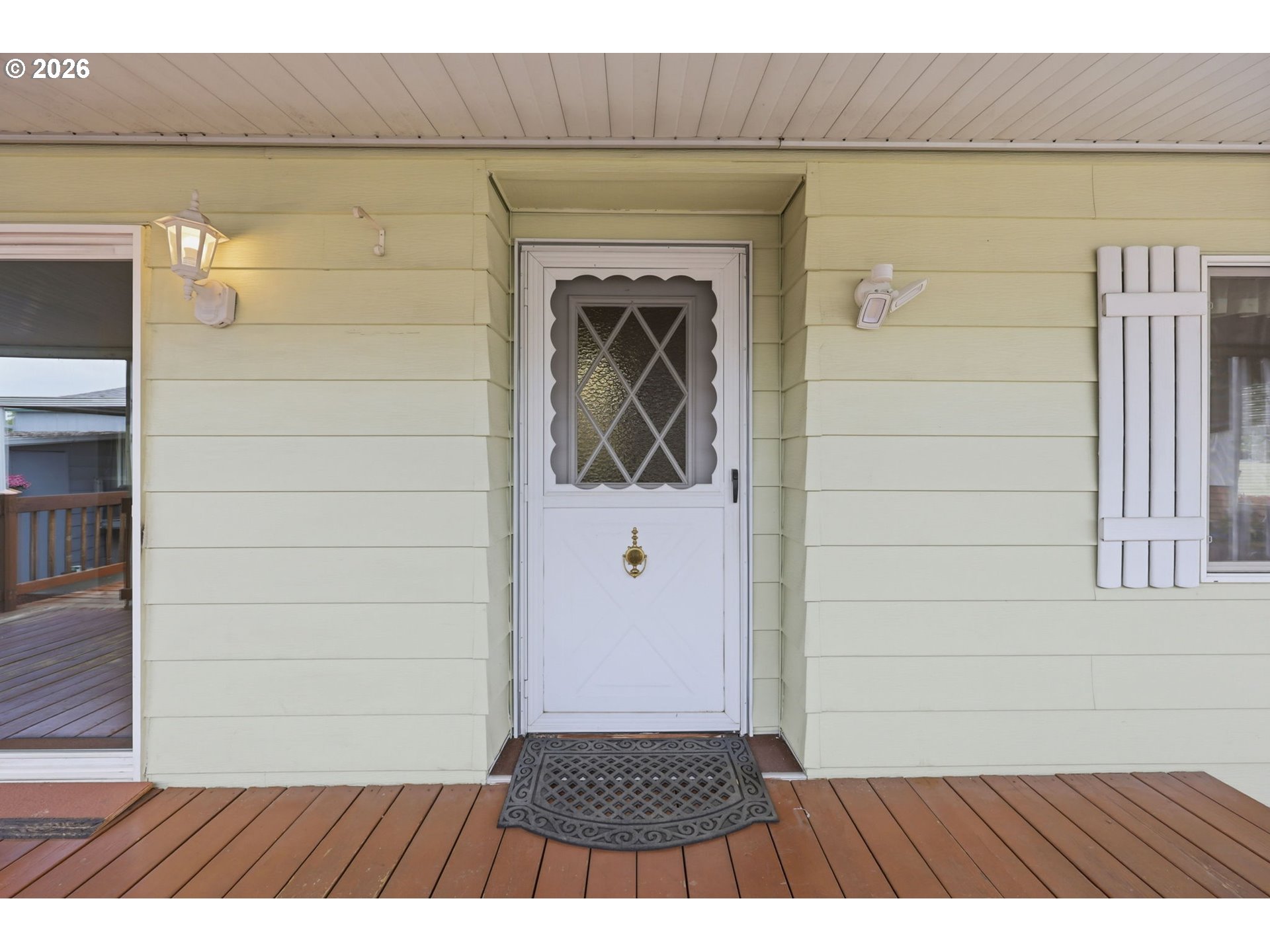 Clean, Bright and Very Spacious home in a quiet 55+ Happy Valley community offering comfortable, one-level living with a functional layout updated with composite flooring that includes two bedrooms, two full baths, and a flexible office space. The kitchen was updated with IKEA cabinetry and counters, along with a double oven, electric cooktop, and refrigerator with bottom freezer, ice maker, and filtered water. Additional features include a sink water filter with instant hot water and a garbage disposal. The primary bath features a Jacuzzi low profile walk-in shower installed in April 2023. Major system updates include vinyl windows, a 30-year composition roof, a handicap-accessible ramp was added in 2024. Outdoor spaces include a covered deck, patio, a 7x7 Rubbermaid resin storage building, and additional locked storage in the carport area. Located in the heart of Happy Valley with convenient access to shopping, dining, and services, this home offers a practical, low-maintenance lifestyle in a well-established community.
