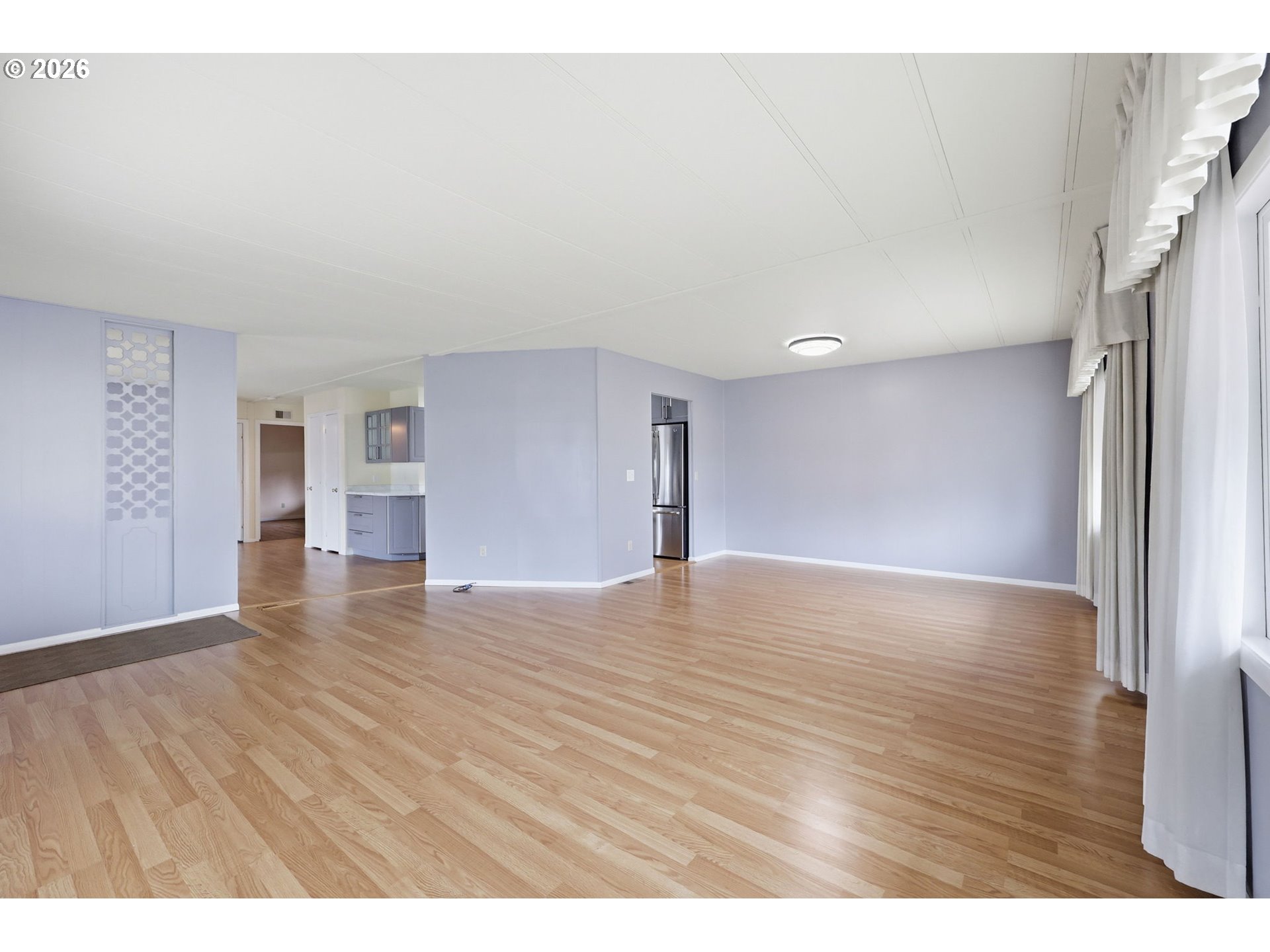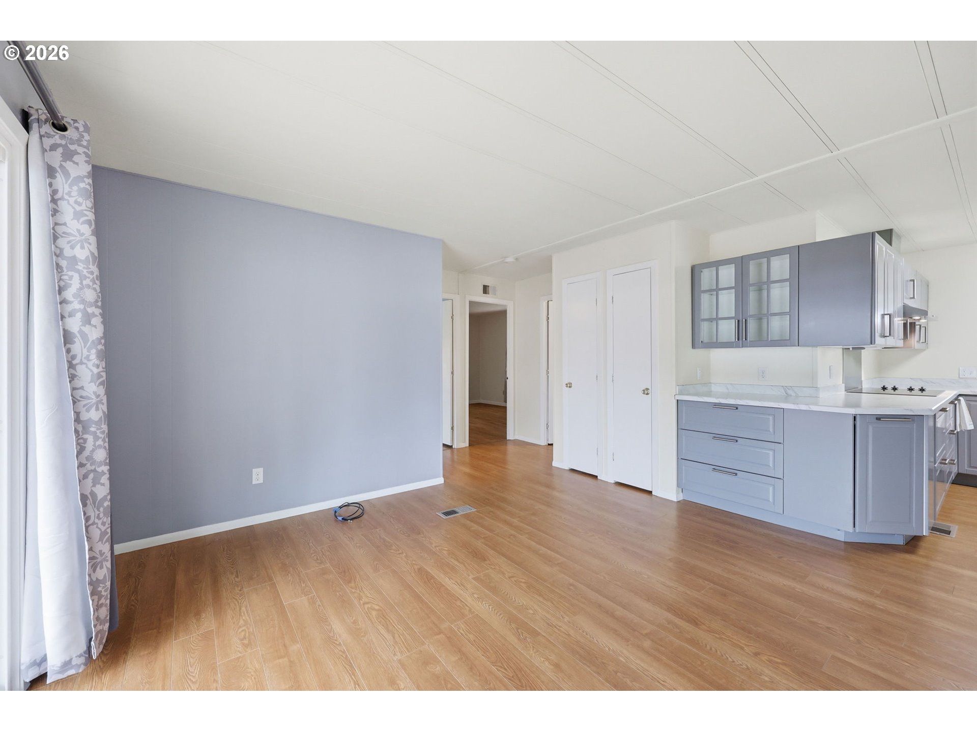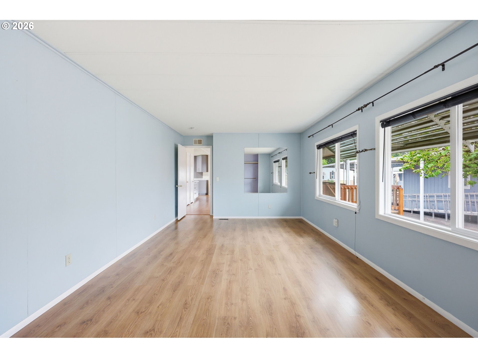 Clean, Bright and Very Spacious home in a quiet 55+ Happy Valley community offering comfortable, one-level living with a functional layout updated with composite flooring that includes two bedrooms, two full baths, and a flexible office space. The kitchen was updated with IKEA cabinetry and counters, along with a double oven, electric cooktop, and refrigerator with bottom freezer, ice maker, and filtered water. Additional features include a sink water filter with instant hot water and a garbage disposal. The primary bath features a Jacuzzi low profile walk-in shower installed in April 2023. Major system updates include vinyl windows, a 30-year composition roof, a handicap-accessible ramp was added in 2024. Outdoor spaces include a covered deck, patio, a 7x7 Rubbermaid resin storage building, and additional locked storage in the carport area. Located in the heart of Happy Valley with convenient access to shopping, dining, and services, this home offers a practical, low-maintenance lifestyle in a well-established community.