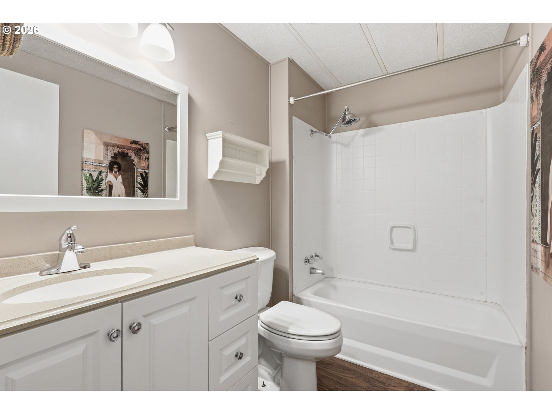 This rare three-bedroom home offers a comfortable and practical layout with two full bathrooms. The stylish interior is bright and clean, featuring an open living space, updated flooring, and updated windows that enhance natural light throughout.The recently renovated kitchen includes sleek cabinetry, breakfast bar, and a functional dining area complete with charming built-ins—perfect for both everyday living and entertaining. An updated primary bathroom adds a modern touch and extra comfort.For added convenience, the home features a covered carport, an exterior storage shed, and a convenient laundry room located just off the kitchen. Step outside to enjoy the beautifully landscaped, rare fenced yard with dedicated garden space, along with a beautiful covered porch overlooking the yard—ideal for relaxing or hosting guests.Located in a 55-plus community with well-kept grounds, green space, a seasonal pool, and a shared community center. Easy access to Hwy 212, shopping, and nearby services makes this a solid option for anyone seeking low-maintenance living in a quiet, accessible setting.