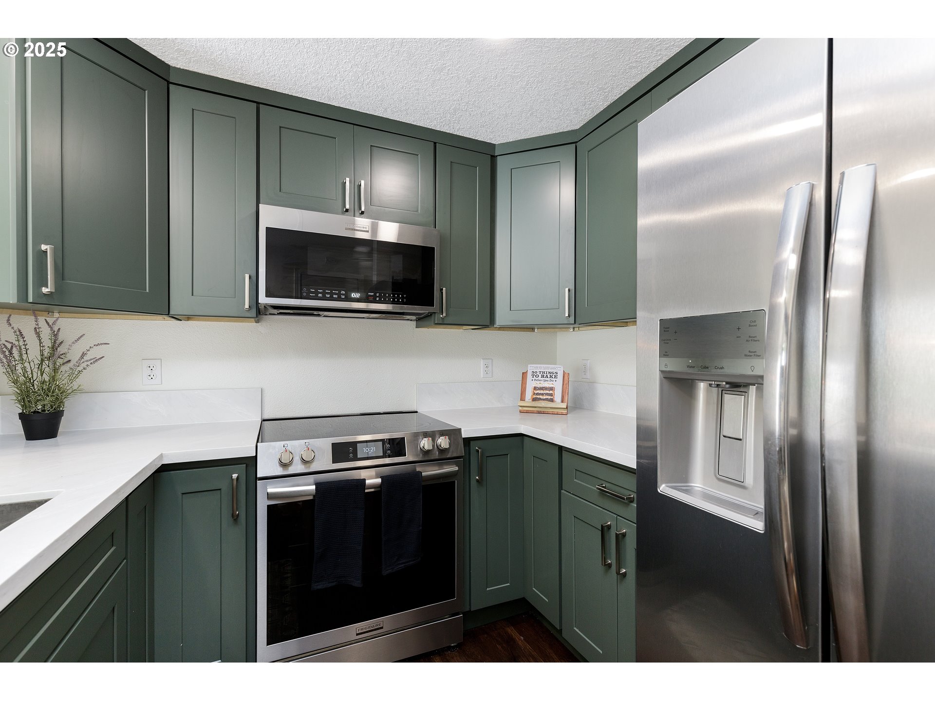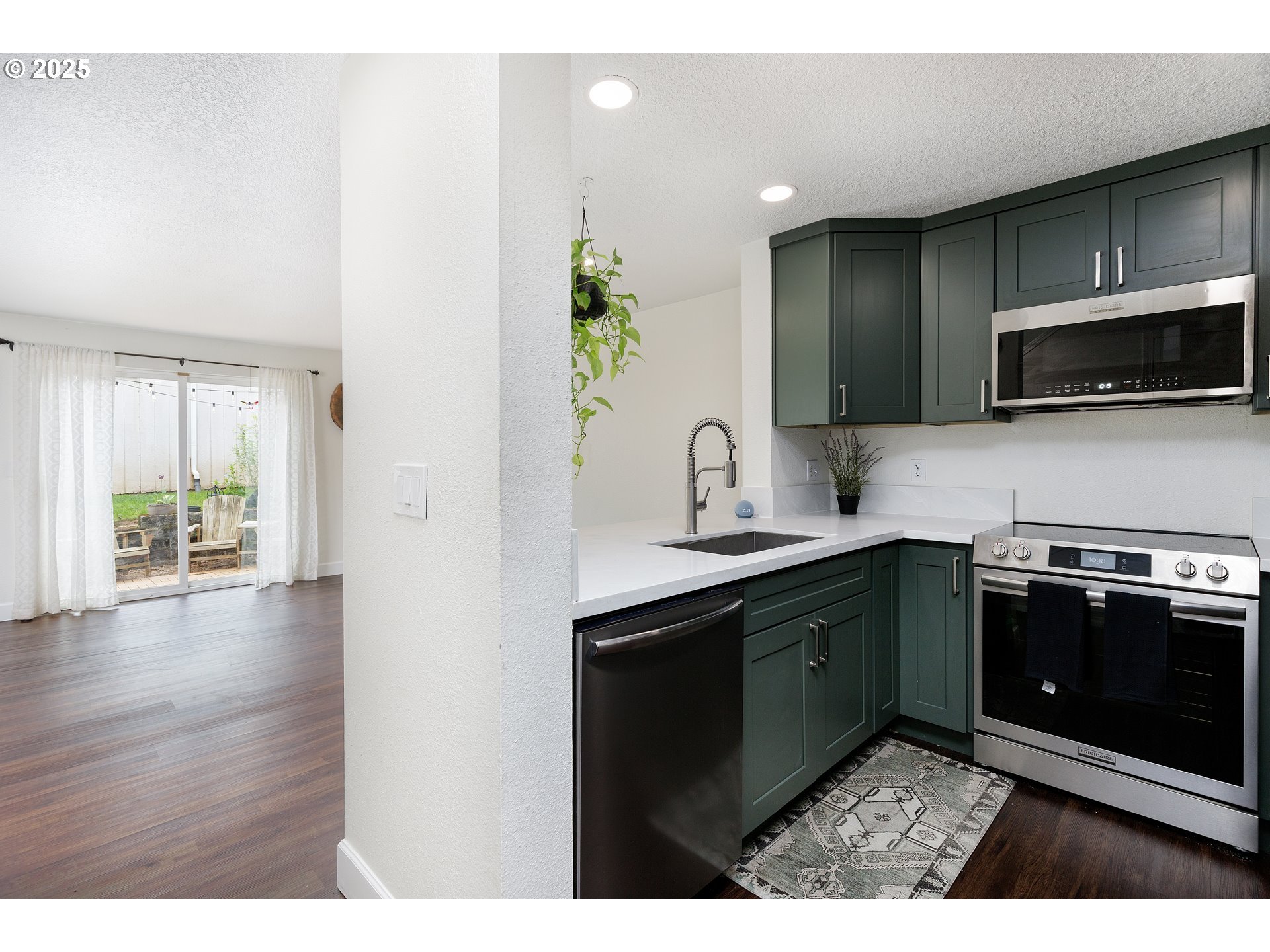 Discover comfort and convenience in this beautifully updated end-unit townhome-style condo in the highly desirable Hillendale neighborhood. Featuring two private suites, 2.5 bathrooms, and a light-filled open-concept layout, this home is thoughtfully designed for modern living. The fully remodeled kitchen shines with brand-new stainless steel appliances, sleek granite countertops with an eat-at bar, contemporary cabinetry, and a large undermount stainless steel sink with a spray faucet. New luxury vinyl plank flooring extends throughout the entire main level, offering both durability and style. The refreshed half bath includes a new vanity and toilet, and new dimmable lighting throughout the home creates a warm, inviting ambiance. Step outside to your private back patio with newly installed composite deck tiles—perfect for relaxing or entertaining. A one-car attached garage provides added convenience and extra storage.Ideally located alongside Newell Creek Canyon Park and just minutes from historic downtown Oregon City, you’ll enjoy easy access to scenic hiking trails, local shops, dining, and everyday amenities.