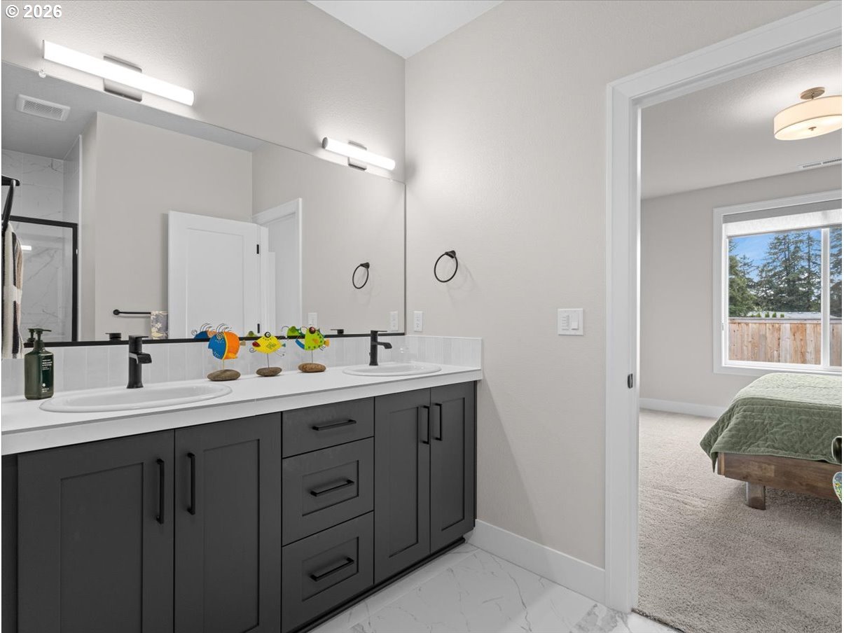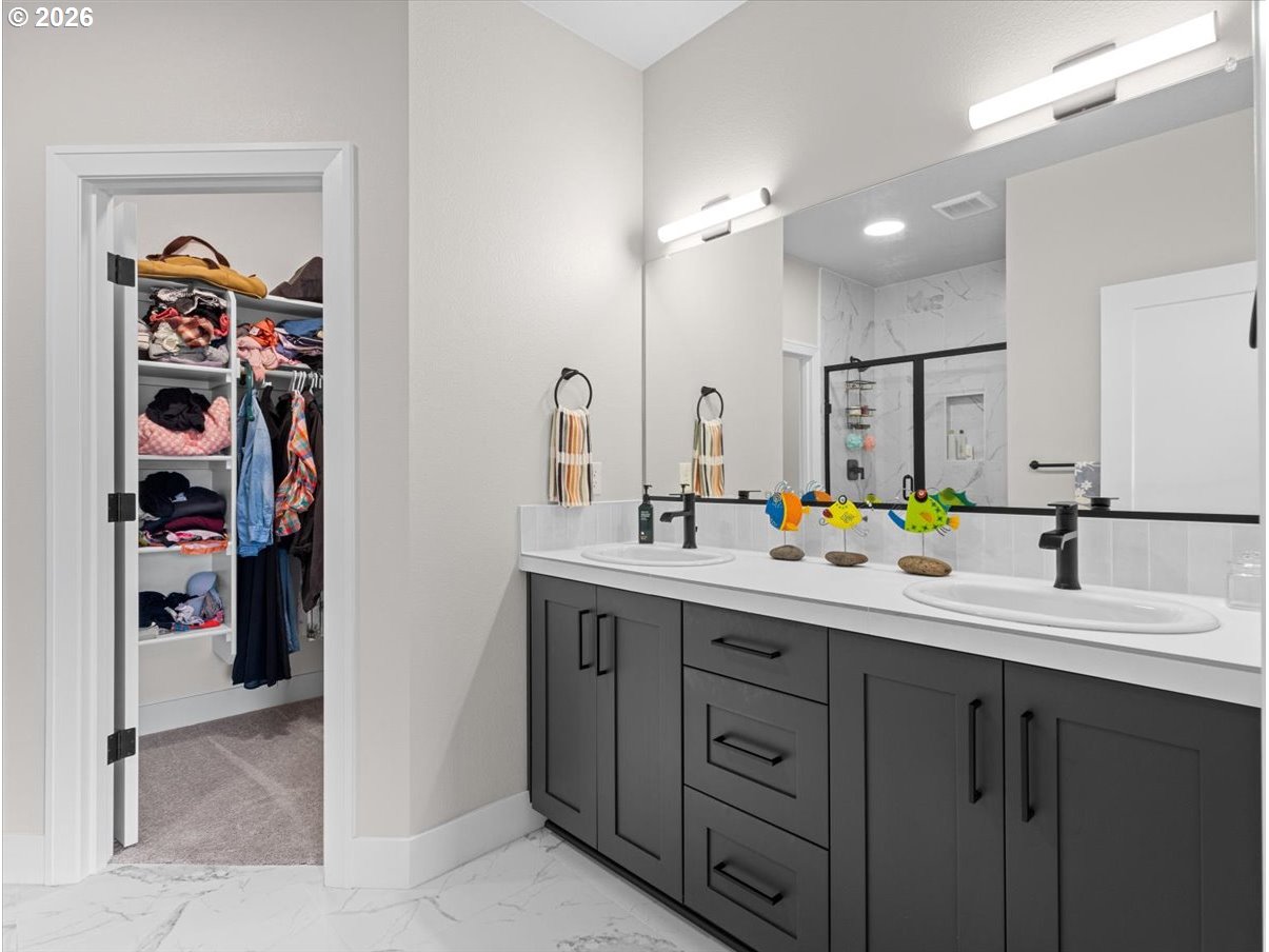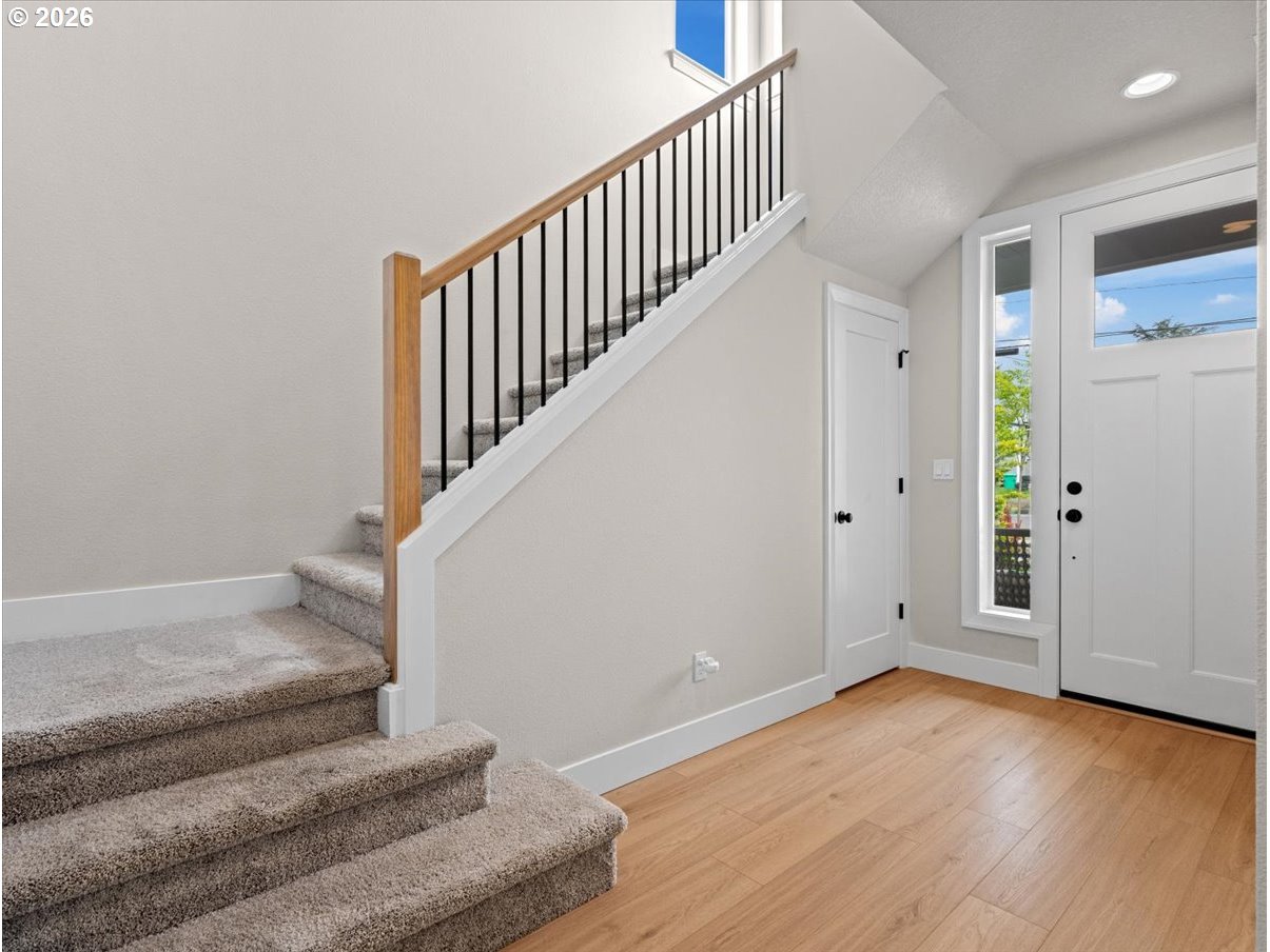 Primary suite on the main, a 2-car garage, and room to breathe — rare finds in new construction, all in one. Built in 2024 and barely lived in, this thoughtfully designed home at Reese Place sits in the heart of Oak Grove and offers what's genuinely hard to come by — space, light, and high-end finishes throughout. The open great room flows into a stunning kitchen with bar seating, pantry & stainless steel appliances, making it a natural gathering spot. The main floor primary suite features a walk-in closet and private bath, while two additional spacious bedroom suites upstairs give everyone room to settle in. Cozy fireplace, low-maintenance exterior & attached 2-car garage complete the picture. Oak Grove Elem | Alder Creek Middle | Putnam High.Wake up to sunrises over the Willamette and wind down with evening sunsets. Trolley Trail is 2 blocks away — bike to Milwaukie's downtown and farmers market in 20 minutes. Willamette River Park ½ mile, Elk Rock ¾ mile, Lotus Café 4 blocks, and Portland just minutes away.Bigger, brighter, and more thoughtfully built than most — we think you'll feel the difference the moment you walk in.