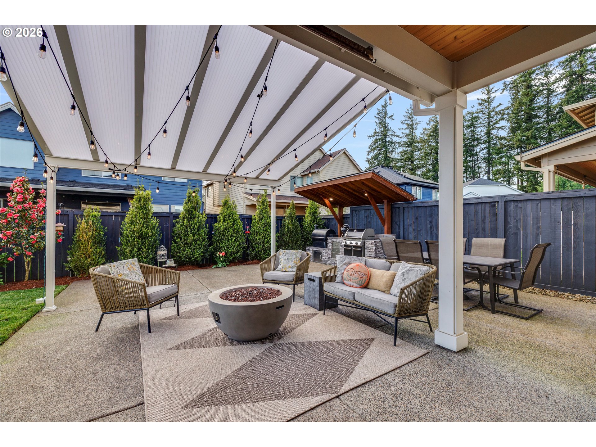 Welcome to this exceptional Icon-built home, where thoughtful design meets elevated living. With flexible space offering 5 bedrooms plus an office—or 4 bedrooms, a bonus room, and an office—this residence adapts beautifully to a variety of lifestyles. Better than new construction, this home is filled with high-end finishes and standout upgrades throughout. The stunning kitchen serves as the heart of the home, featuring a large island, expansive walk-in pantry, and elegant details that make both everyday living and entertaining effortless. The spacious primary suite is a true retreat, complete with a spa-inspired bathroom reminiscent of a luxury hotel and a generous walk-in closet. Secondary bedrooms are impressively sized, and the upstairs laundry room offers abundant cabinetry for convenience and organization. Step outside to enjoy a level lot with an extended patio and fully equipped outdoor kitchen—perfect for gathering, dining, and relaxing year-round. A rare 4-car garage provides incredible storage and flexibility. Located in the desirable Hidden Falls neighborhood of Happy Valley/Clackamas, this home offers access to a unique natural setting, including a nearby waterfall just down the street. Enjoy close proximity to the shopping, dining, and amenities along Sunnyside Road, along with highly regarded North Clackamas schools. The next chapter of your life begins here!