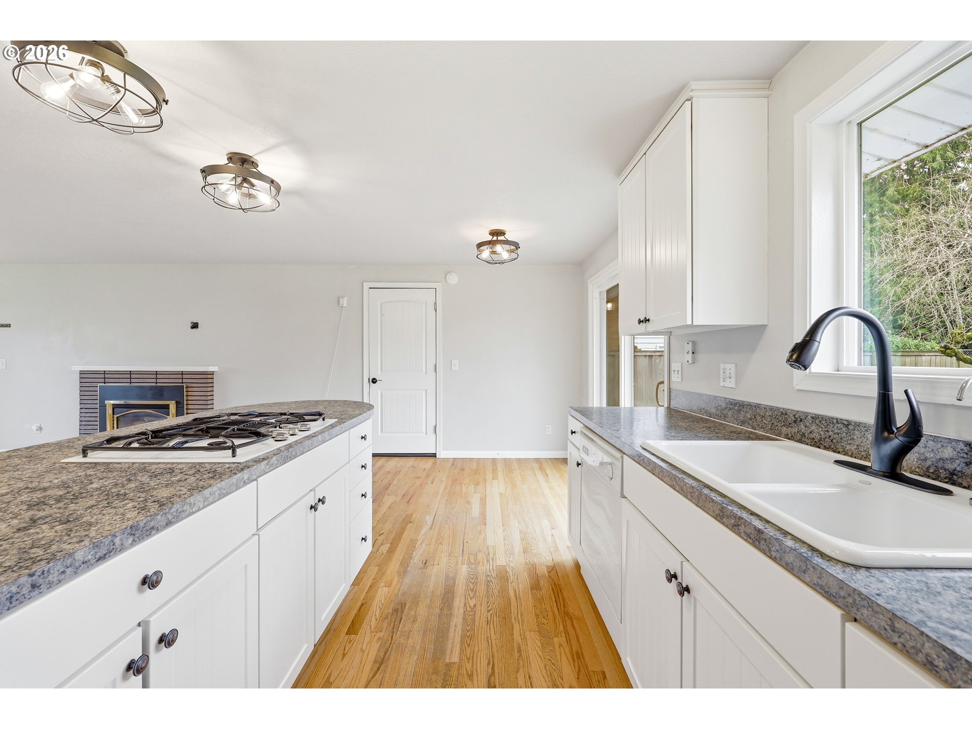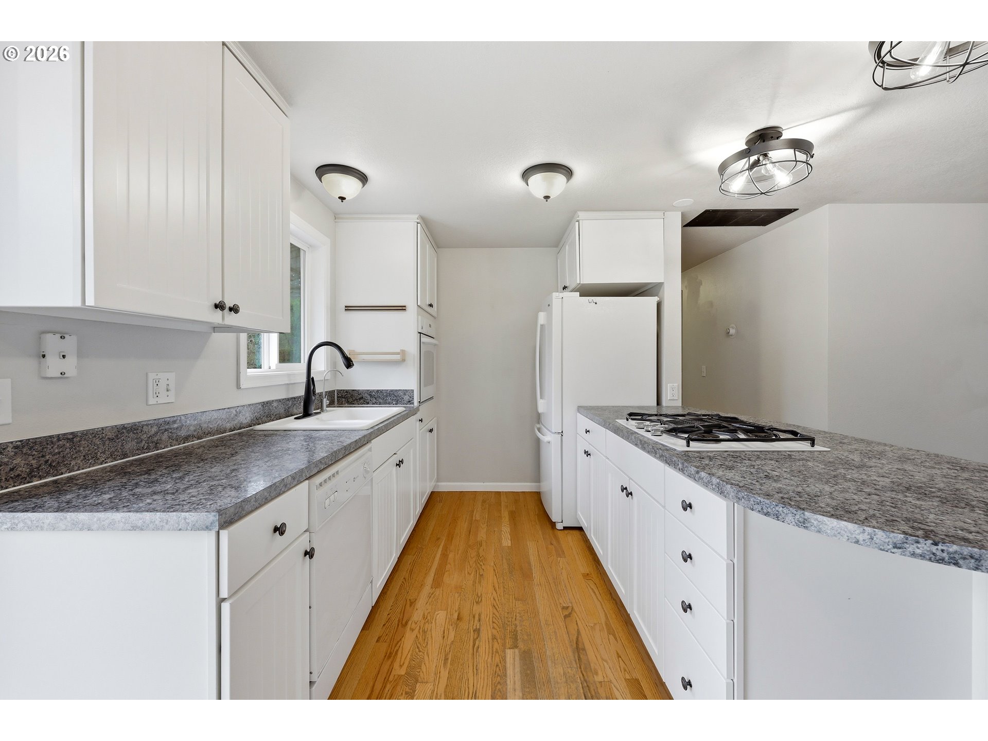 Here is the house that nature embraces! With the backyard abutting a protected green belt, the iconic oak trees of Oak Grove in the front yard, while all on a quiet street, the natural world comes alive. Bring your binoculars for the birds! This is single level living at it's finest, with an updated open concept kitchen to living room, two full bathrooms, three bedrooms, and ample garage space. Natural light fills the rooms in this 1964 ranch. With over a 1/4 acre you also have space for RV or boat parking. In the large backyard, you have an apple, fig and crabapple tree, and enough room for garden beds, or ADU possibilities. Some systems features like a newer water heater, and a well maintained furnace from 2016 gives you a peace of mind. Mere blocks away from the Willamette River, the Trolly trail, and close to downtown Milwaukie and the Max, the location can't be beat. Come see for your self! (Buyer to do their own due diligence regarding ADU accessibility).