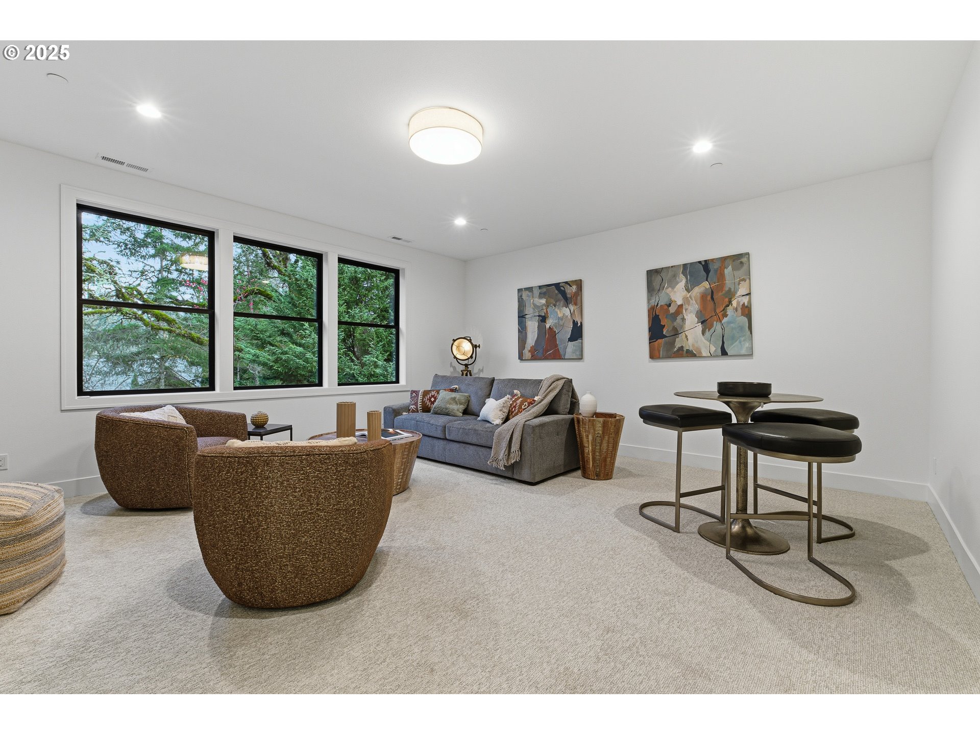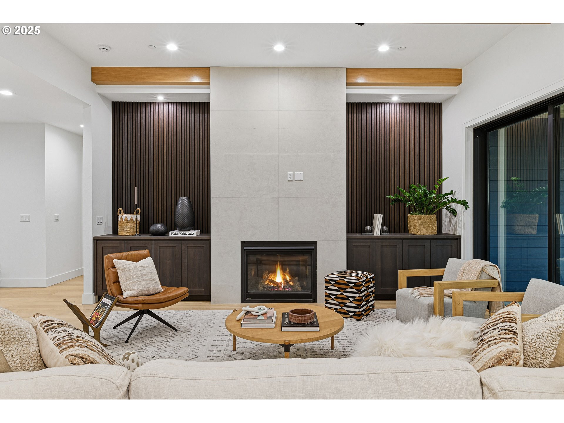 Exceptional Design Meets Prime Location – New BP Homes luxury home in Forest Highlands. This stunning NW Contemporary home blends a moody, modern palette with elevated craftsmanship in one of Lake Oswego’s most coveted neighborhoods. Featuring 5 bedrooms, 4.1 baths—including two ensuite bedrooms—and expansive vaulted spaces throughout, this home offers luxury at every turn. The great room impresses with 10.5–11’ ceilings, exposed beams, slat wall accents, custom cabinetry, and a striking slab porcelain fireplace. The chef’s kitchen includes a pot filler, farmhouse sink, chilled water purifier, Monogram appliance package with 48” dual-fuel range and refrigerator, and a spacious scullery (back kitchen) plus walk-in pantry with barn door access. The main-level primary suite boasts engineered hardwood, a spa-style bath with heated floors, walk-in shower with 3-piece spray, heated towel bar, taupe soaking tub, lighted mirrors, and full-height tile finishes. Additional highlights include an upstairs laundry with tile bench, multi-panel slider to covered back deck, metal/composition roof with rich hickory-stained cedar accents, and oversized 3-car tandem garage. Minutes to downtown Lake Oswego, the Country Club, and top-rated Lake Oswego schools.