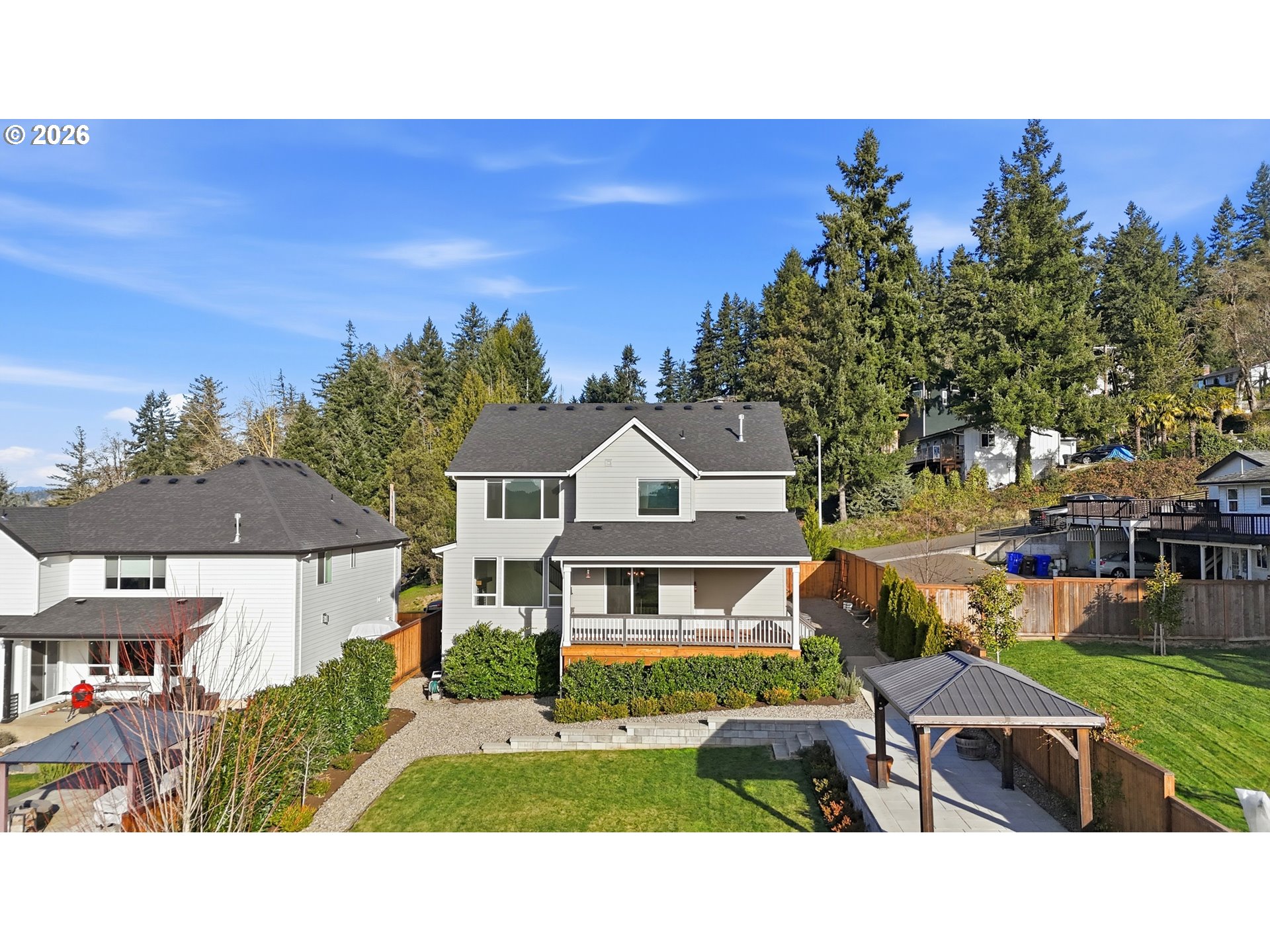 Newer construction with jaw-dropping views doesn't typically go together. This like-new 4 bedroom + den stunner is the exception! Originally built by ICON Construction in 2019, this home has it all. The main floor's expansive open concept floorplan is perfect for entertaining and enjoying spectacular sunsets from nearly every angle. Escape to the main floor den with french doors to get some work done before you head upstairs to wind down for the night in your primary suite with vaulted ceilings and continued show-stopping views. The upstairs has 3 more bedrooms to offer, along with a laundry room equipped with a sink. The garage is extra deep with room for all your things, and the upgraded backyard is ready for relaxation with the custom stone patio and gazebo. The yard comes to life in the Spring when everything is blossoming, and your mind will be at ease with irrigation in both the front and back yards. If you're looking for a move in ready home with charm and pizzazz inside and out, this is it!