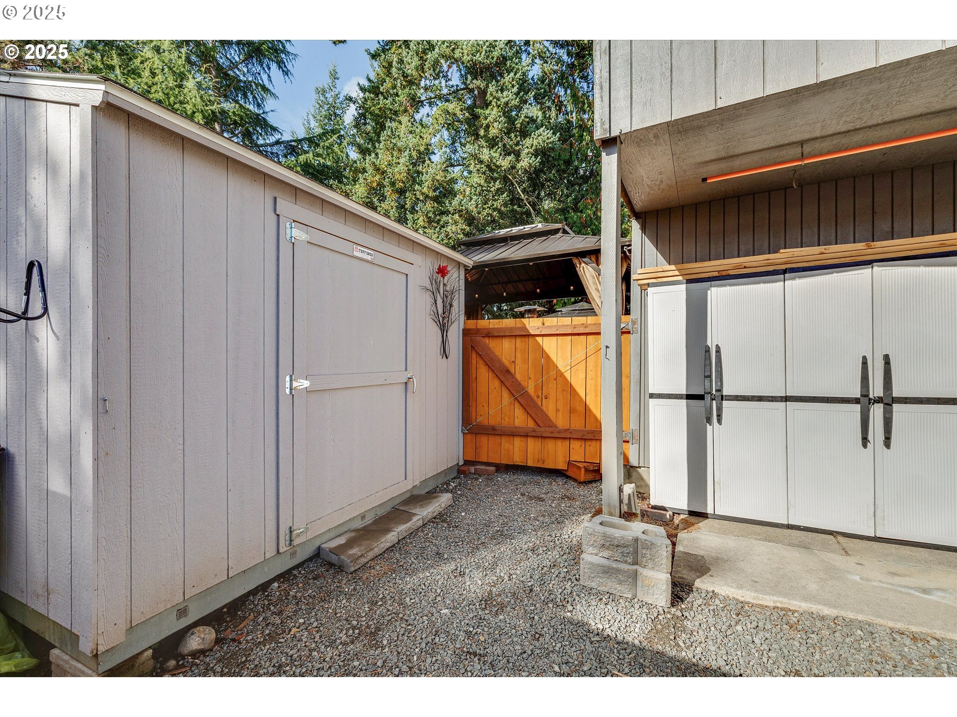 This inviting 1976 split-level home blends classic design with extensive 2023 updates, offering 4 bedrooms, 3 bathrooms, and a flexible layout ideal for multi-generational living. Conveniently located near I-205, HWY 99E, the Clackamas River, parks, pickleball, schools, shopping, pubs, and coffee—all within about a mile.Inside, the main level features an open living room with a gas fireplace, new luxury vinyl plank flooring, and fresh paint throughout. The updated kitchen includes quartz counters, ample cabinetry, stainless steel appliances, and a breakfast bar. The expansive primary suite offers a ceiling fan, walk-in closet, renovated bath with dual sinks, quartz counters, a walk-in shower, and a sitting area with direct access to the upper deck. Two additional bedrooms — including one with direct access to the back deck — along with a full guest bath complete the main level.The lower level adds excellent versatility with a family room featuring a second gas fireplace, a fourth bedroom, and a combined laundry room/full bath with a walk-in shower—an ideal setup for a potential ADU or mother-in-law suite.Outside, the oversized lot includes two new decks, a year-round gazebo, two tool sheds, and an expansive new driveway with RV parking. Additional updates include new windows and sliders, whole-home repiping, new stairs, updated upstairs bathrooms, newer carpet and a refreshed front porch. Home also comes with a transferable home warranty through mid-May 2026. This beautifully improved property offers comfort, flexibility, and modern living in a prime location.