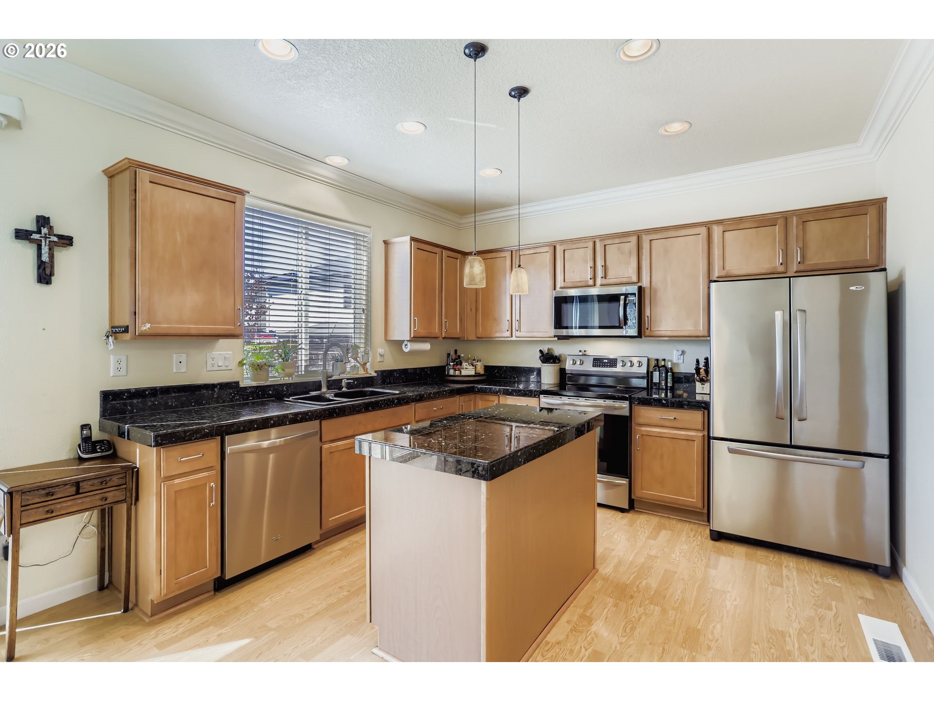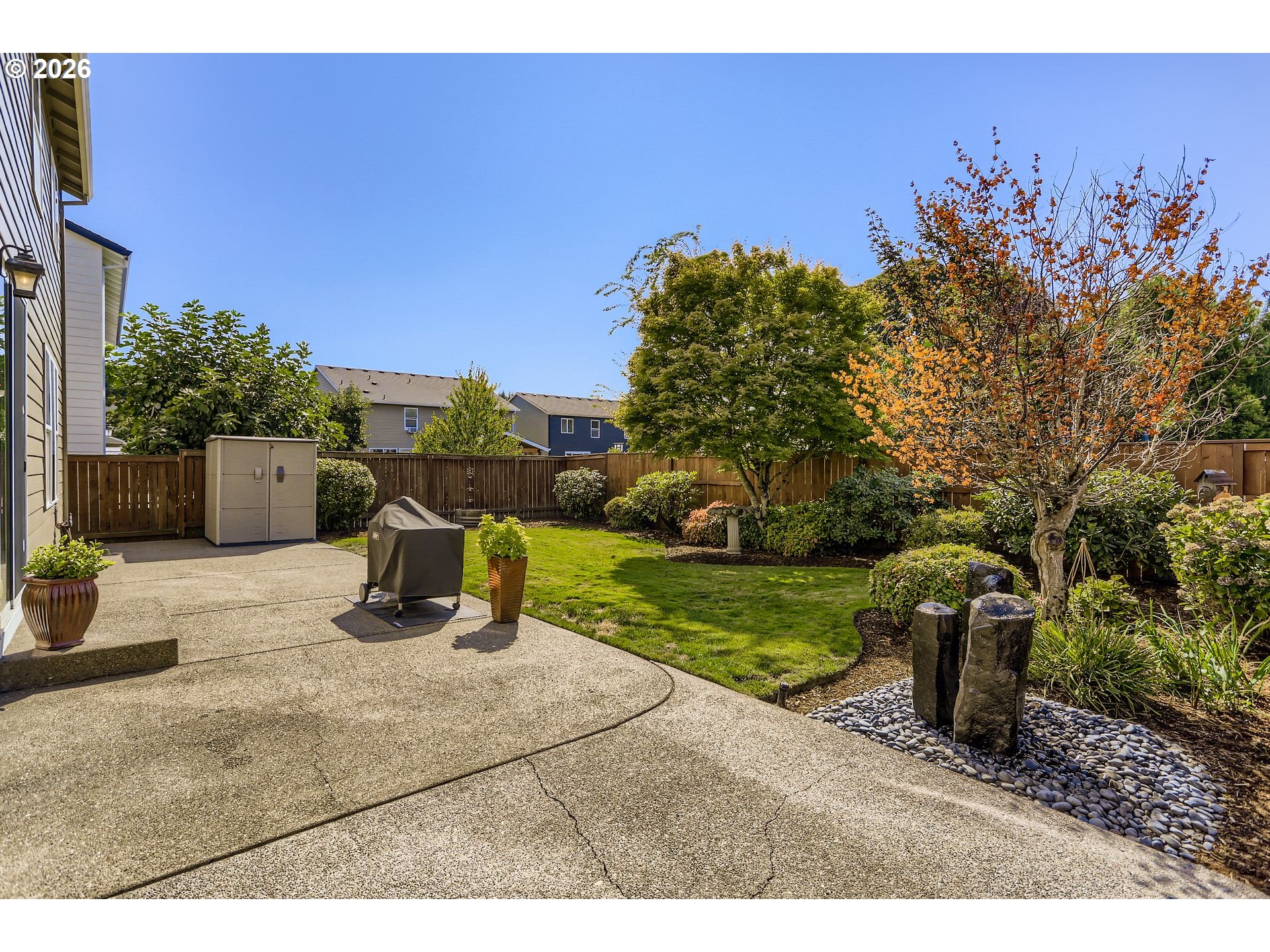Well maintained dream home in one of Milwaukie’s most sought-after neighborhoods! Tucked away on a quiet street, this traditional 2004 gem offers a perfect blend of comfort, functionality, and style. 4 generous bedrooms, including a luxurious primary suite, plus a versatile bonus room, there's room for everyone and everything. Whether you need a home office, media room, or extra guest space, this home has you covered. The layout features 2.1 bathrooms, a formal living room (or office), a formal dining room, and a large great room pre-wired for surround sound—perfect for movie nights or entertaining guests. Heart of the home is the gourmet island kitchen, complete with a cozy eating nook, pantry, a slider that opens to the garden and back patio—ideal for indoor-outdoor living. You'll love the newer range and ample counter space for cooking and gathering. The gas fireplace adds a warm, inviting touch to the living space, while crown molding and thoughtful finishes elevate the overall feel. Step outside to enjoy the professionally landscaped gardens, highlighted by landscape lighting that enhances curb appeal day and night. The backyard garden, fountain and patio offer a peaceful escape and the perfect place to relax or entertain. Additional highlights: dedicated freezer circuit in the garage, a whole-home surge protector, TONS OF STORAGE and newer exterior paint (2019)—showing pride of ownership throughout. This home truly has it all: space, style, and a fantastic location close to parks, schools, shopping and easy freeway access.