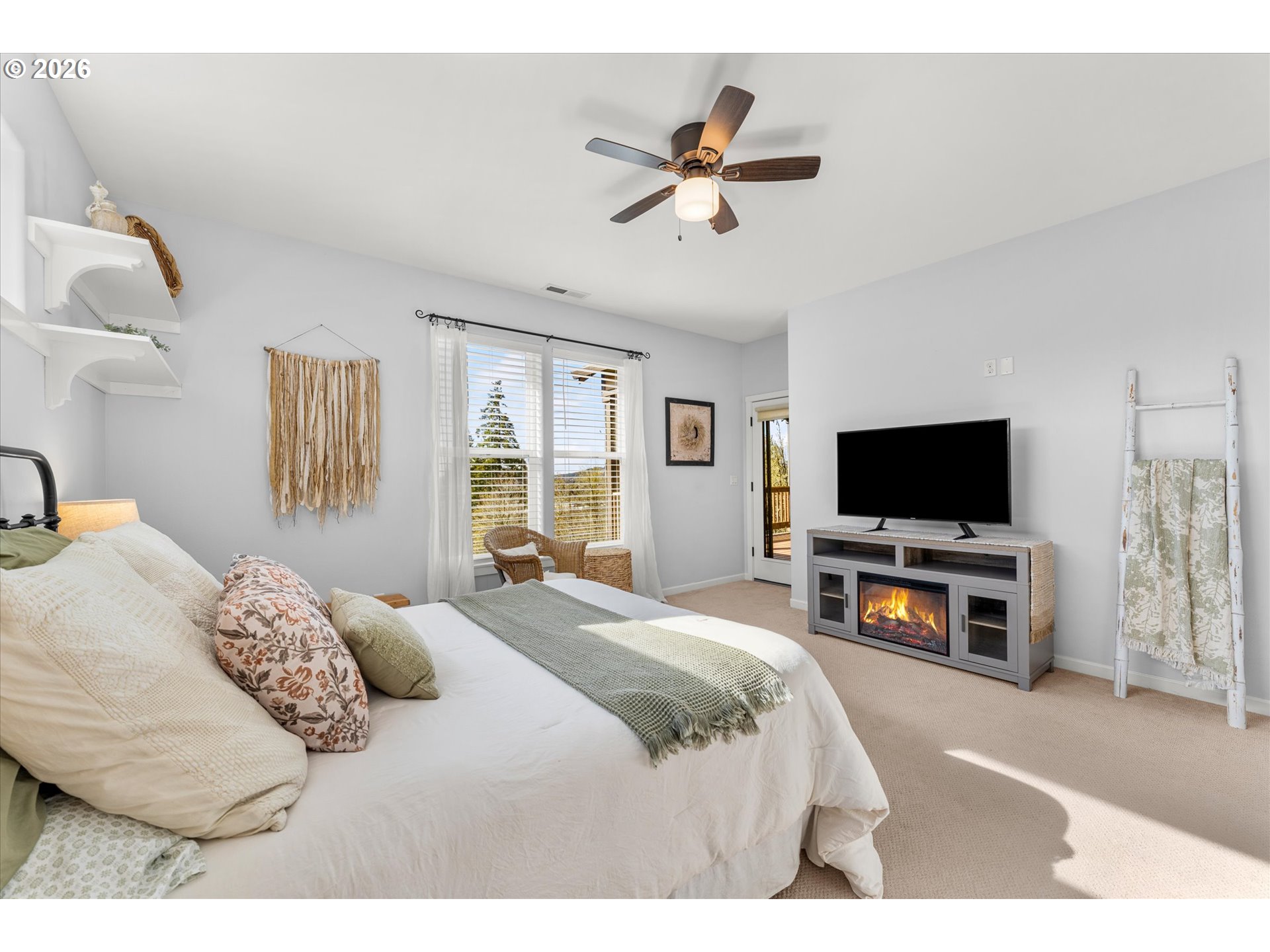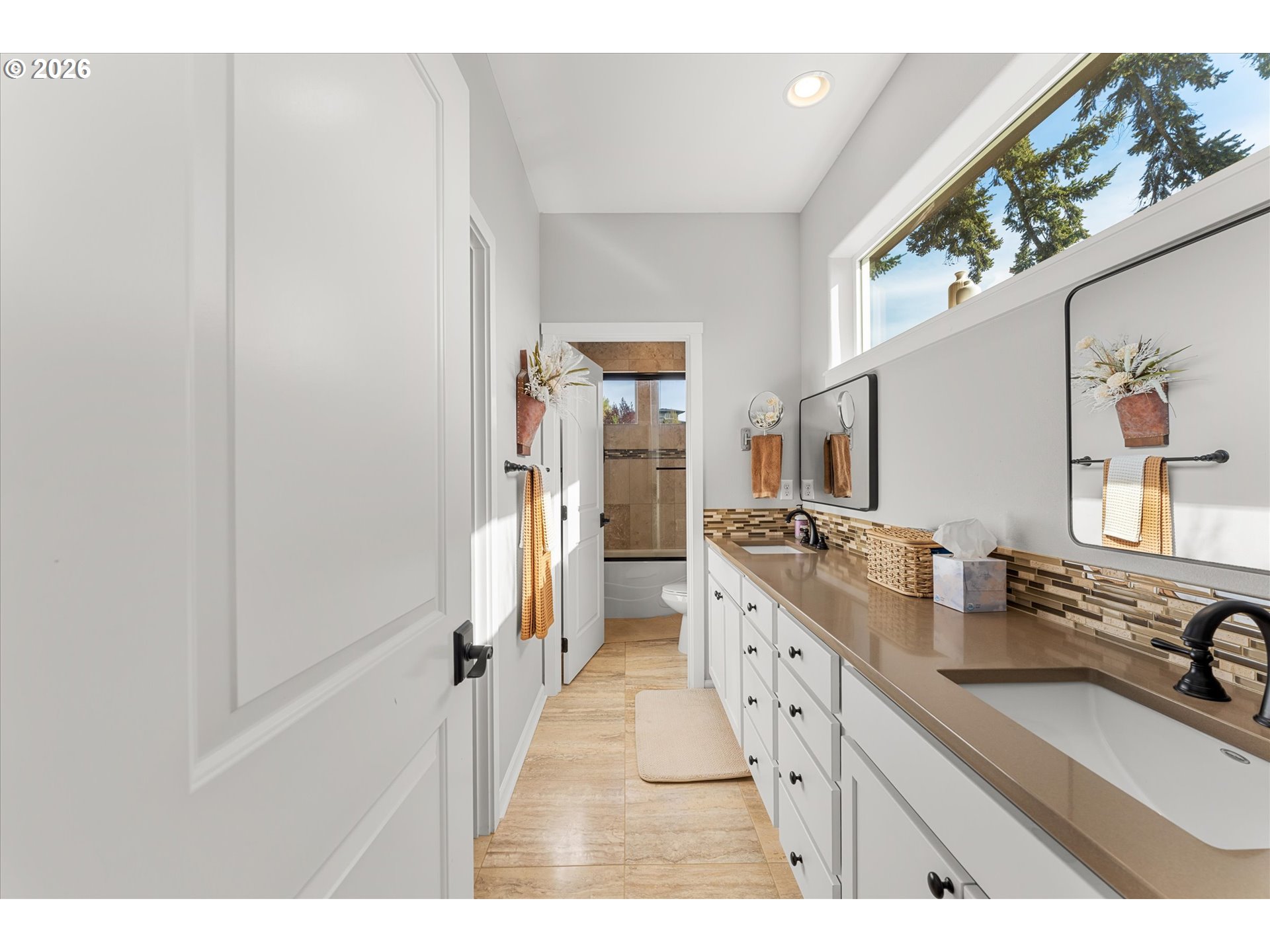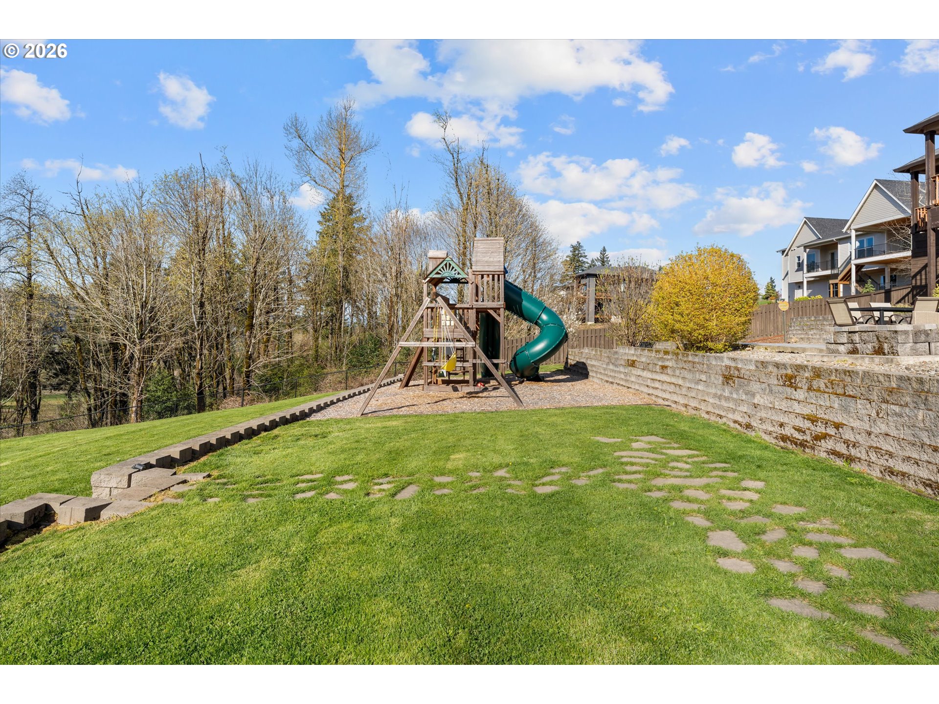 Welcome to 14857 S Sunterra Loop- an exceptional retreat nestled on 1.31 acres in the gated Edgecliff Estates community of Oregon City! This beautifully designed home offers the perfect blend of space, functionality, and elevated living with stunning territorial views and seamless indoor-outdoor flow. Featuring 4 bedrooms plus a spacious bonus room and 3 and a half bathrooms, this versatile layout is ideal for multi-generational living or flexible lifestyle needs. Two primary suites are conveniently located on the main level, each offering private en-suite bathrooms plus a 3rd bedroom. While upstairs you’ll find an additional 4th bedroom connected to a bonus room with a Jack & Jill bathroom-perfect for guests, a media space, or home office setup. The open-concept floorplan is filled with natural light, highlighted by expansive windows, warm hardwood floors, and a welcoming great room with a cozy fireplace. The kitchen is designed for both everyday living and entertaining, featuring a large island, ample cabinetry, and effortless flow into dining and living spaces. Step outside to your own private oasis-complete with a circular driveway, full fencing, fresh landscaping, water feature, pavilion, garden beds, and a dedicated playground area. Whether hosting gatherings or enjoying quiet evenings, this property offers the space and setting to do it all. Additional highlights include a 3-car garage, RV parking, generous storage throughout, and a massive partially finished lower-level storage area with potential to expand into additional living space. Located in a sought-after gated community, this home offers privacy, space, and convenience. A rare opportunity to own a lifestyle property in one of Oregon City’s most desirable neighborhoods!