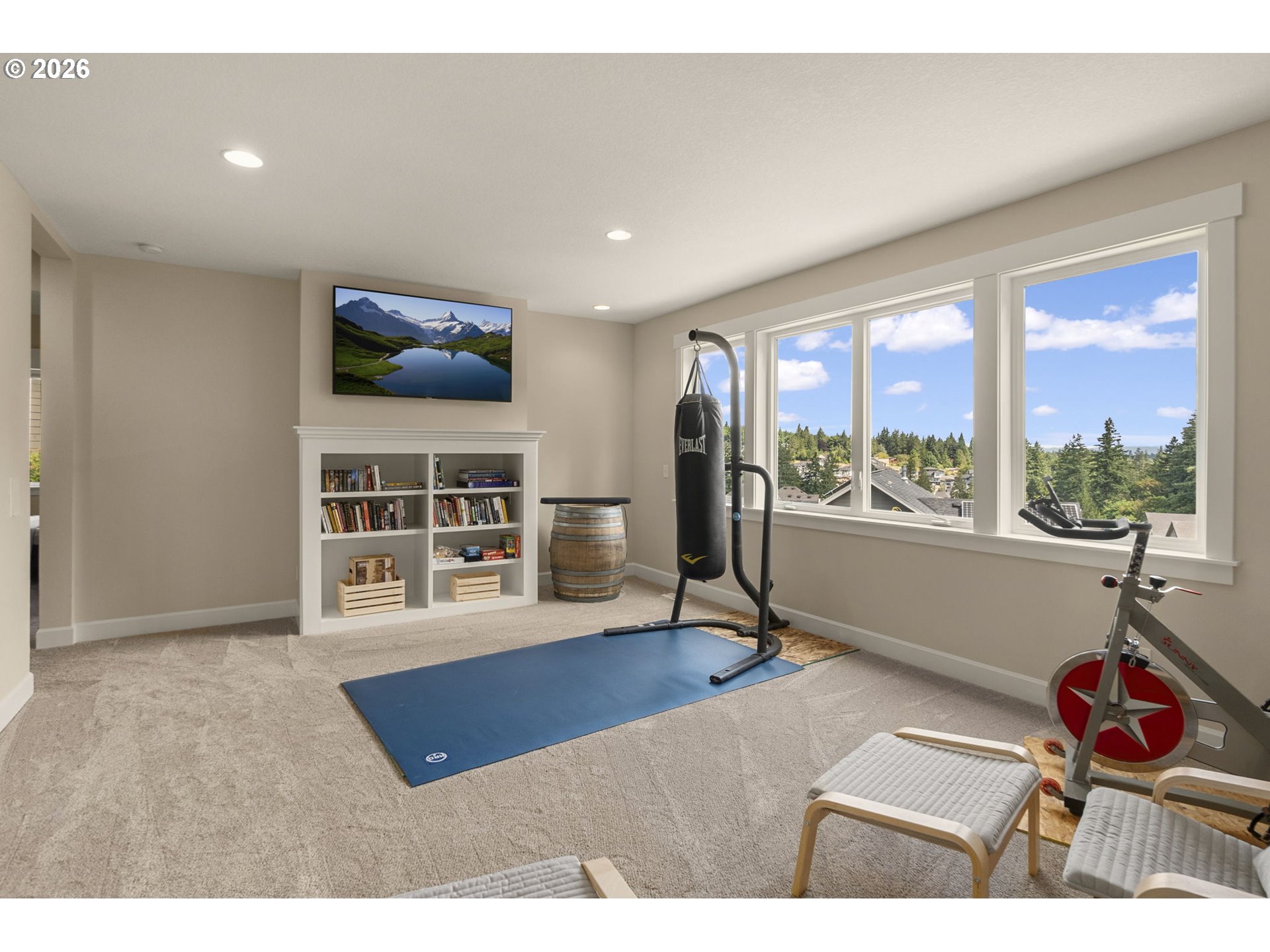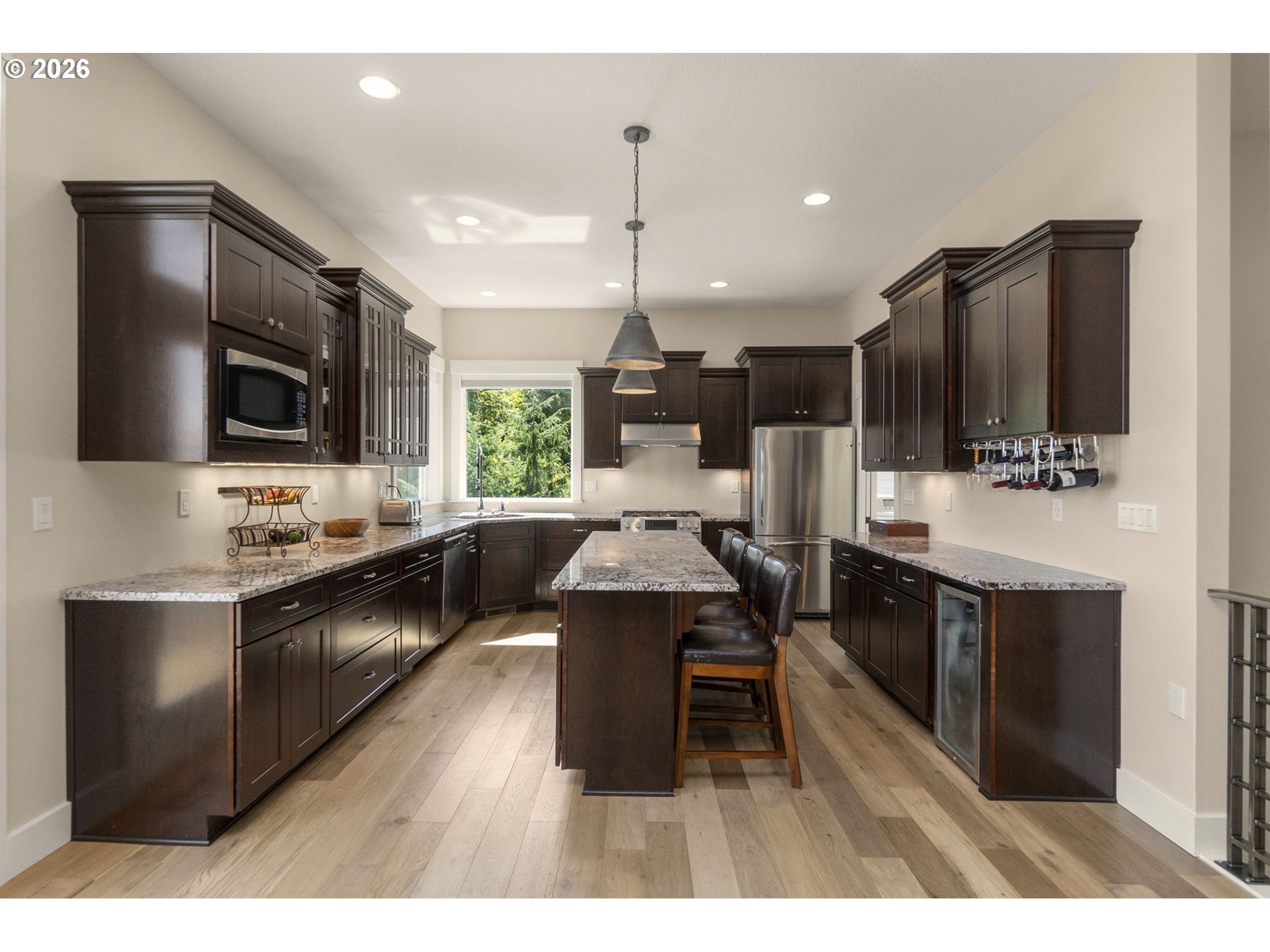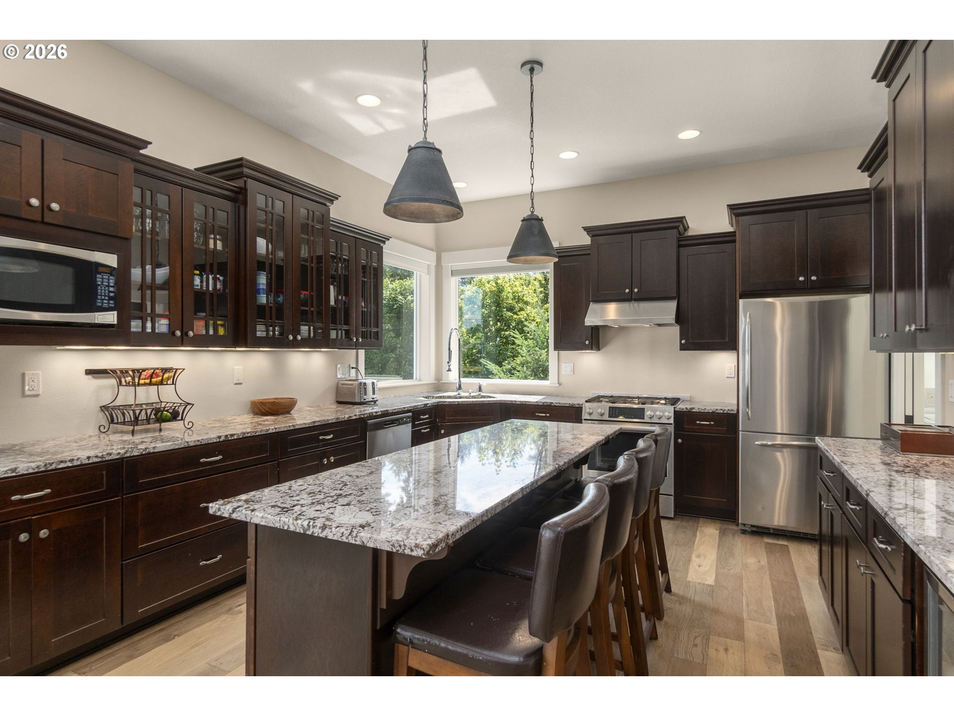 Sunny and spacious, located at the top of the cul de sac, this contemporary home has valley views for miles and the open floor plan you've been looking for! With 3,898 Square Feet of living space over two floors and an abundance of windows, this home visually blends interior and exterior, making enjoyment of our ever-changing PNW landscape easy. Upon entering, you'll be greeted with high ceilings, an abundance of natural light, and a traditional fireplace to warm up our Winter evenings. You'll love the seamless connection of Living Area, Dining Room, and Kitchen that makes entertaining a cinch! The Primary Bedroom and en suite, laundry room, and office are on the Main Level, making easy, comfortable living. The Lower level is perfect for hobbies and game night with large entertainment spaces, new carpet, and a FULL bar!