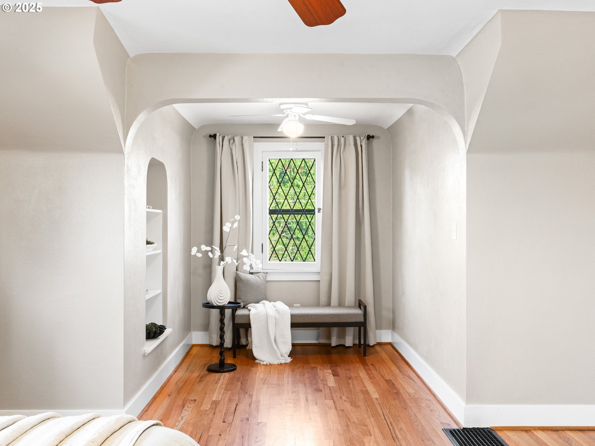 Hi there—I’m a 1935 storybook Tudor perched on a corner lot in Oregon City’s McLoughlin neighborhood. My steep front gables, Tudor half-timber detailing, and brick-arched front porch frame manicured lawns and thoughtful landscaping. A fully fenced yard with a brand-new fence wraps around the property, and a side walkway with a gated entry guides you toward the backyard. Inside, I offer about 3,013 sq ft across three levels. Step into my expansive living room, wrapped in original millwork and anchored by a woodburning fireplace with a beautifully crafted mantel and vintage sconces. A large picture window captures tree-lined street views, and a ceiling fan keeps everyday living comfortable. My formal dining room is ready for gatherings, with two built-in corner cabinets and picturesque windows that fill the room with natural light. In the kitchen, classic cabinetry provides generous storage and prep space, and a sunny eating nook surrounded by windows is perfect for casual meals. My main-level full bathroom features an expansive mirror and a window that brings in soft daylight, while a bedroom on this level adds day-to-day convenience for guests, work-from-home, or easy-access living. Upstairs, two additional bedrooms are grouped together for a cozy retreat; each enjoys a ceiling fan to complement my efficient gas heat. The primary bedroom offers two closets including a walk-in, custom wardrobe storage, and an alcove with arched openings, built-ins, and a diamond-pane window, with a convenient half bath nearby. Downstairs, my basement provides a full laundry room, storage, and flex spaces ready for your studio, media room, workshop, or gym. When you’re ready to explore, I’m close to Barclay Park, the McLoughlin Promenade, and riverside paths at Clackamette Park, with downtown favorites like Watershed Cafe & Bistro, The Hive Social, Canard Oregon City, Nebbiolo Restaurant & Wine Bar, and Oregon City Brewing Company just moments away.