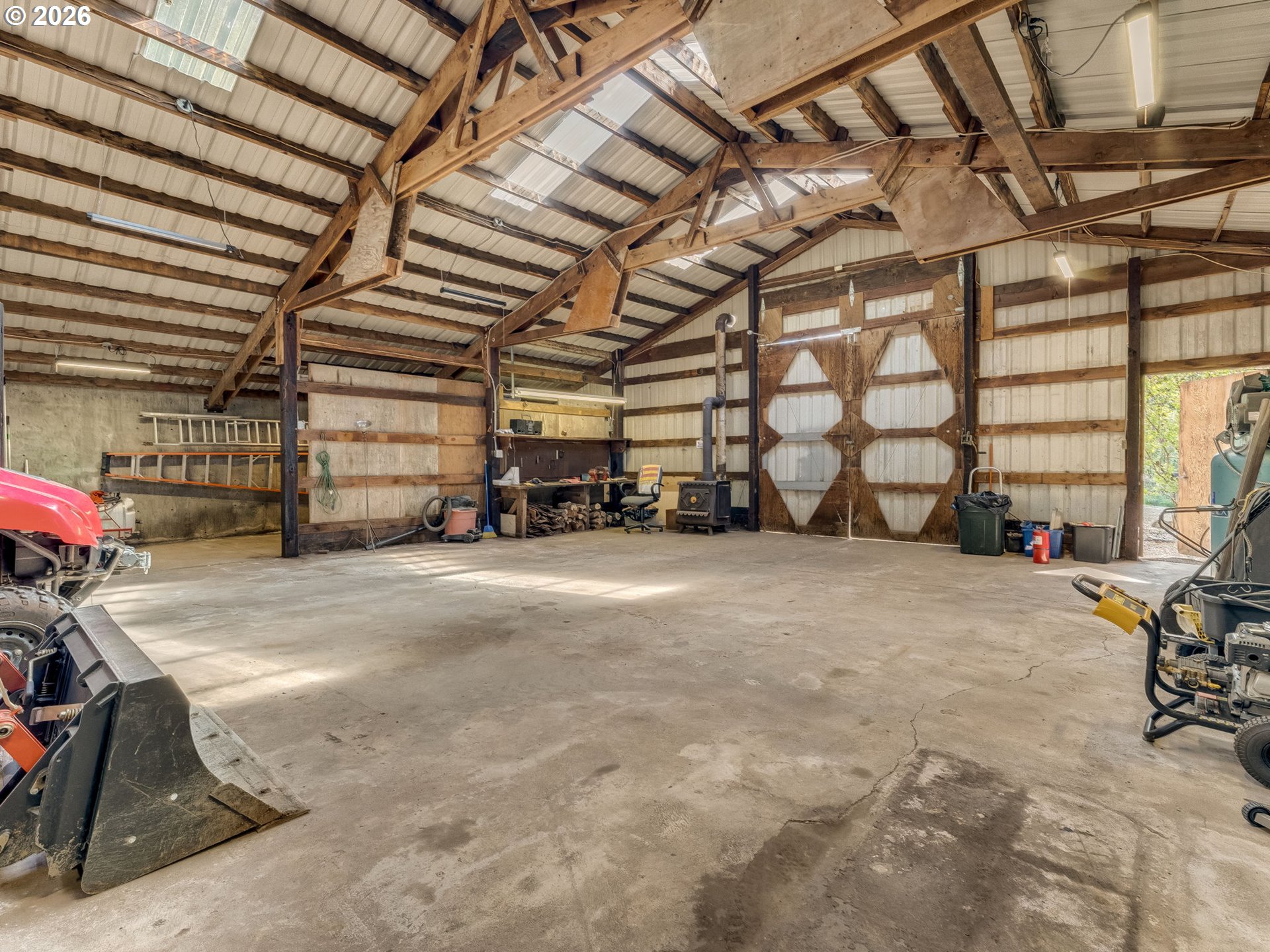 Escape to your new lake home! A beautiful, wooded retreat on the lake offering stunning views, privacy, functionality, and rare versatility on 3.42 acres with 174’ of fenced lake frontage. This 3 bed, 3 bath home features 3,162 sq ft with a dual living layout option ideal for multigenerational living or potential rental use, including 2 kitchens, 2 laundry areas, and 2 massive wood-burning stone fireplaces.The main level offers large windows with stunning views of the lake, an open living, dining, and kitchen layout with access to a large deck overlooking the property. The lower level includes a spacious family room, kitchenette, bedroom, bonus room, and patio access for a fully separate living setup.Extensive upgrades have already been completed, including a heat pump system (2024), Bosch furnace with air purification system, upgraded electrical panels in both the home and shop (2024), new gutters with rain guard (2023), updated flooring (2025–2026), new water heaters (50-gal 2023 & 40-gal 2025), heat pump (2024) and new toilets and faucets. Includes Jenn Air oven (2024), Maytag dishwasher (2023), Frigidaire microwave.The exterior is fully dialed in with 6’ black fencing featuring multiple gates, approximately 1,000 feet of additional fencing for the upper pasture, and 174’ of fenced lake frontage. A 40x40 shop painted in 2026 with 220 power provides excellent space for RVs, equipment, or business use, along with a 3-stall horse barn for equestrian potential. Security lights and 5 security cameras.Deck updates in 2025 include new railing, paint, and board replacement. The shop and well house were freshly painted in 2026.This is a rare opportunity to own a lakefront acreage property with major systems already updated, functional outbuildings, and flexible living space. Come and see your new lakeside home.