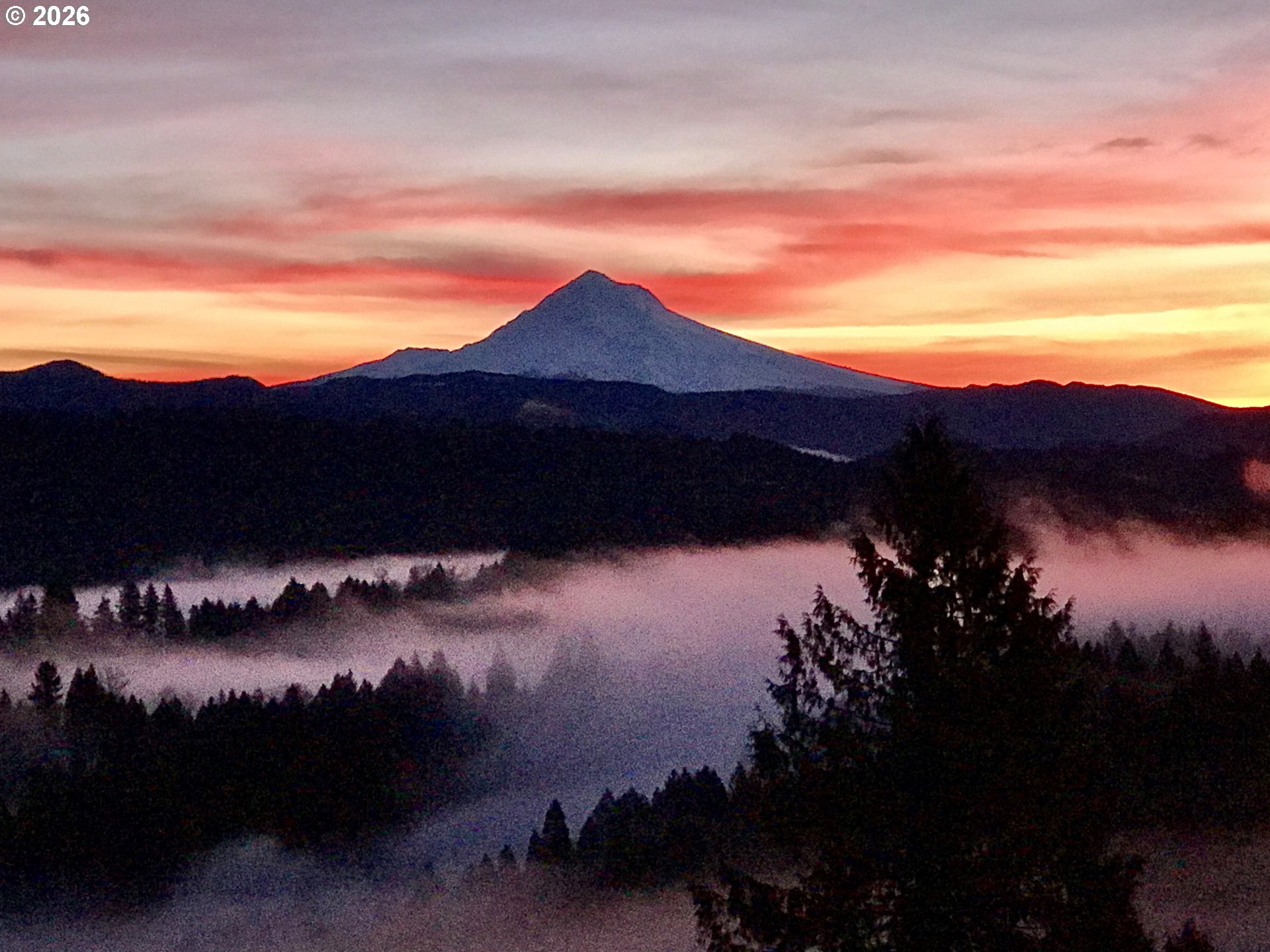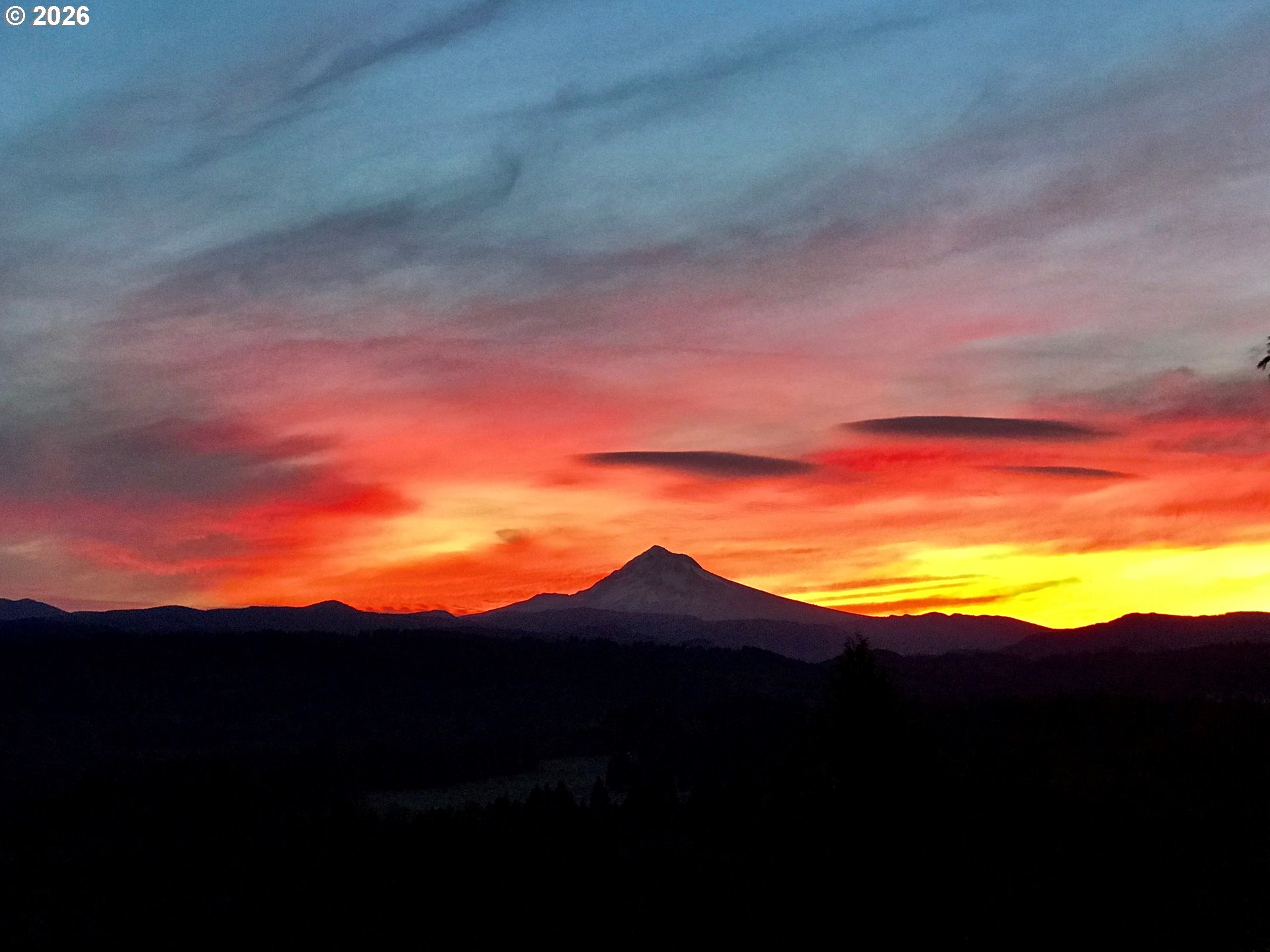 Almost Heaven! Bucolic, one-level living with a breathtaking backyard. Sunrise kaleidoscopic alpenglow is phenomenal! Serene panorama identical to Jonsrud Viewpoint a few steps north. City of Sandy website brands it ‘one of the best views of Mt. Hood in Oregon.’ Brief walk to nearby retail and restaurants. Green thumbs and outdoor enthusiasts' delight! Meticulously maintained, move in ready & storage abundant. New heat pump and air handler 2025. Decks just prepped and stained. Siding recently treated or painted. Oak hardwood floors refinished and new thermostatic pellet stove last 2 years. Brand new refrigerator, all appliances included! OPEN HOUSE 12-2pm SAT. 4/4.