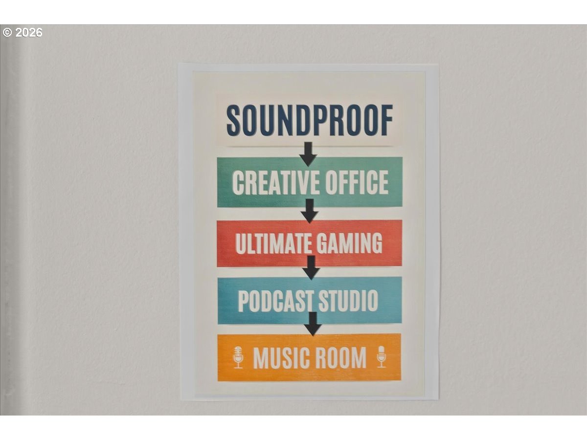 Welcome home where flexible living spaces and abundant natural light come together in a thoughtful, flowing floor plan. Formal and casual rooms connect seamlessly, making everyday living and entertaining equally comfortable. The living room soars with high ceilings and expansive windows that flood the home with light, while the spacious kitchen features an eat-in area, opens directly to the living room, and connects easily to the deck and backyard—perfect for indoor/outdoor living.Upstairs you’ll find three bedrooms, convenient upper-level laundry, and a generous additional room currently divided into two spaces with specialty sound-insulated construction. Ideal as a 4th bedroom or nursery, podcast or music studio, gaming lounge, creative office, or flex suite tailored to your needs.A bonus room in the garage with its own mini-split for climate control, lighting, and power adds even more versatility for a home gym, yoga studio, private office, or media space.A rare blend of openness, function, and flexibility...this home adapts beautifully to modern living.Ask about carpet credit!
