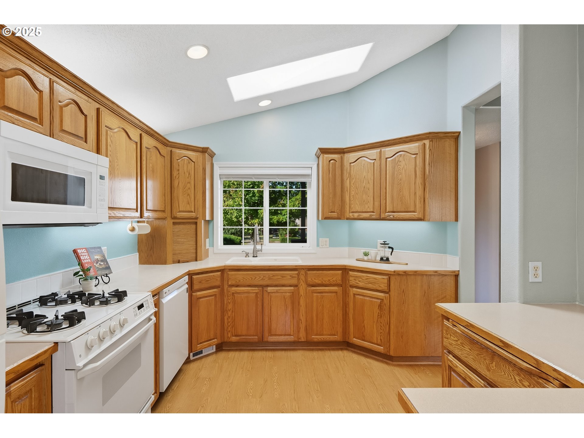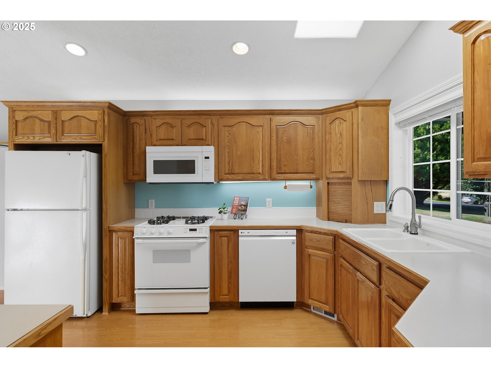 OPEN SAT 10/4 & SUN 10/5 11–1! Located on a quiet street in Oregon City’s Park Place neighborhood, this traditional home offers a functional floor plan with 3 bedrooms, 2.1 bathrooms, and great natural light. The spacious kitchen features extensive oak cabinetry for ample storage, vaulted ceilings, and a skylight. The cozy living room is warm and inviting, with a gas fireplace and views of the backyard. The large primary suite has vaulted ceilings, an ensuite bathroom, and a walk-in closet. Enjoy a fully-fenced, sunny backyard with a patio, perfect for gardening, relaxing or entertaining. The level 8,000 SF lot is low-maintenance and has room for additional parking. Recent updates include the roof (2020), furnace and AC (2019), and water heater (2024). Convenient location with easy access to I-205 and Hwy 213.